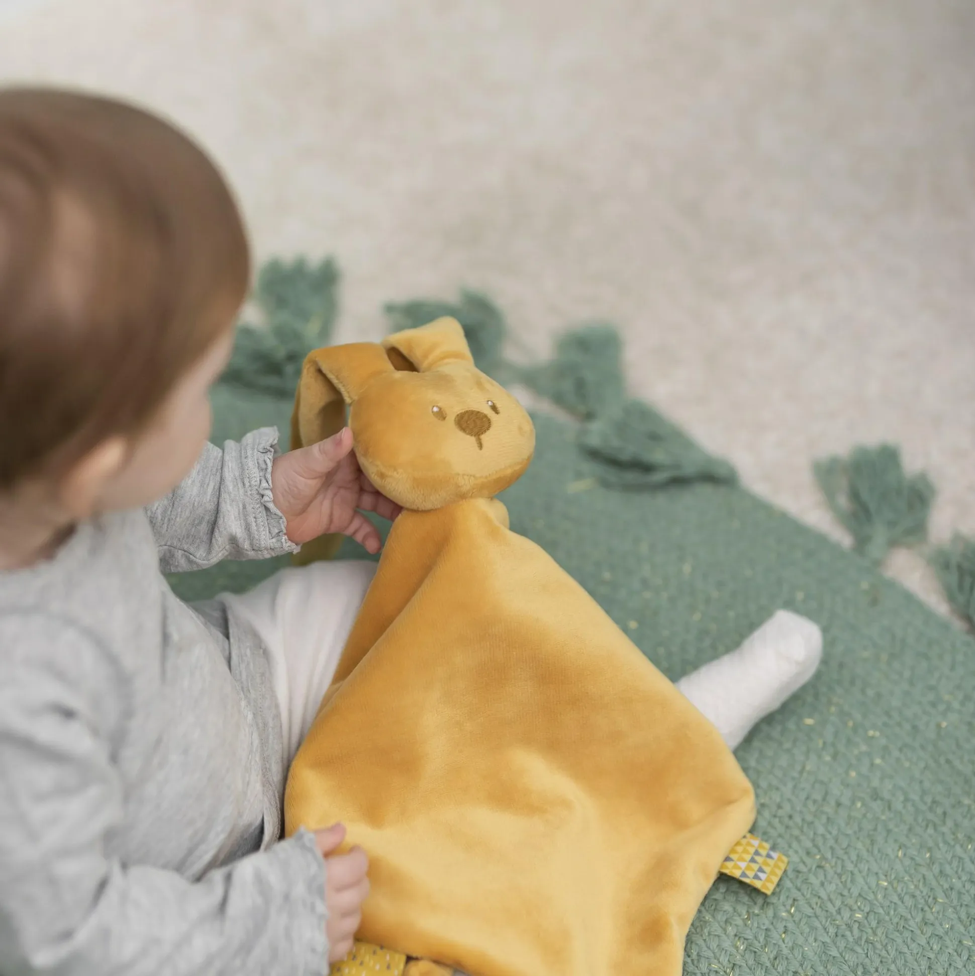 Beim Einschlafen spendet das niedliche Kaninchen Geborgenheit und ist eine echte Hilfe. Tagsüber laden die kuschelweichen Materialien und der Kopf zum Greifen, Fühlen und Knuddeln ein – so wird das Nattou Kuscheltuch aus der Lapidou Kollektion schnell zum Lieblingstuch und ständigem Begleiter. Außerdem verfügt das Tuch über einen praktischen Schnullerhalter und viele weitere Greifmöglichkeiten.