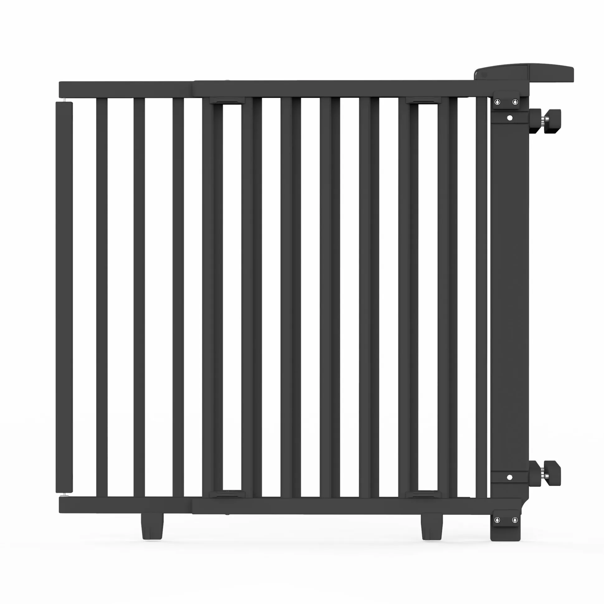 Das Geuther Schwenk-Treppenschutzgitter Plus 2735 + bewahrt deinen kleinen Weltentdecker vor unangenehmen Überraschungen. Es spielt keine Rolle, wie breit die Treppe ist – das schwenkbare Gitter lässt sich auf eine Breite von 93 bis 135 cm einstellen. So sind die Kleinen auf der sicheren Seite und die Größeren haben per Riegel und Schwenkmechanismus ein leichtes Durchkommen!