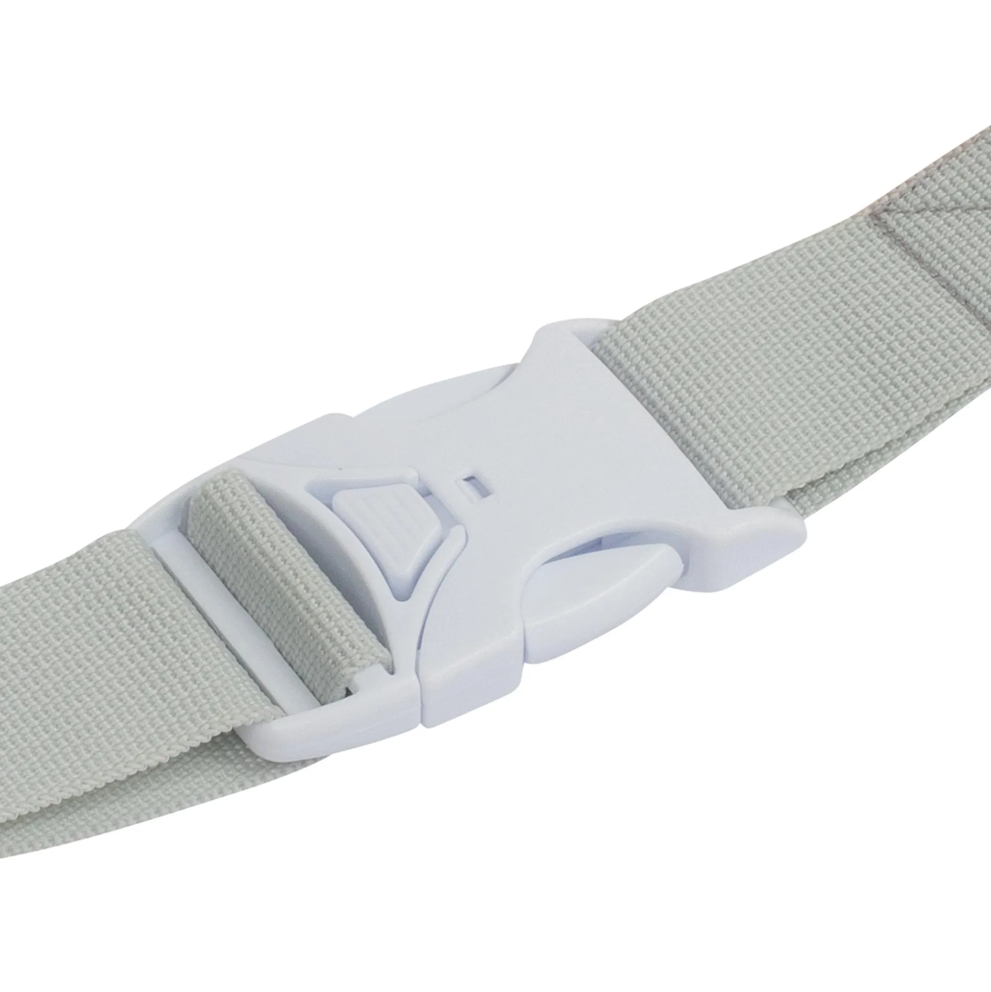 - verstellbarer Bauch- und Schrittgurt mit kindersicherem Zwei-Handgriffe-Verschluss