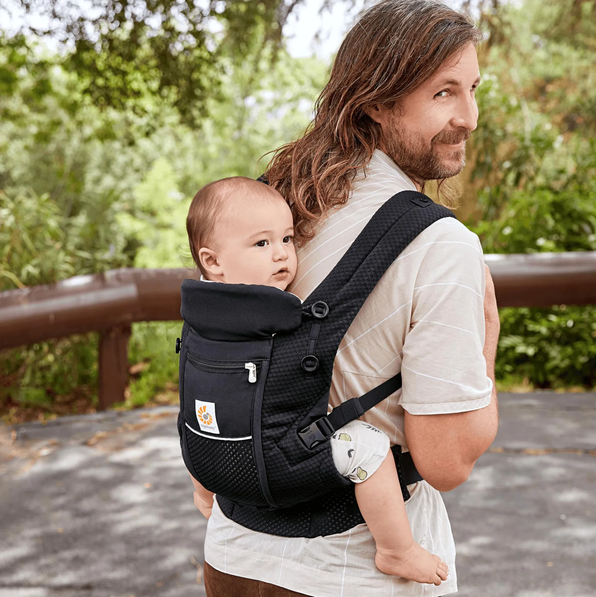 Mit dem Set aus der Adapt Soft Flex Mesh Babytrage und dem Rain & Wind Cover bist du bestens für jedes Wetter gerüstet.