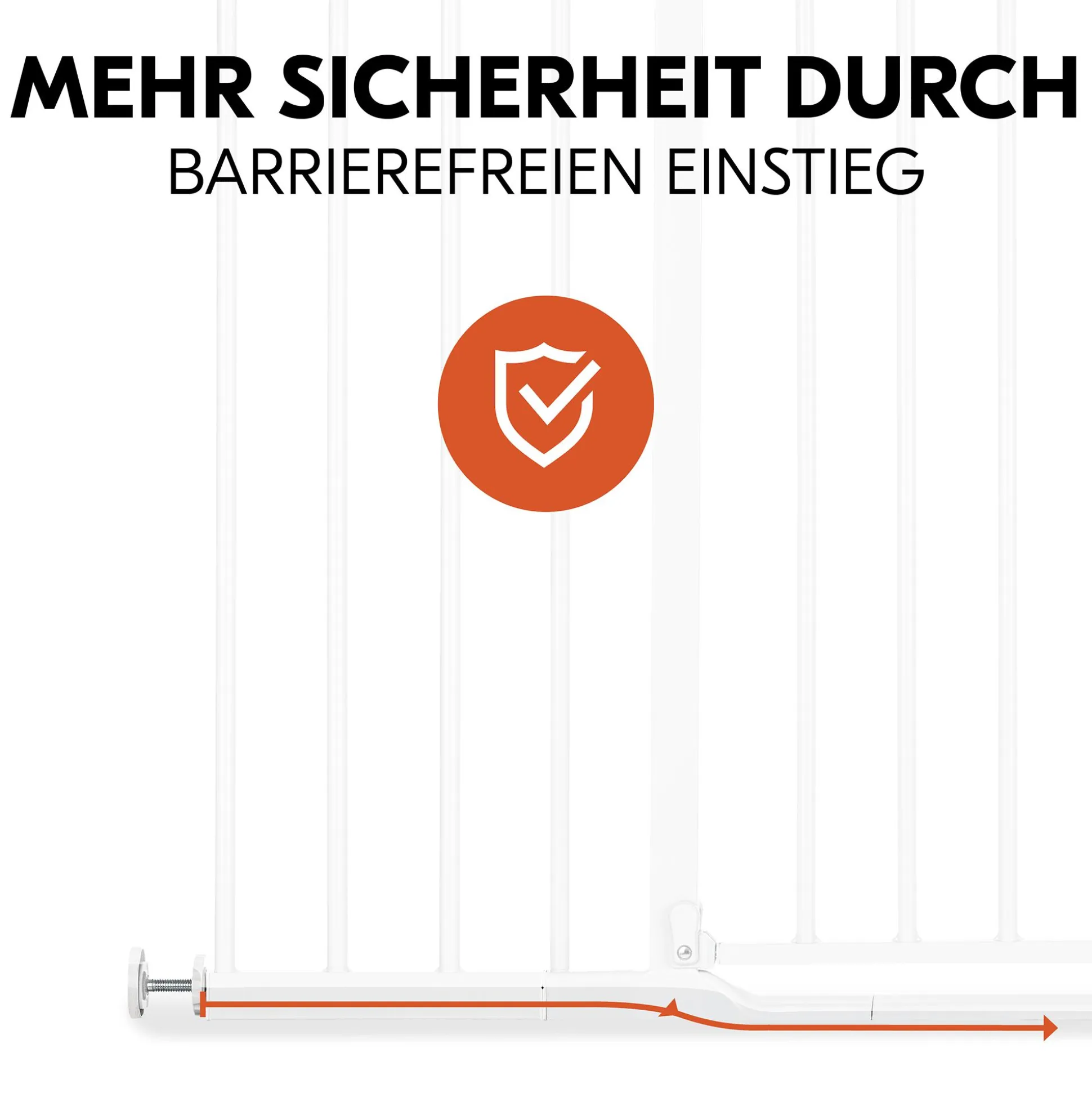 Das Schutzgitter aus Metall kann nach beiden Seiten geöffnet werden, aber in einigen Situationen ist es sicherer, wenn das Schutzgitter nur in eine Richtung öffnet. Mit dem Sicherheitsstopper kannst du dies jederzeit einstellen, wenn es die Situation erfordert.