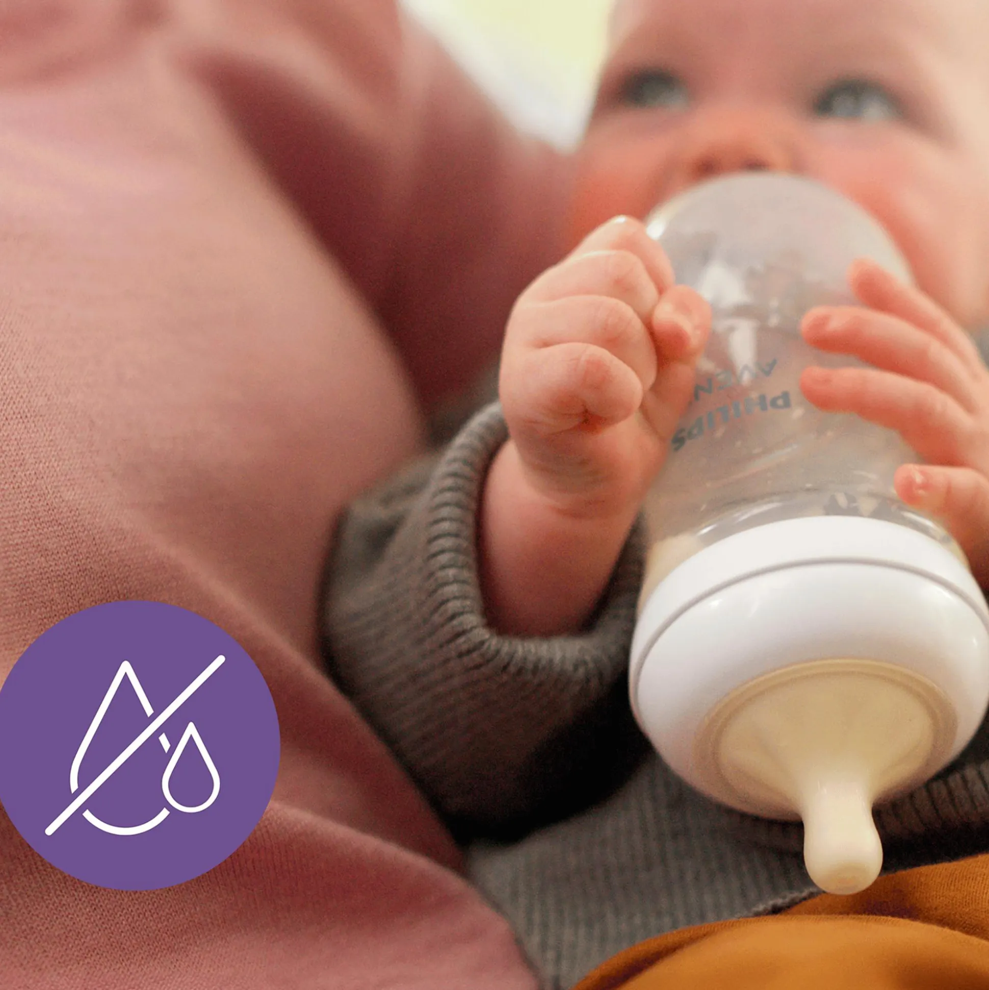 Mit dem tropfsicheren Saugern kann dein Baby im natürlichen Rhythmus saugen, schlucken und atmen, da dieser nur dann Milch abgibt, wenn dein Baby aktiv trinkt. Somit ist das Trinkverhalten ähnlich wie beim Stillen, womit sich das Stillen und die Flaschenernährung einfacher kombinieren lässt. Auch das Design der breiten, weichen und flexiblen Sauger imitiert die Form und das Gefühl der Brust, sodass dein Baby bequem und vertraut trinken kann.