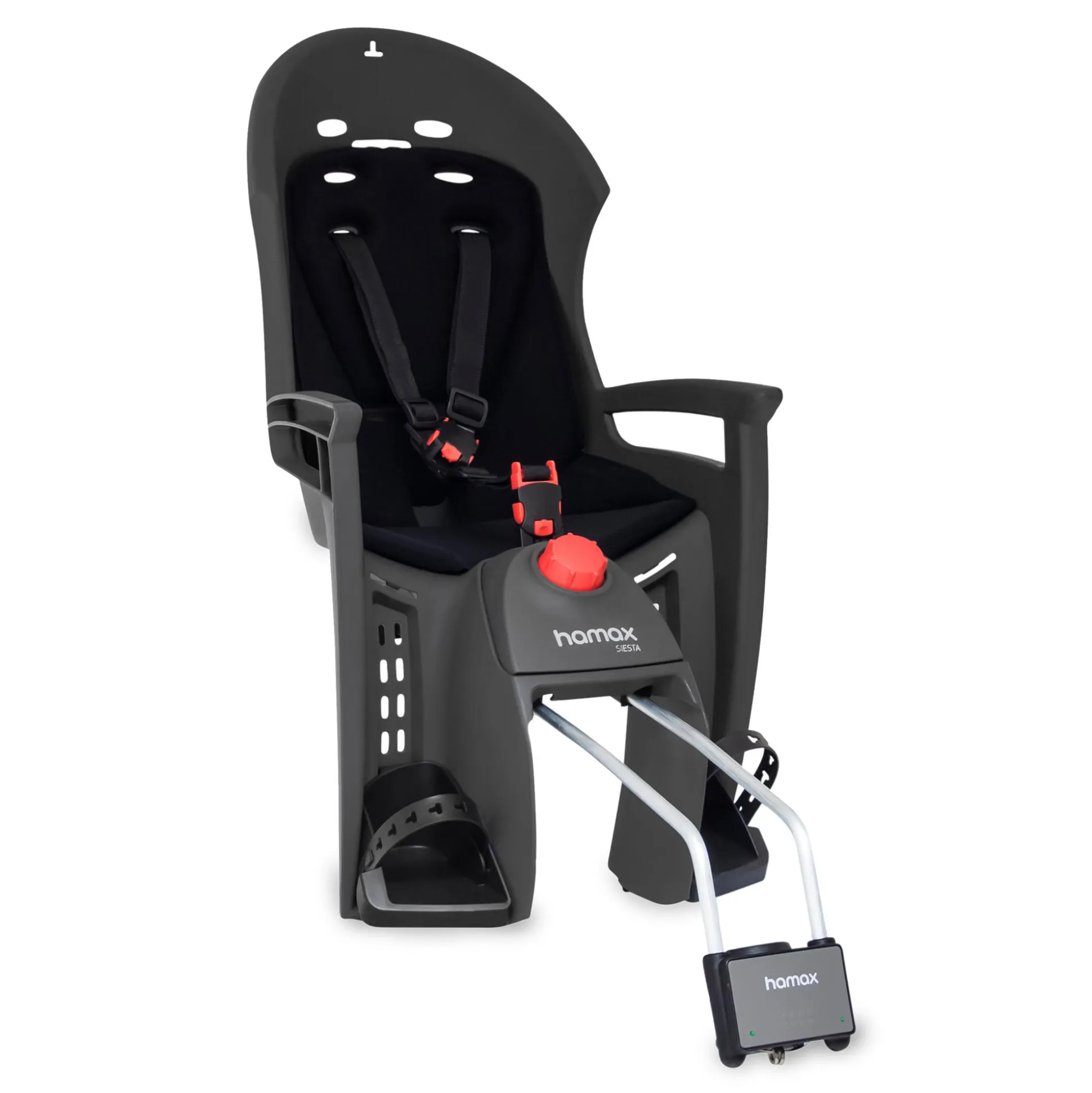 Der Hamax Fahrradsitz Siesta ist ein wunderbarer Begleiter für das Fahrrad. Die frei gefederte Befestigungshalterung sorgt für eine ausgezeichnete Federung des Fahrradsitzes und schützt den Rücken deines kleinen Lieblings. Durch die zusätzliche Brustschnalle ist es möglich, dein Kind mit einer Hand zu fixieren und das Fahrrad mit der anderen Hand zu halten. Das Hamax-Klappsystem wurde in den Sitz integriert, sodass eine ergonomische Schlafposition von 20° für dein Kind eingestellt werden kann.