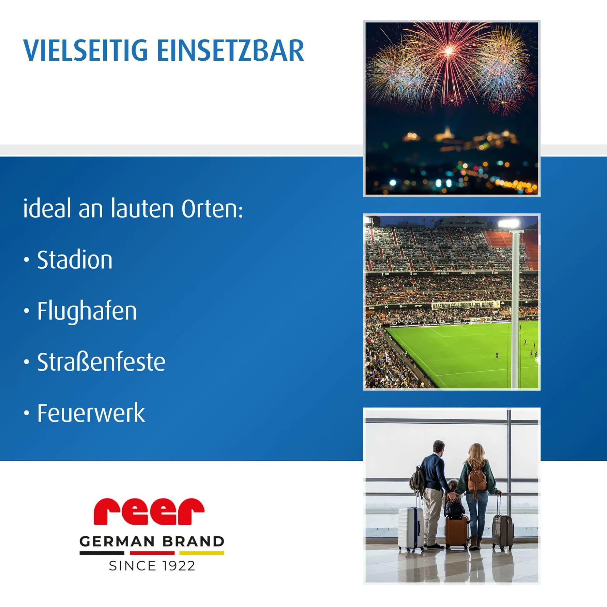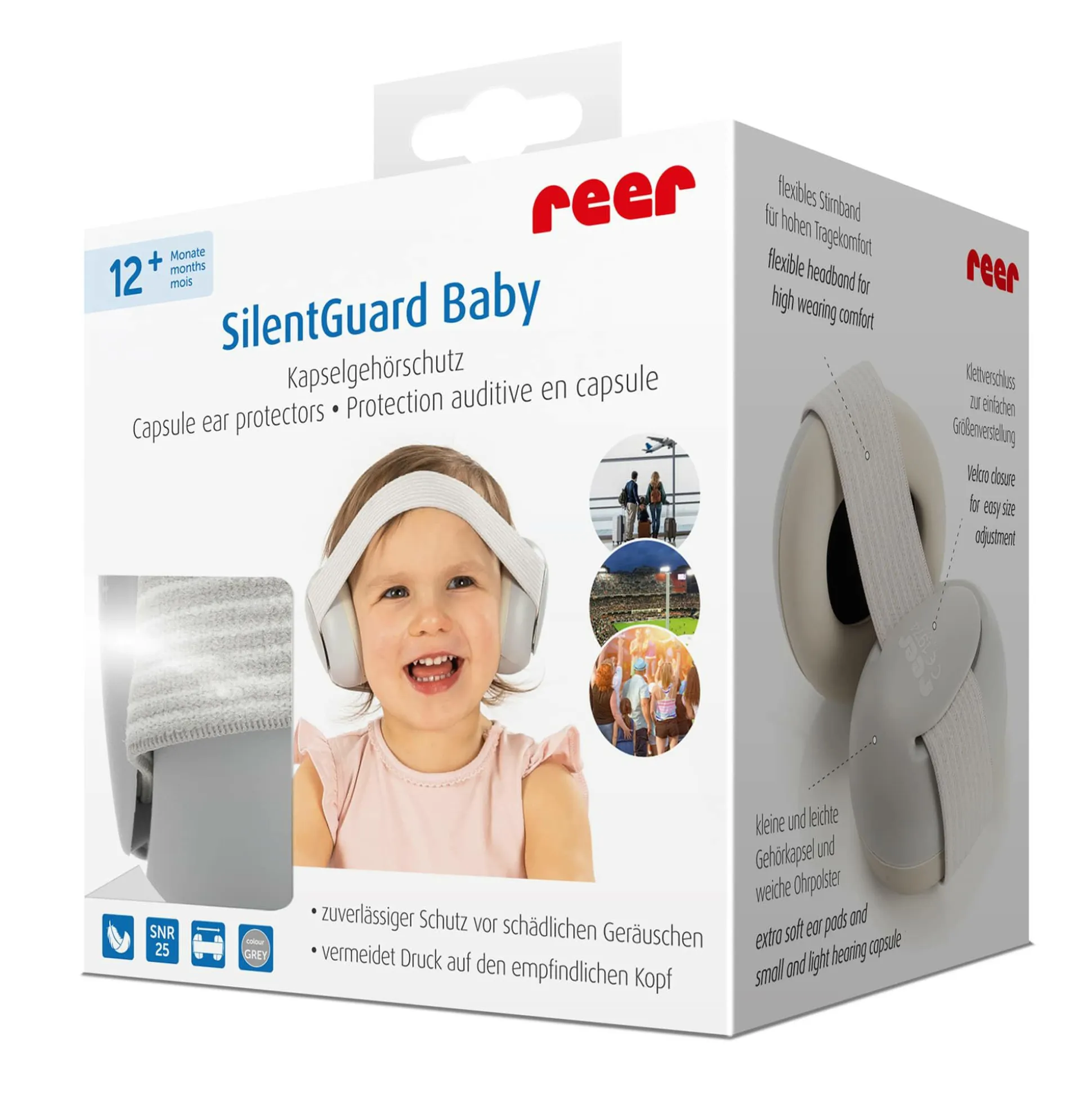 Das Gehör von Babys und Kleinkindern ist noch nicht vollständig entwickelt und reagiert daher besonders empfindlich auf Lärm. So sind bereits Geräusche über 85 Dezibel z.B. am Flughafen oder bei einem Feuerwerk, schädlich für empfindliche Babyohren und können bleibende Gehörschäden verursachen. Der reer SilentGuard Baby Kapselgehörschutz bietet zuverlässigen Schutz vor schädlichen Geräuschen und beugt so möglichen Gehörschäden vor.