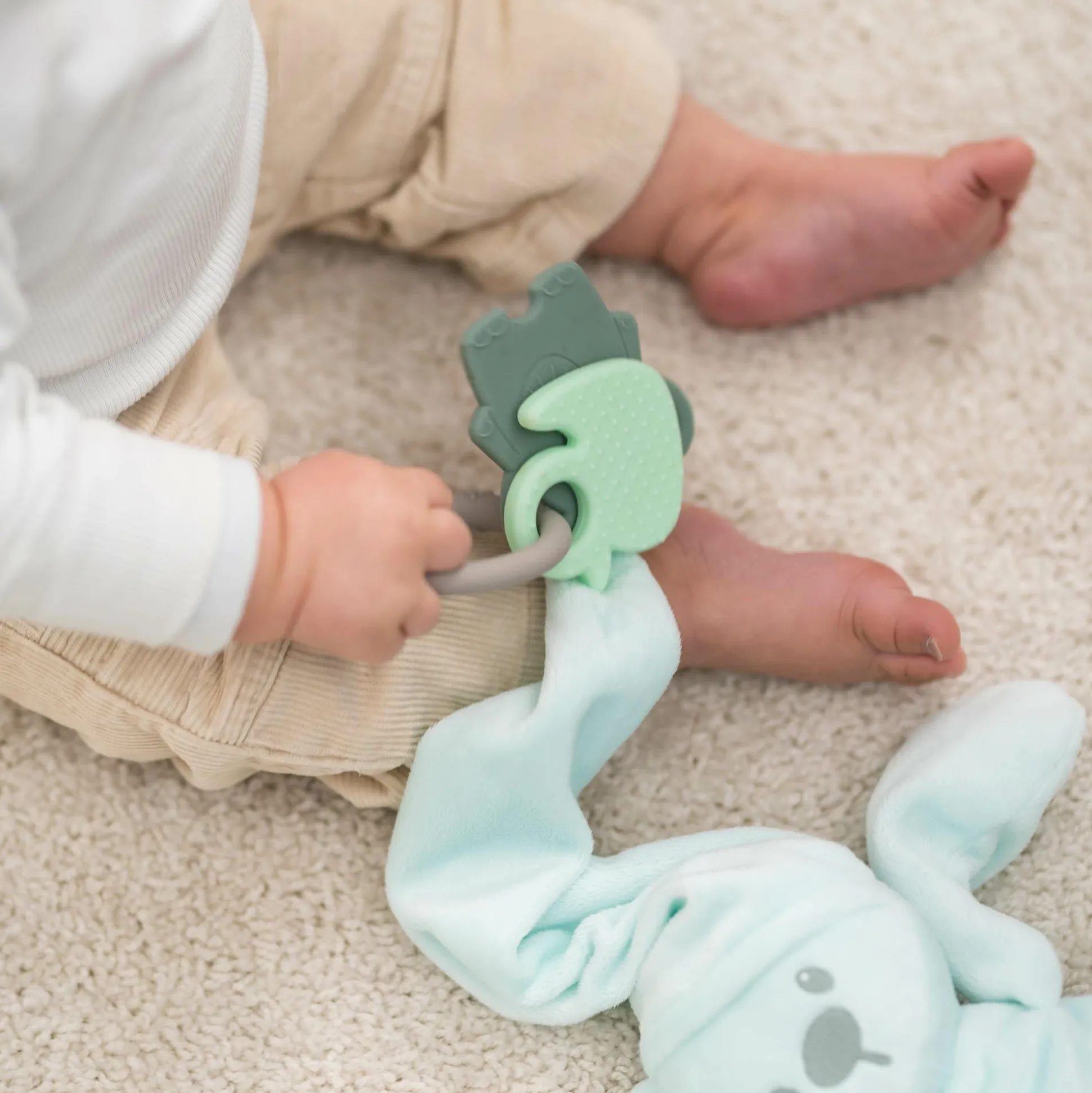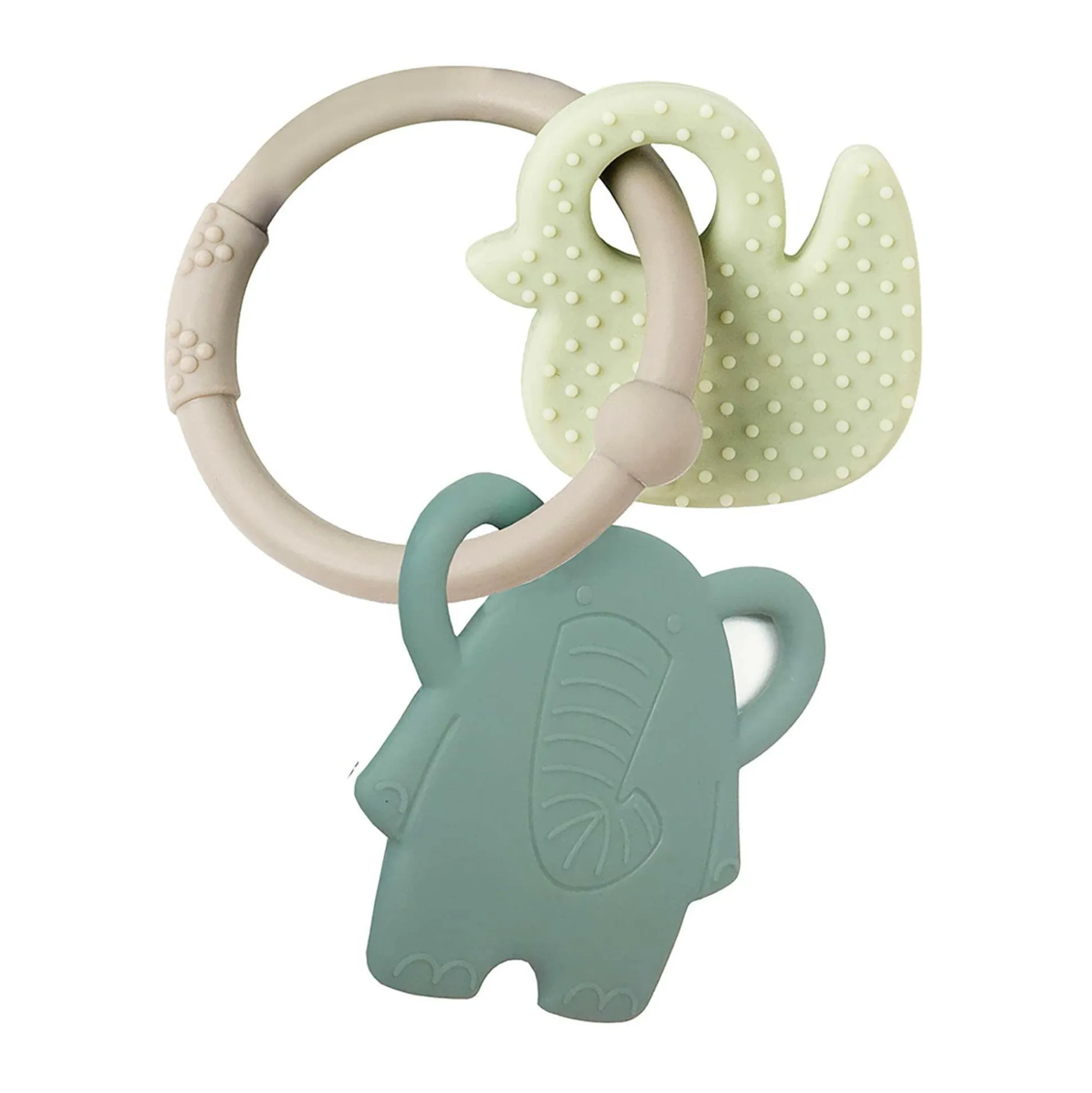 Die Silikon-Kollektion bietet schlichte und elegante Designs – hergestellt aus hochwertigen Materialien und mit raffinierter Verarbeitung. Der Beißring mit den kleinen Tieren begleitet dein Baby, wenn die ersten Milchzähne zu wachsen beginnen. Die unterschiedlich strukturierten Oberflächen laden Babys zum Kauen ein und lindern so schmerzendes Zahnfleisch. Der Nattou Beißring ist für kleine Händchen leicht zu greifen und kann auch einfach zum Spielen benutzt werden.