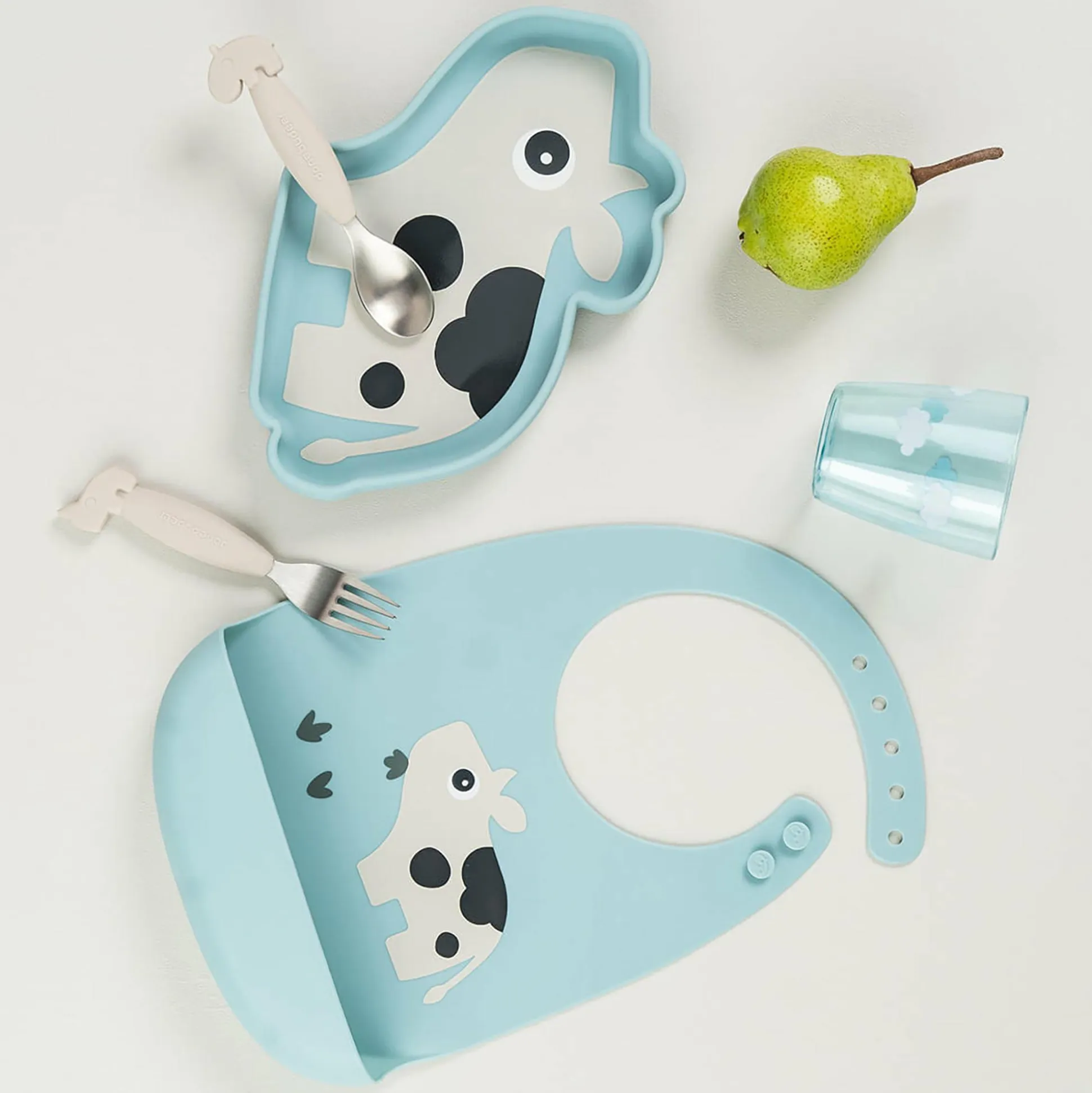 Das Silikon Lätzchen Dotti von done by deer begleitet deinen kleinen Schatz ab der Geburt mit einem süßen Kuhmotiv in sanftem Blauton und sorgt für entspannte Mahlzeiten ohne große Sauerei. Mit seinem weichen Silikonmaterial schmiegt es sich angenehm an den Hals deines Lieblings an und schützt die Kleidung zuverlässig vor Flecken.