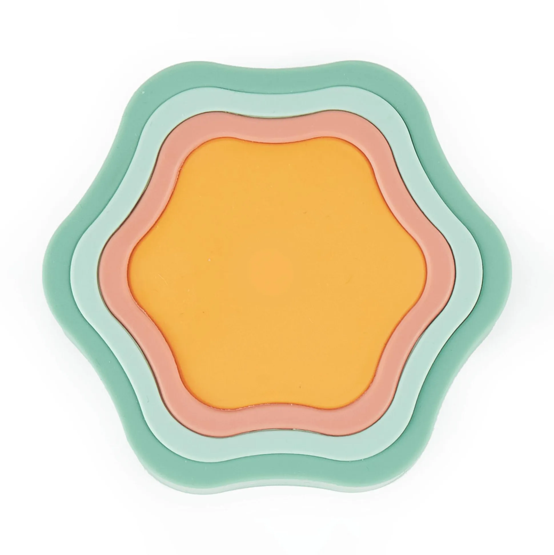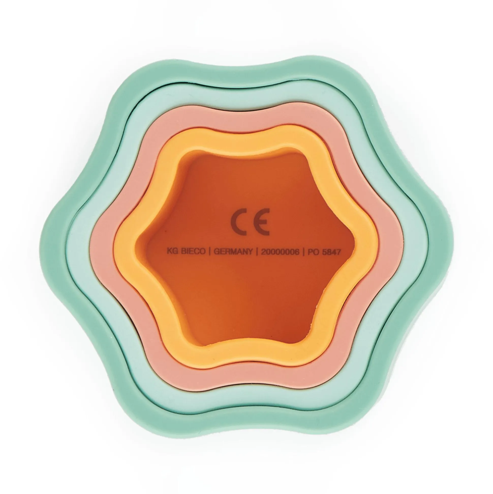 Die Silikon-Stapelturm Blume von bieco bietet nicht nur stundenlangen Spielspaß, sondern fördert auch die Entwicklung deines kleinen Lieblings auf spielerische Weise. Das 4-teilige Set, hergestellt aus 100% Silikon, ist nicht nur langlebig und bruchsicher, sondern auch besonders einfach zu reinigen – einfach mit Wasser und milder Seife.