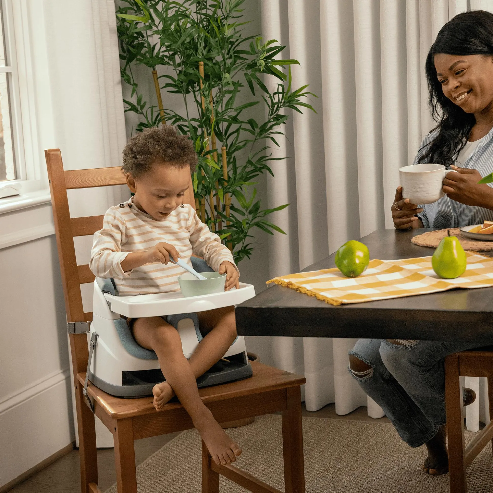 Die Sitzerhöhung Baby Base 2-in-1 von ingenuity ist die ideale Lösung für dein kleines Wunder, wenn es beginnt, eigenständig zu sitzen. Mit weichen Gurten sicher befestigt, verwandelt sich fast jeder Esszimmerstuhl in einen Ort, an dem dein Baby die Welt aus einer neuen Perspektive entdecken kann. Das ergonomische Design passt sich mühelos dem Wachstum deines Kindes an – von den ersten Breiversuchen bis hin zu gemeinsamen Mahlzeiten mit der Familie.