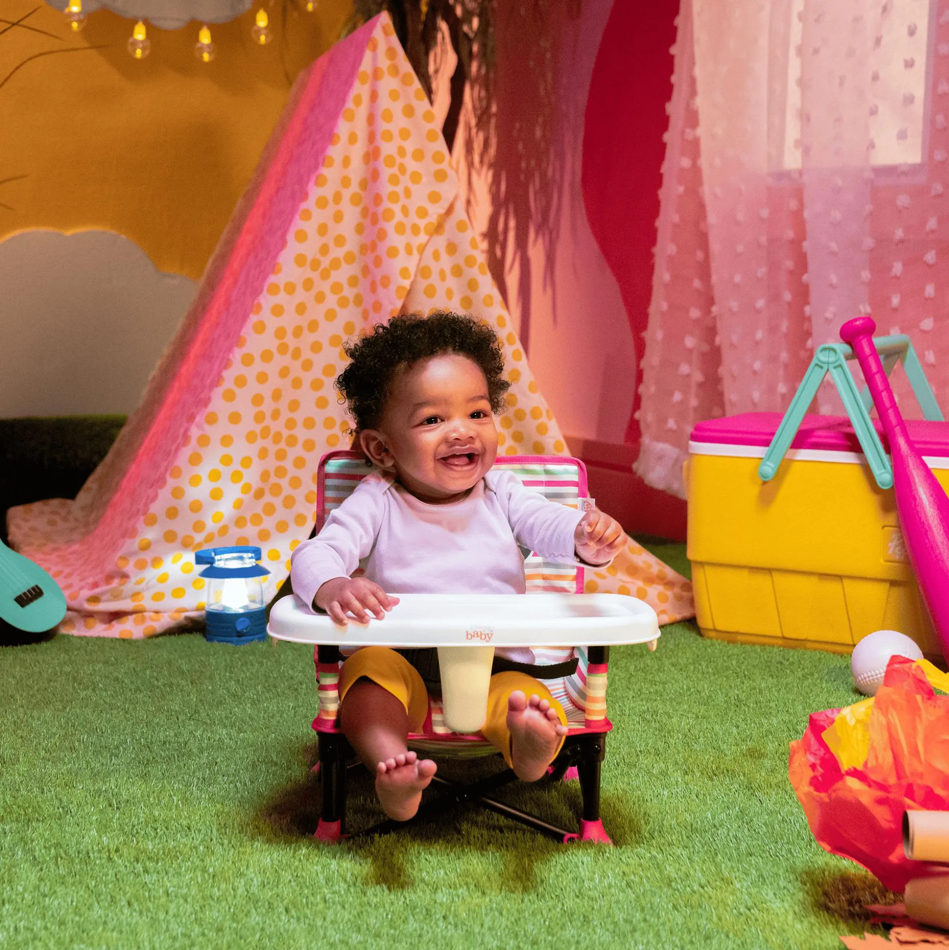 - 3 Verwendungsmodi: Bodensitz, Füttersitz mit abnehmbarem Tablett, Kleinkind-Booster