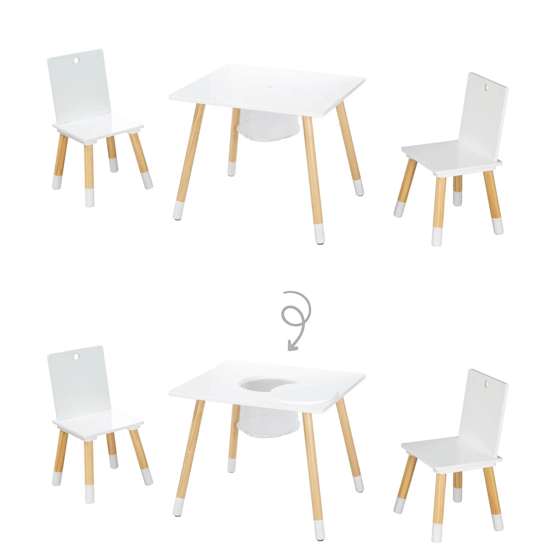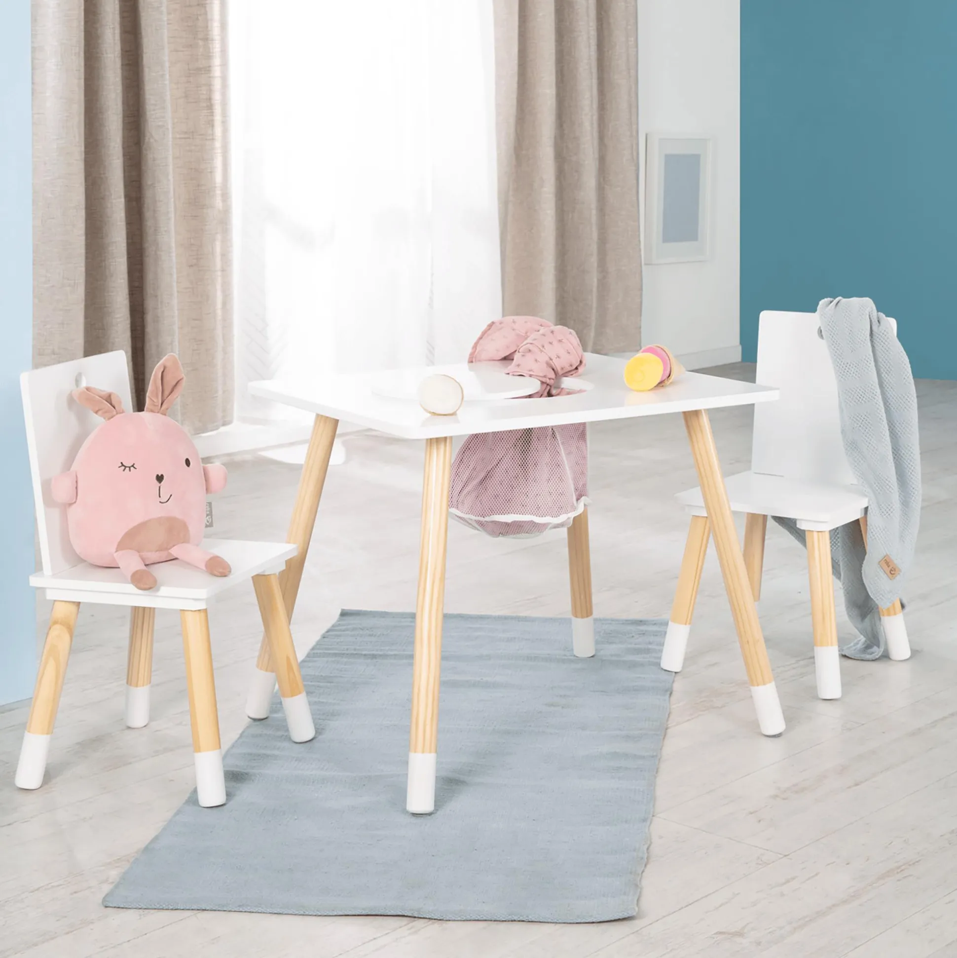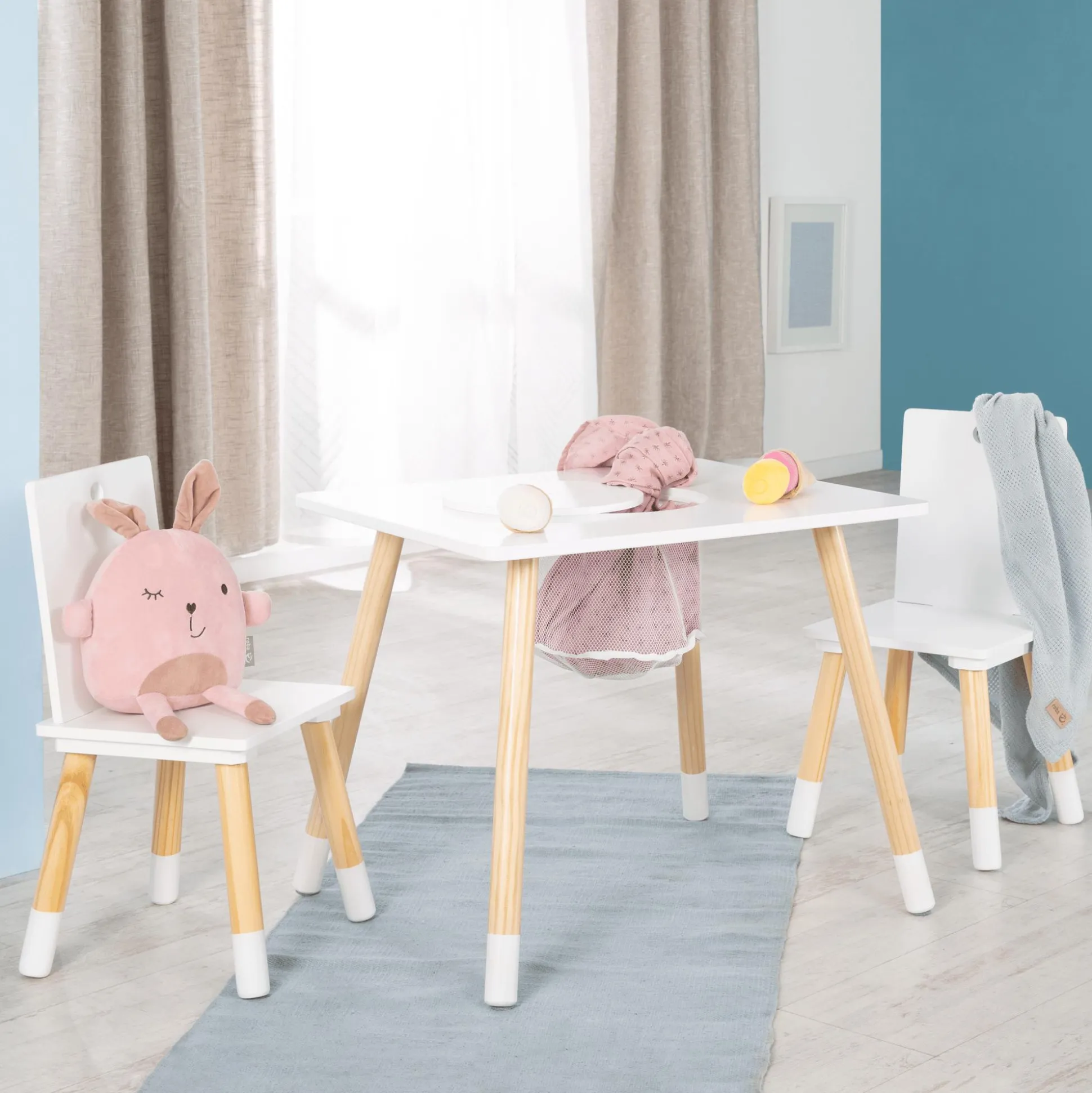 - formschöner Kindertisch mit zwei passenden Stühlen