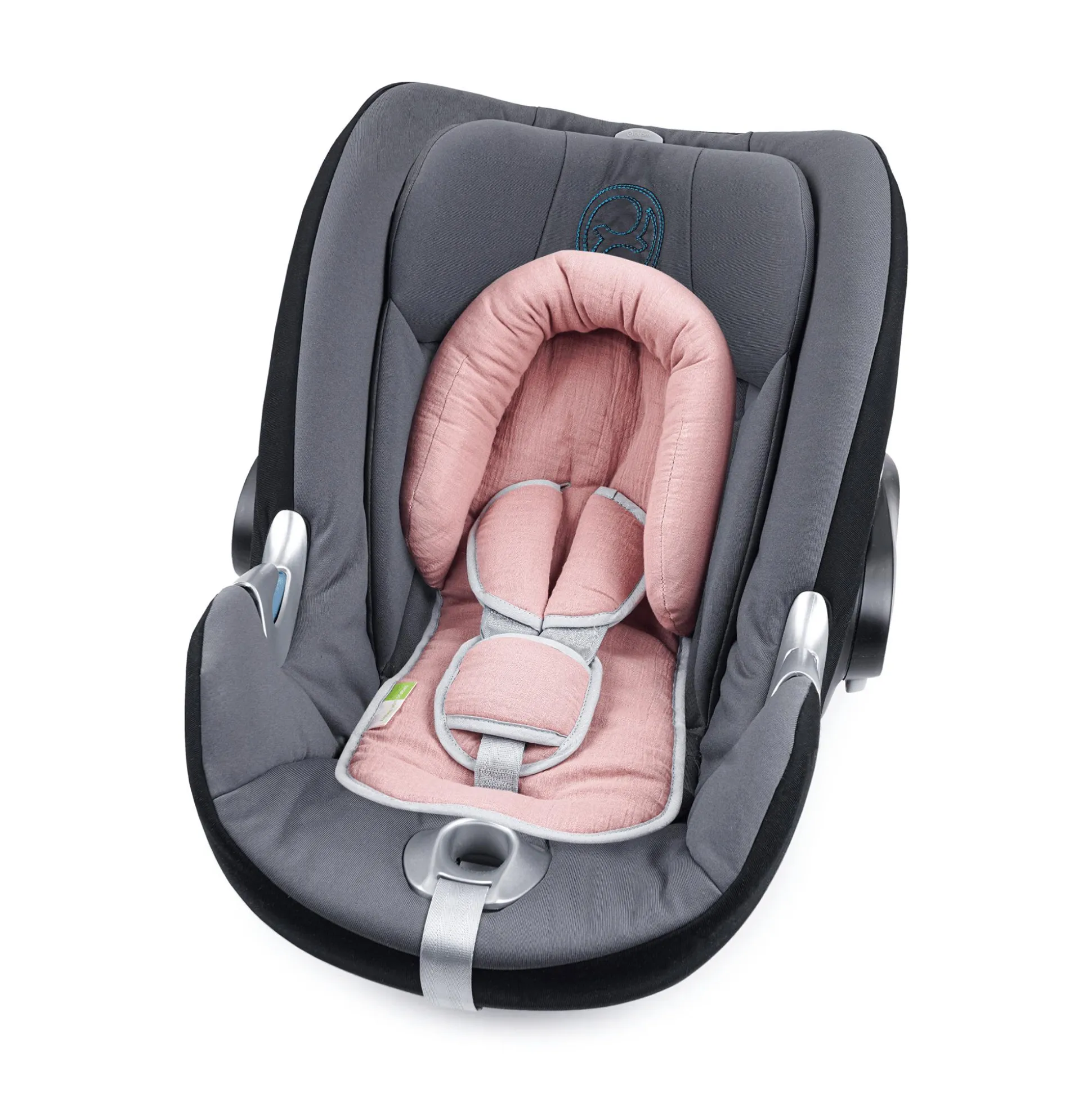 Hergestellt aus hochwertigem Musselin-Baumwollstoff sorgt EMIL für ein angenehmes Klima zu jeder Jahreszeit. Er schützt die Babyschale und Gurte zuverlässig vor Verschmutzungen.