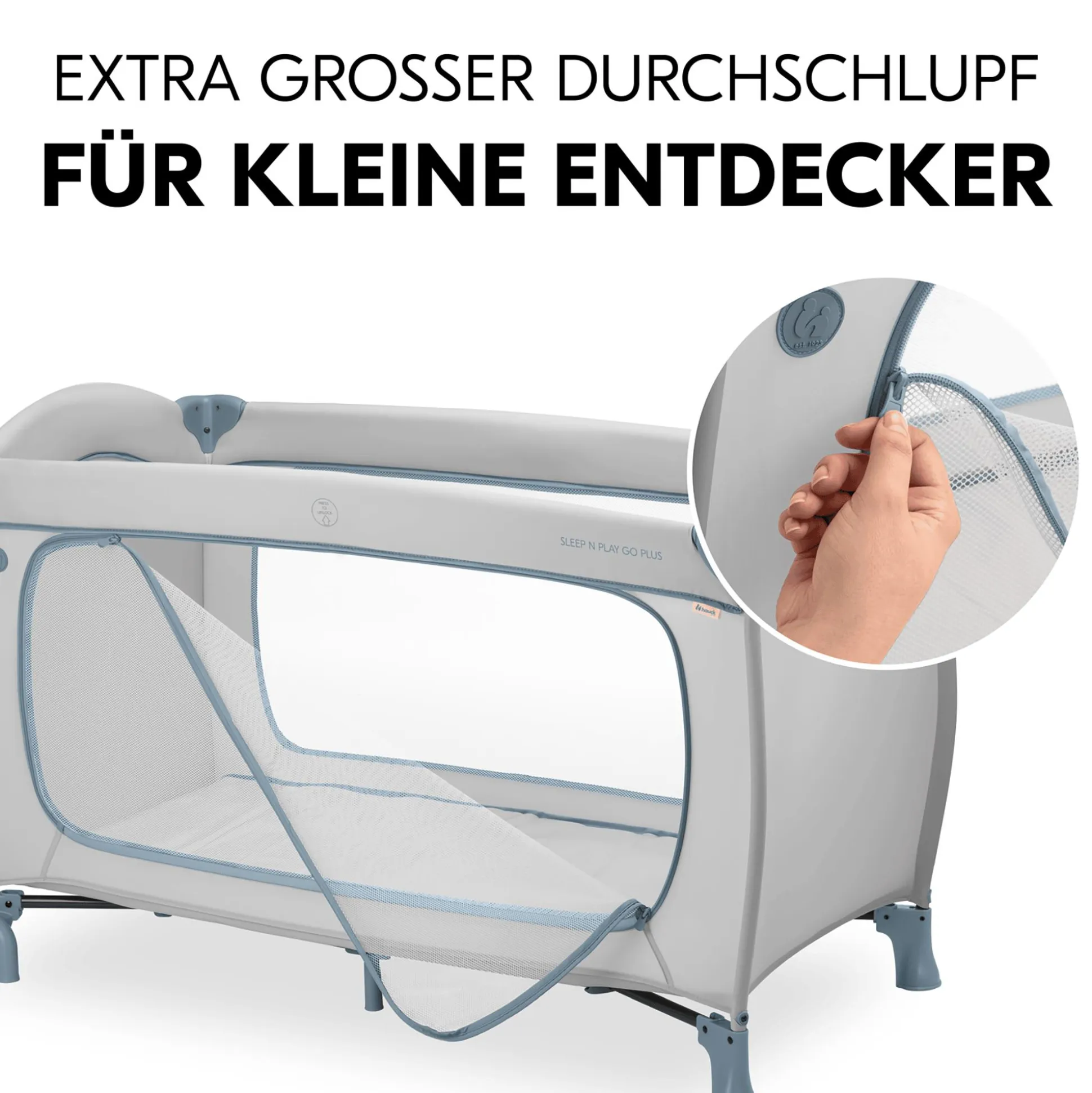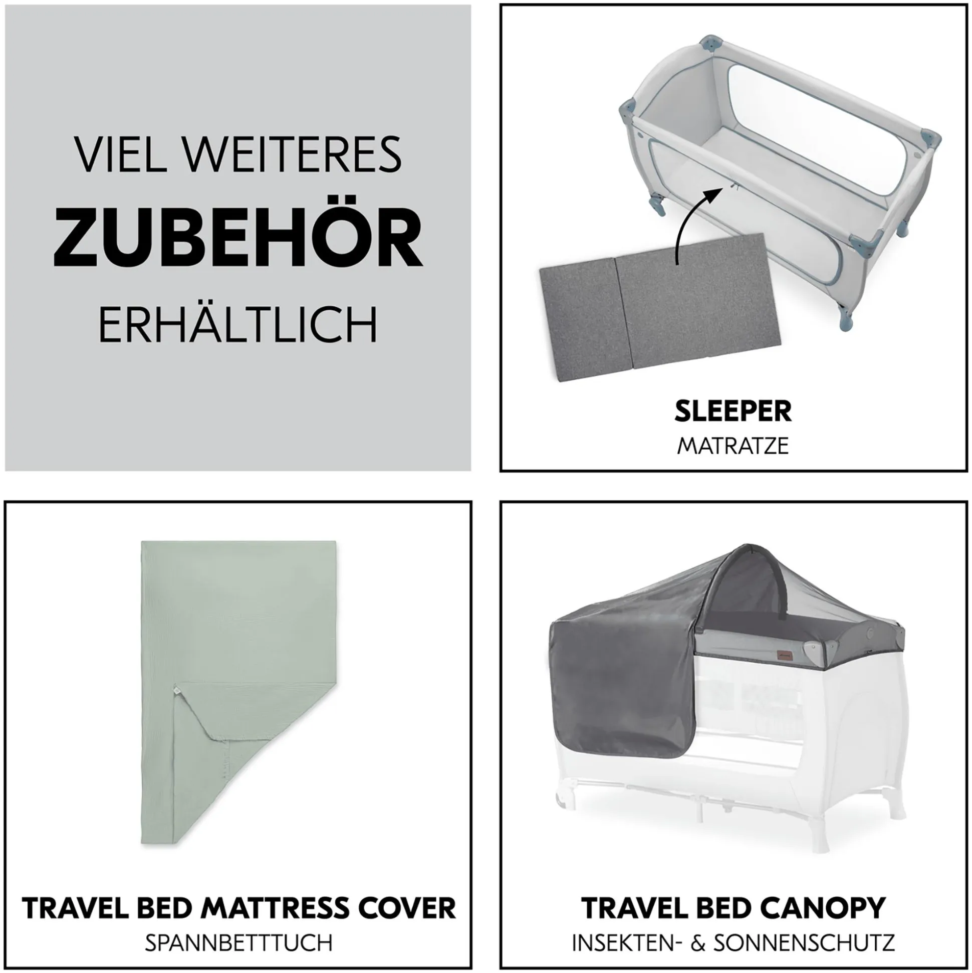 Passend zu dem Reisebett empfiehlt hauck die komfortable, separat erhältliche Zusatzmatratze Sleeper sowie das separat erhältliche Spannbettlaken Bed Me als praktische Ergänzung.