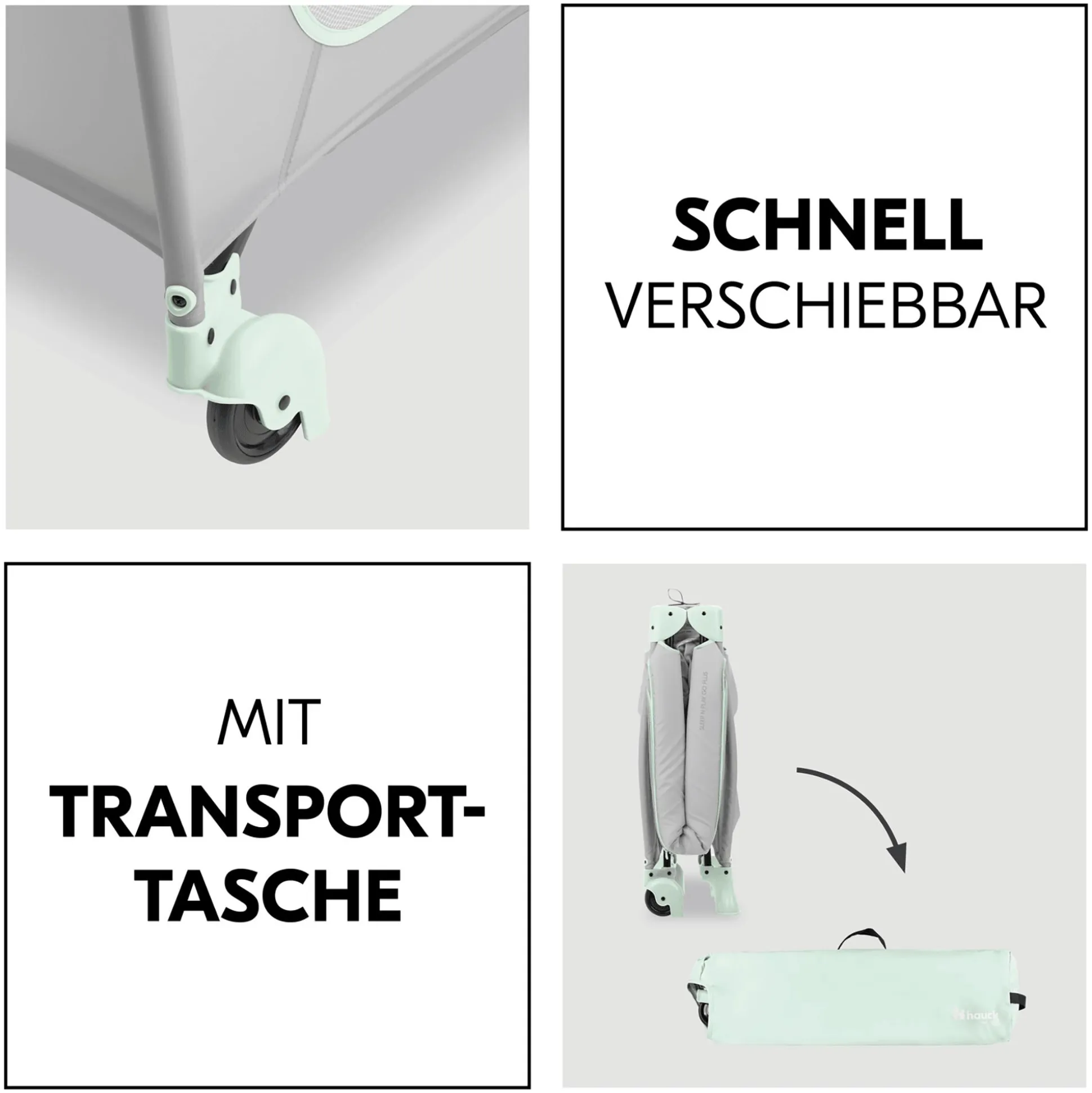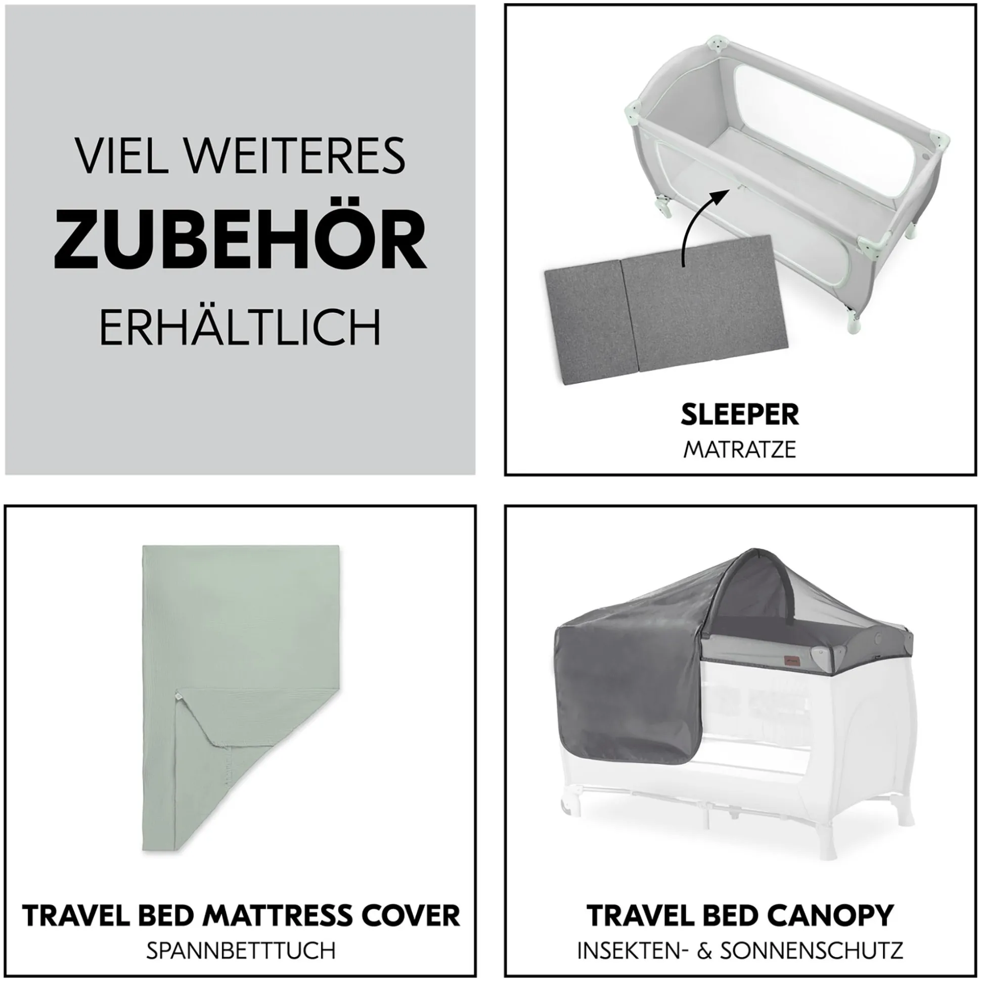Passend zu dem Reisebett empfiehlt hauck die komfortable, separat erhältliche Zusatzmatratze Sleeper sowie das separat erhältliche Spannbettlaken Bed Me als praktische Ergänzung.