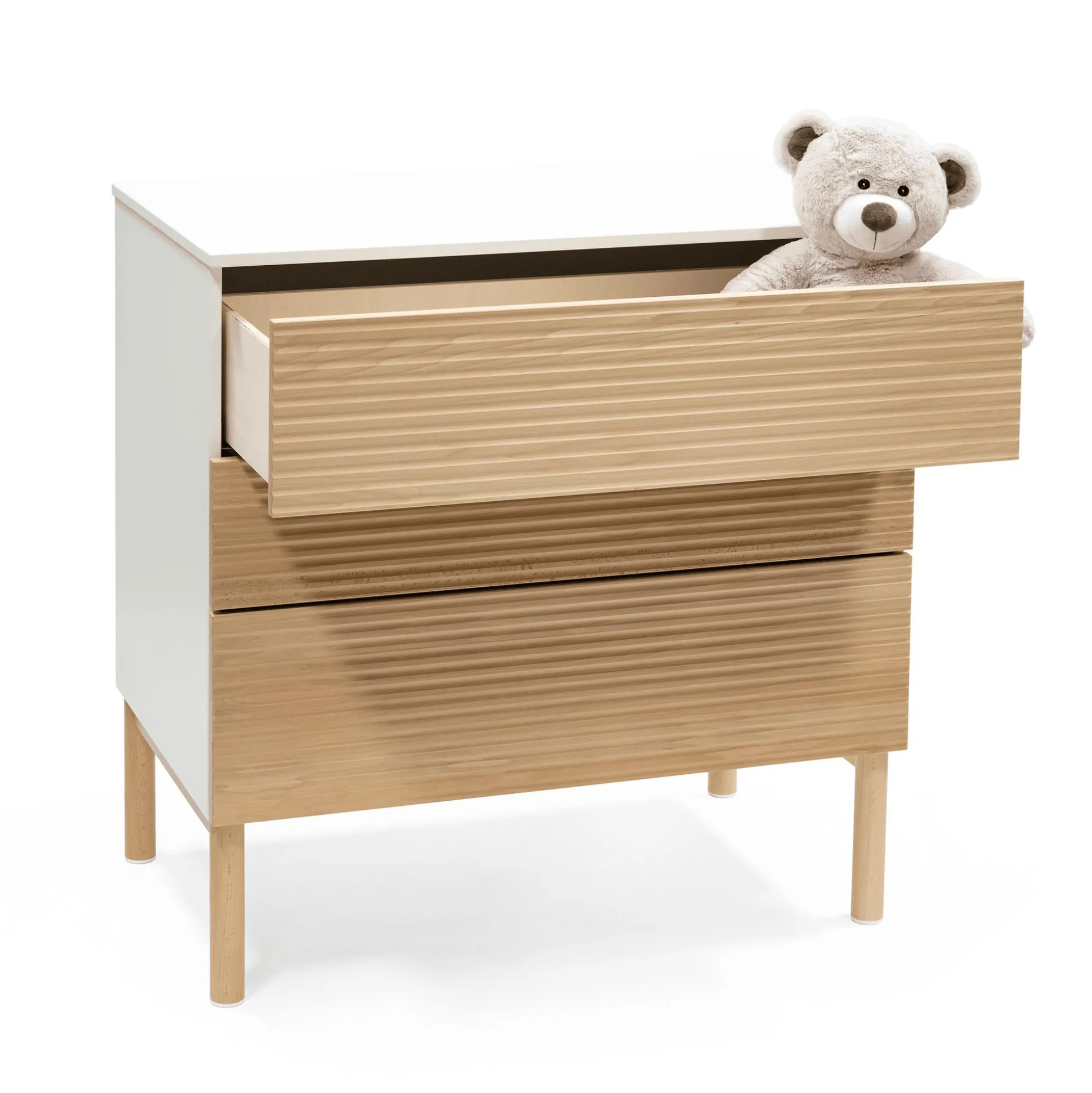 Die Sleepi™ Kommode Teil 2 von 2 besteht aus den Schubladen, die du für deine praktische Stokke® Kommode brauchst. Diese Schubladen musst du mit der Sleepi™ Kommode Teil 1 von 2 ergänzen (Artikel-Nr. 58311160) . Durch die Schubladen machst du die Kommode zu einem echten Platzwunder und kannst diese sogar als Wickeltisch nutzen. Dafür musst du die Kommode nur mit dem Stokke® Sleepi™ Wickelaufsatz ergänzen (Artikel-Nr. 58311270).