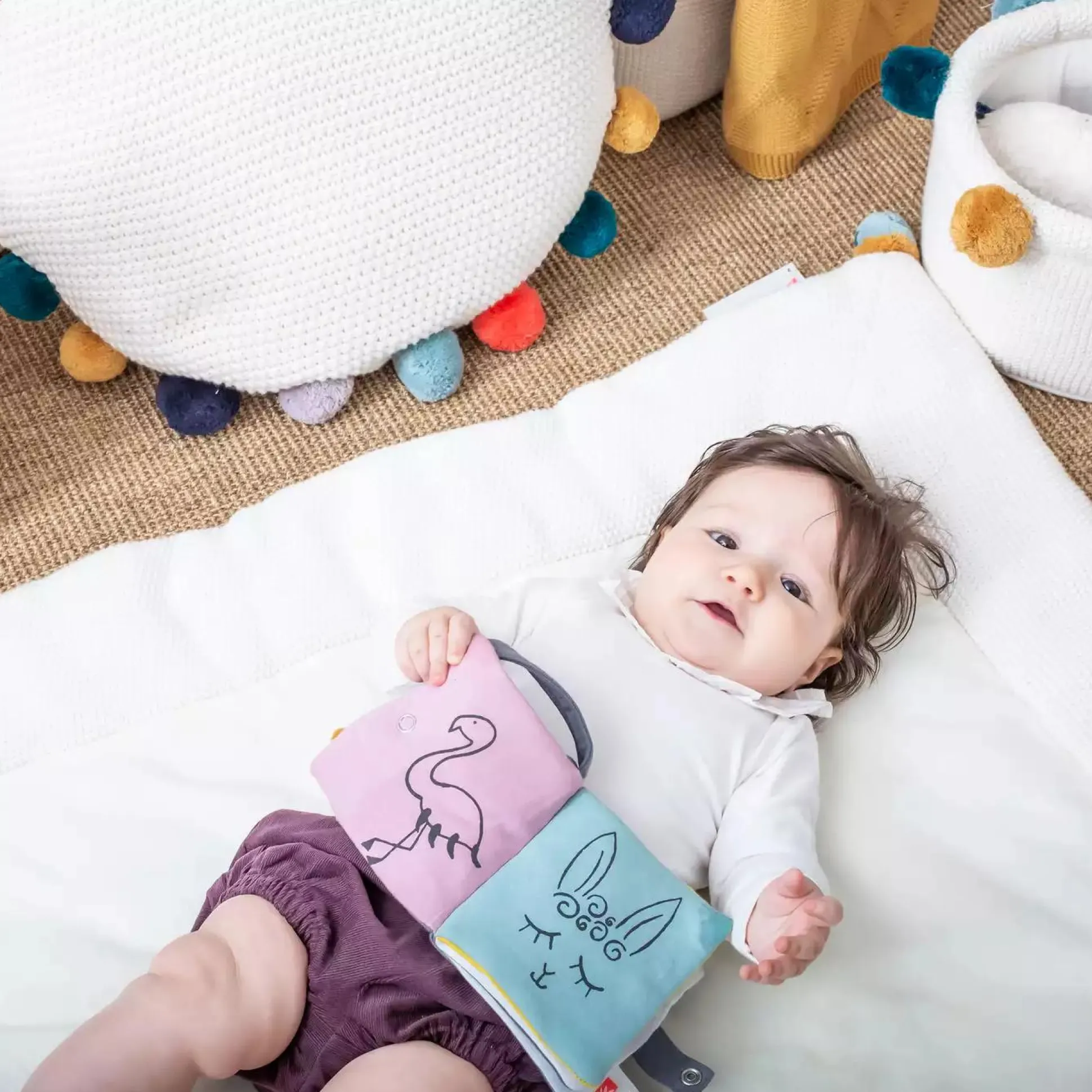 Das mehrseitige Soft-Buch Lama von kikadu ist kuschelweich und wird deinem kleinen Schatz große Freude bereiten. Du kannst es einfach mit einer Schlaufe und einem Druckknopf am Kinderwagen, Babyschale oder am Bett befestigen. Das knisternde Papier und die wunderschönen Farben laden deinen kleinen Schatz zum Spielen und Entdecken ein. Beim Durchblättern der Seiten lernt dein Baby auch verschiedene Tiere kennen.