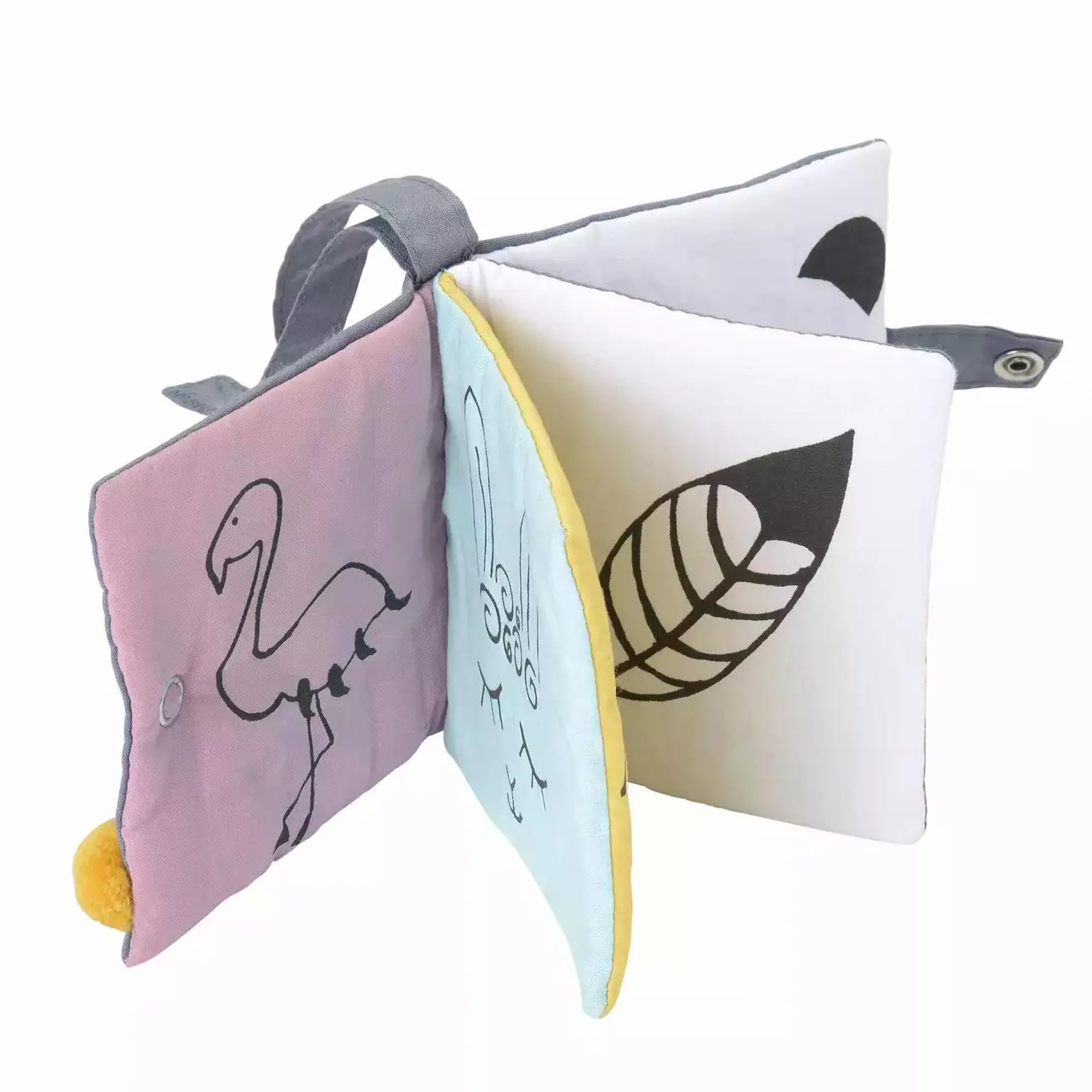 Das Stoffbuch besteht aus 100% Bio-Baumwolle mit einer Füllung aus 80% Bio-Baumwolle und 20% recycelten PET-Flaschen. Die Bio-Baumwolle ist naturbelassen, nicht chemisch gefärbt und somit auch freundlich zur Haut sowie zur Umwelt.