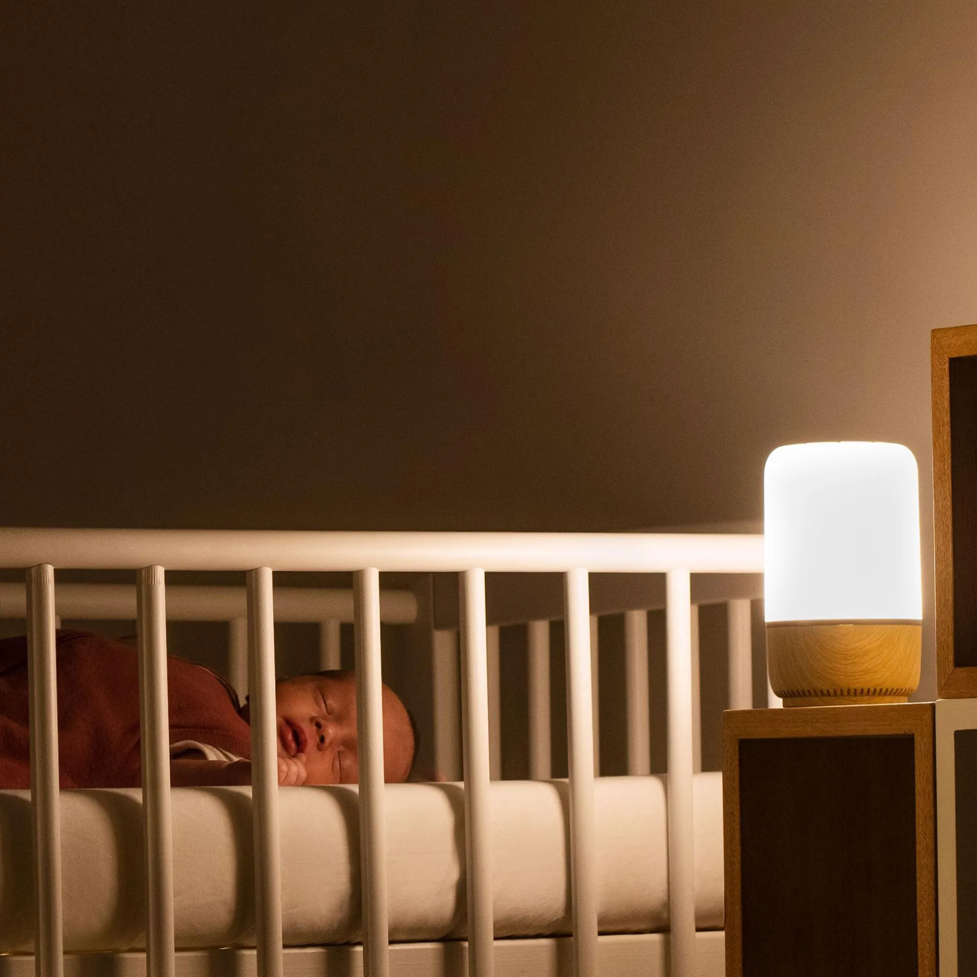 Das Soothe Nachtlicht & Klang von Maxi Cosi erzeugt das perfekte sensorische Erlebnis für ein ruhiges, entspanntes Kinderzimmer.