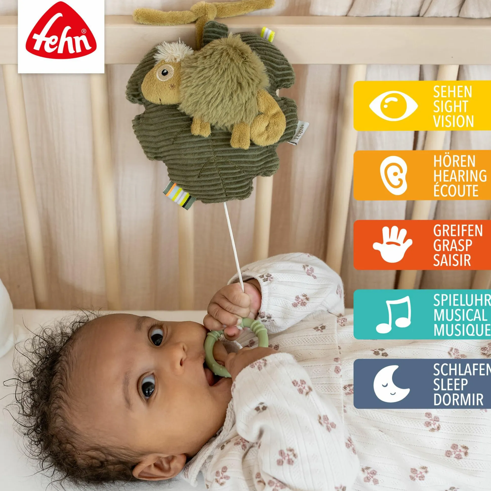 Die Spieluhr Chamäleon von fehn begleitet dein Baby von Geburt an mit zauberhaften Klängen und sanfter Stimmung. Mit der beruhigenden Melodie Mozarts Wiegenlied schafft sie eine liebevolle Atmosphäre, die deinem kleinen Schatz beim Einschlafen hilft und für entspannte Momente sorgt.