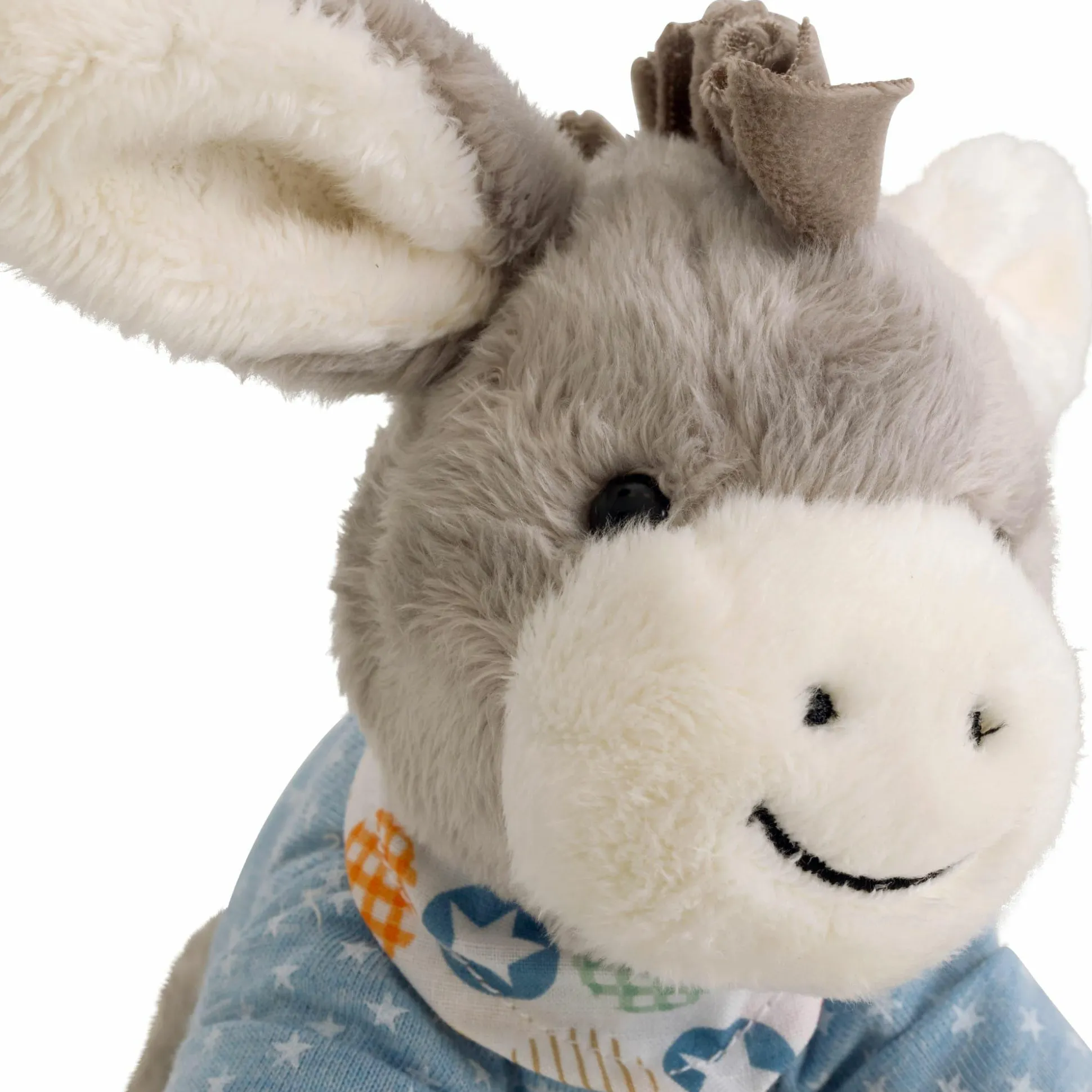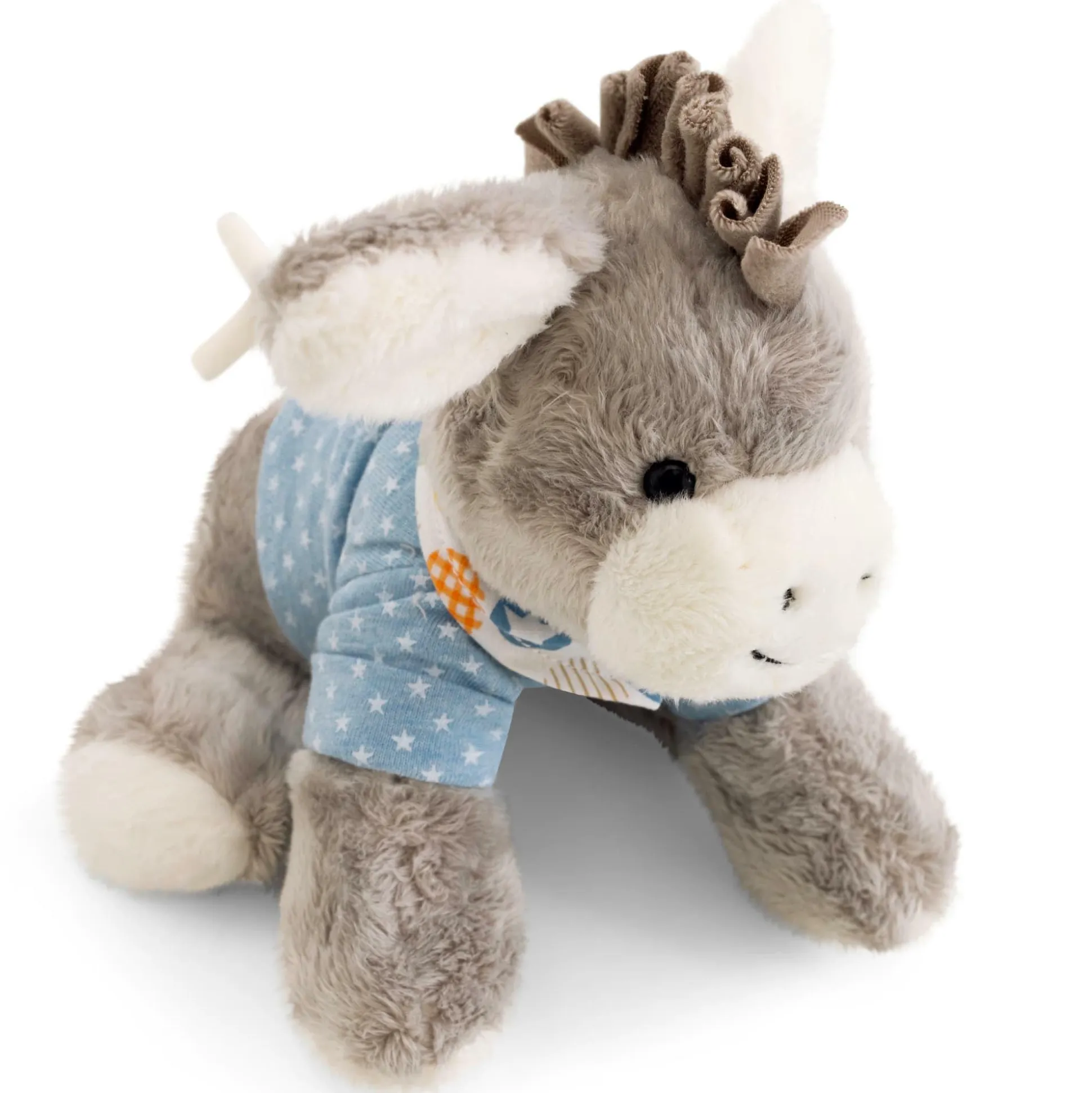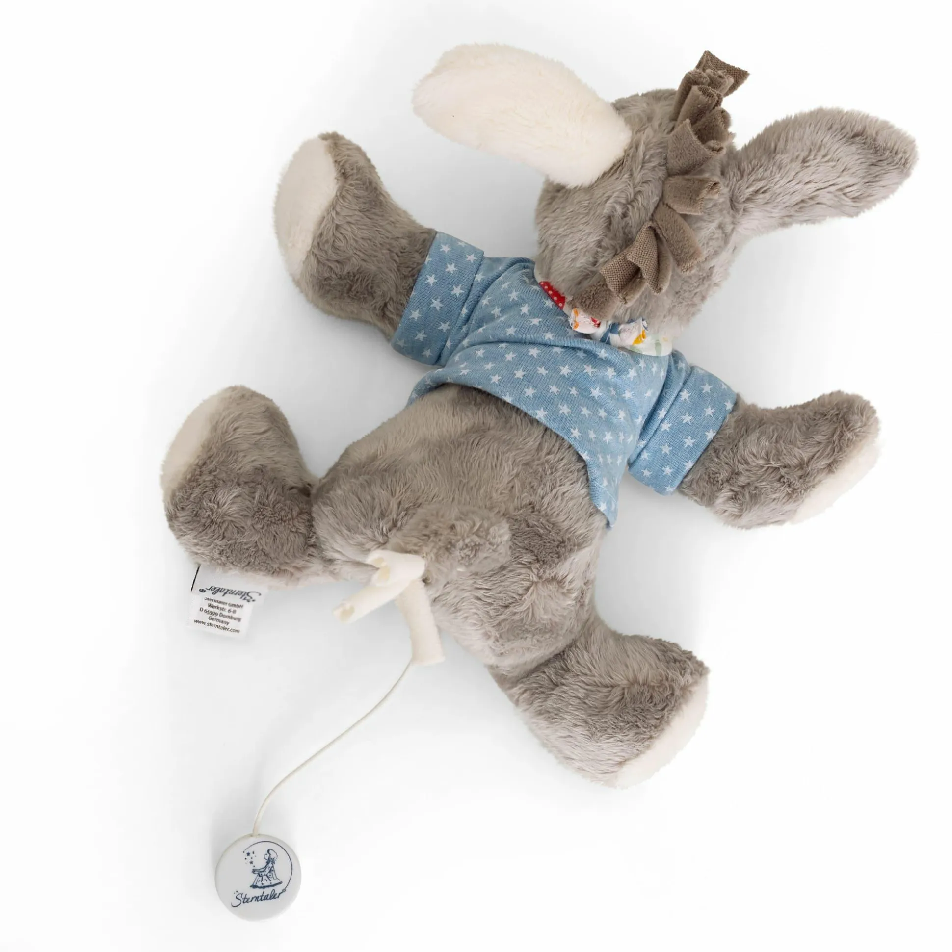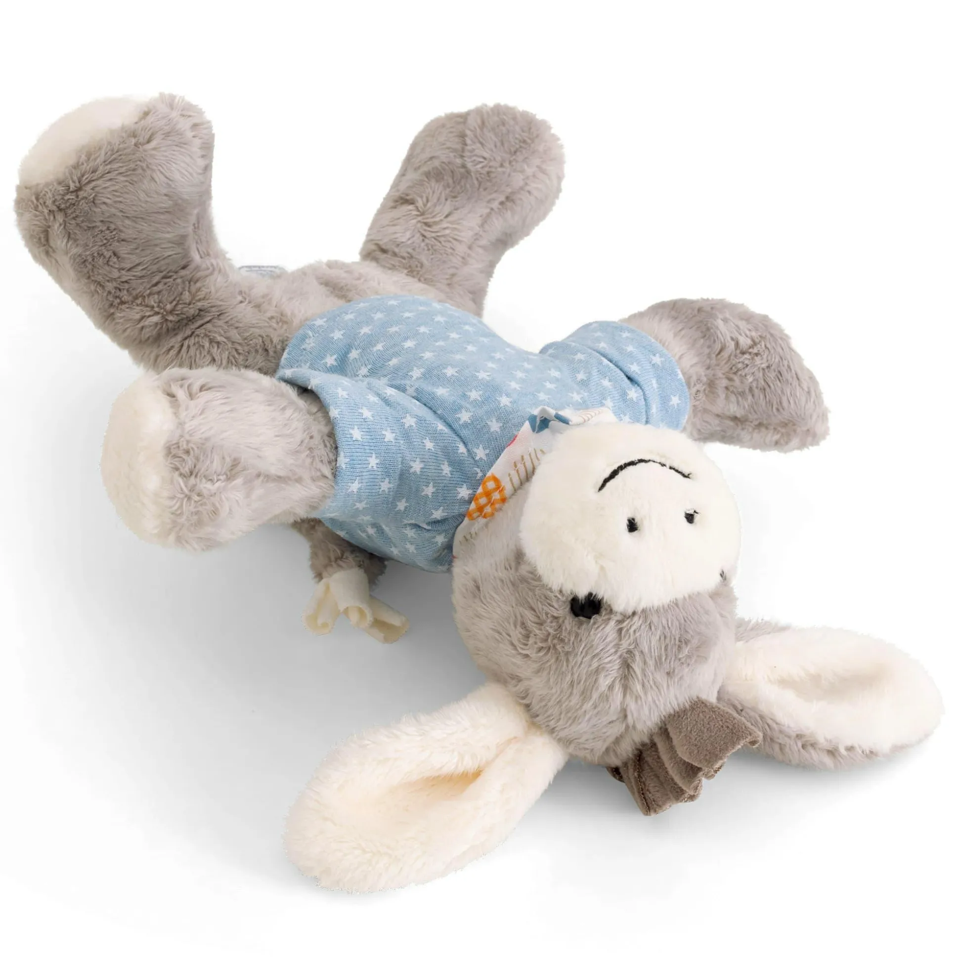 Der süße Esel Emmi, von Sterntaler, aus Flauschstoff und Jersey mit Spieluhr singt dein Baby in den Schlaf. Bindebänder sorgen für eine einfache Befestigung an Bettchen, Kinderwagen oder im Auto. Der angebrachte Reißverschluss macht das Herausnehmen des Spielwerks einfach und die Figur ist problemlos waschbar.