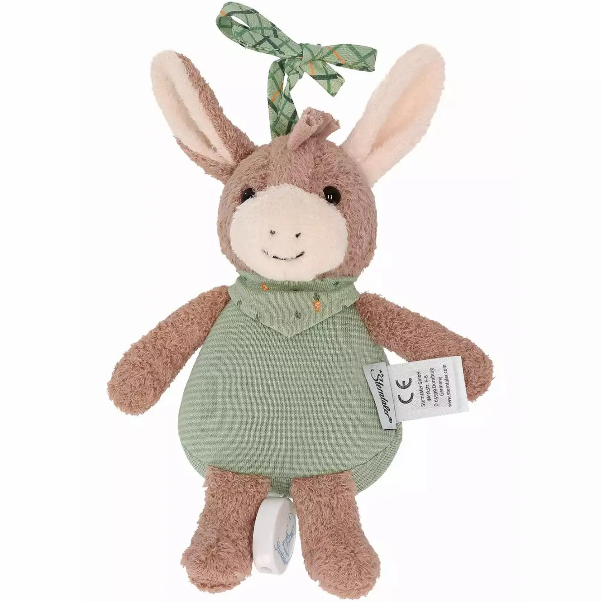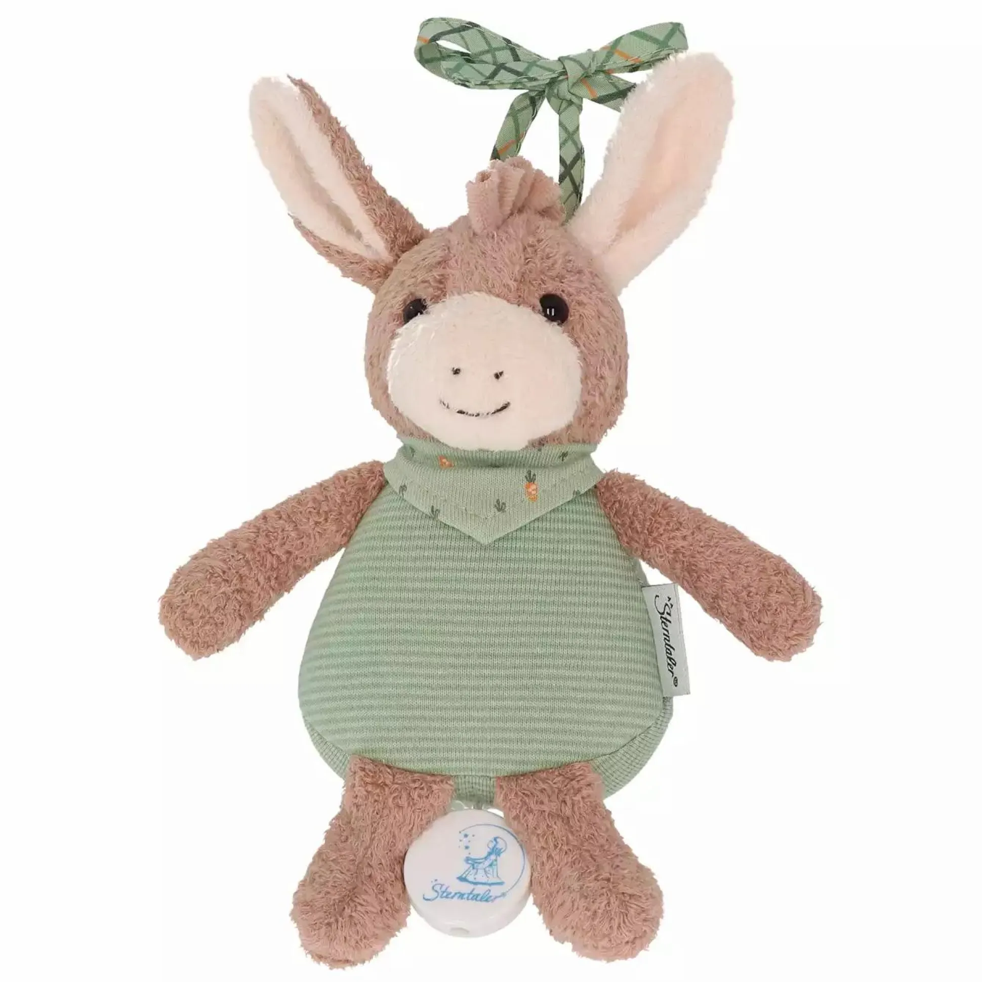 Der süße kleine Esel Emmilius von Sterntaler aus Flauschstoff und Jersey singt dein Baby in den Schlaf. Die Bindebänder sorgen zudem für eine einfache Befestigung an Bettchen, Kinderwagen oder im Auto.