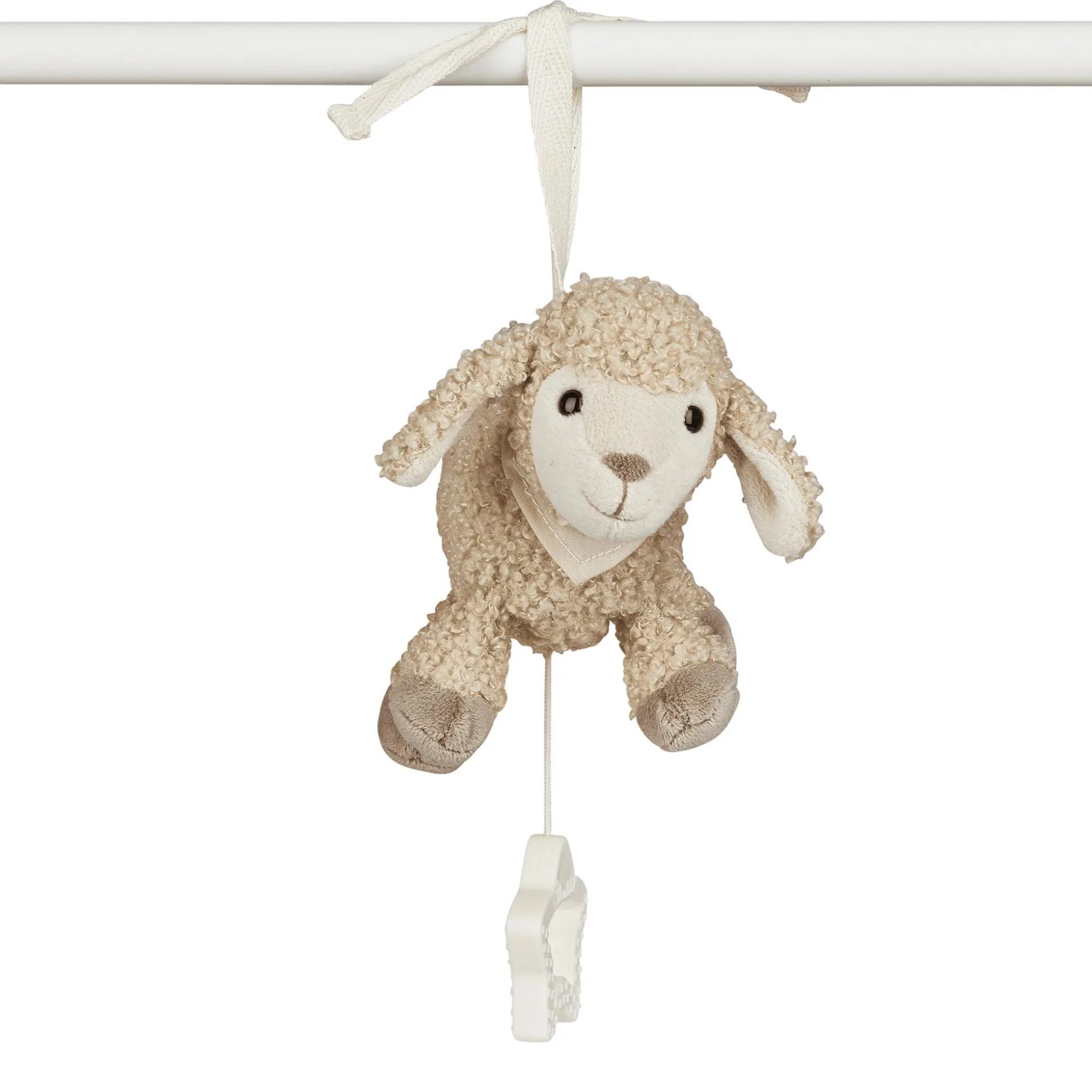 Mithilfe einer Spieluhr summt das kuschelige Schaf Flocke von Sterntaler dein Kind leise in den Schlaf. Ziehe einfach an der Schnur und schon erklingt eine beruhigende Melodie, die dein Baby sanft in den Schlaf wiegt. Dank der praktischen Schlaufe lässt sich die Spieluhr ganz leicht am Bettchen, am Kinderwagen oder am Autositz befestigen – so ist Flocke immer dabei.