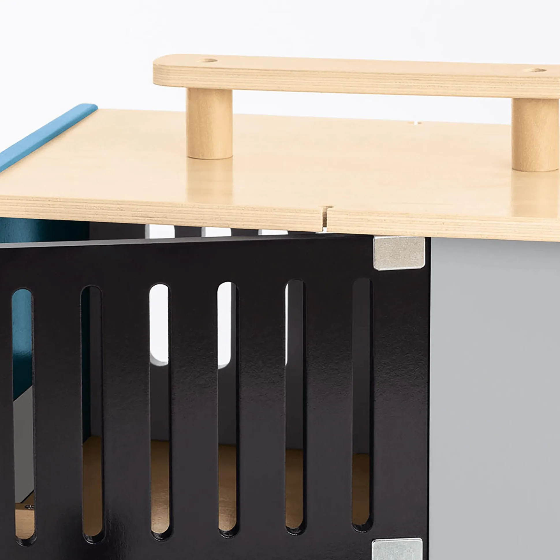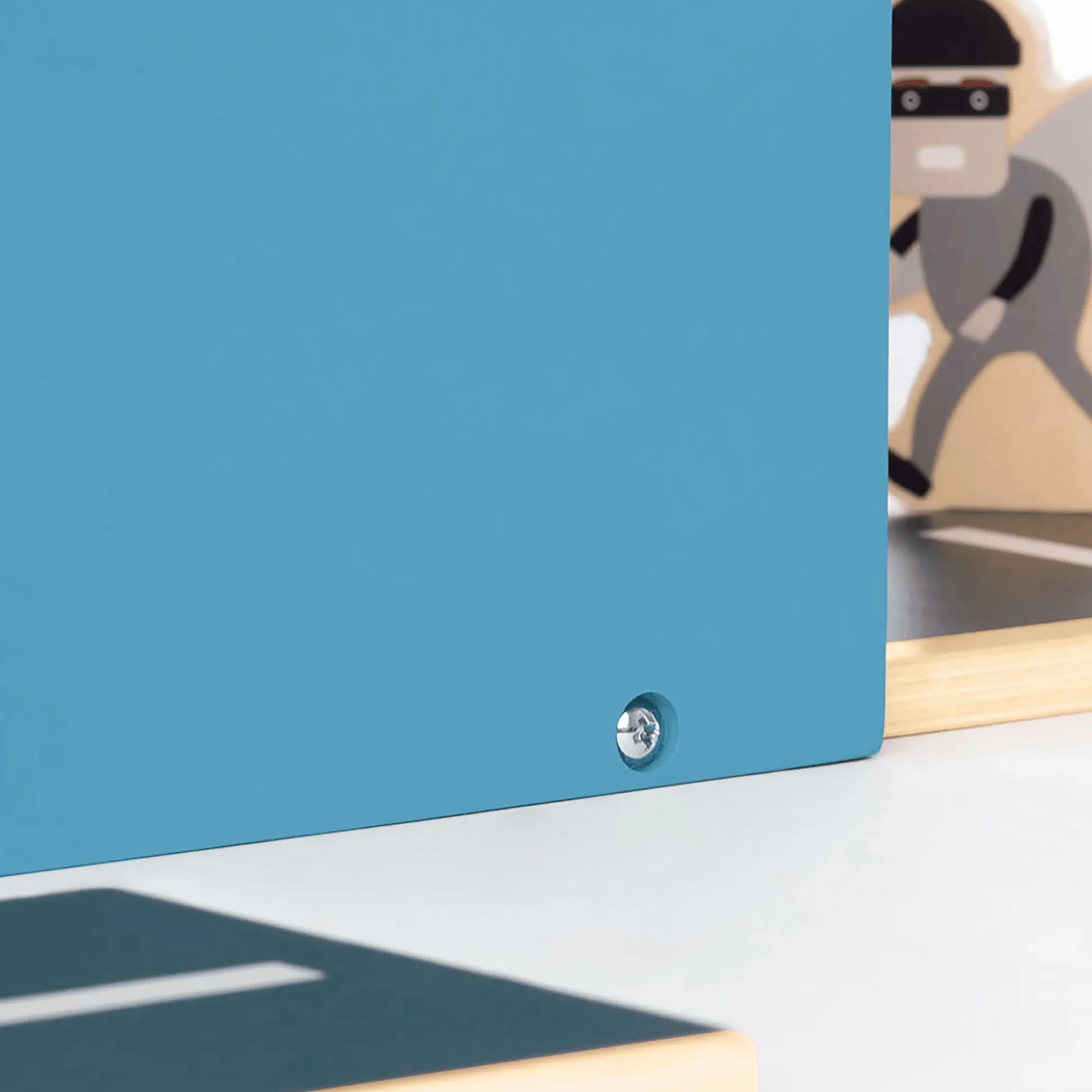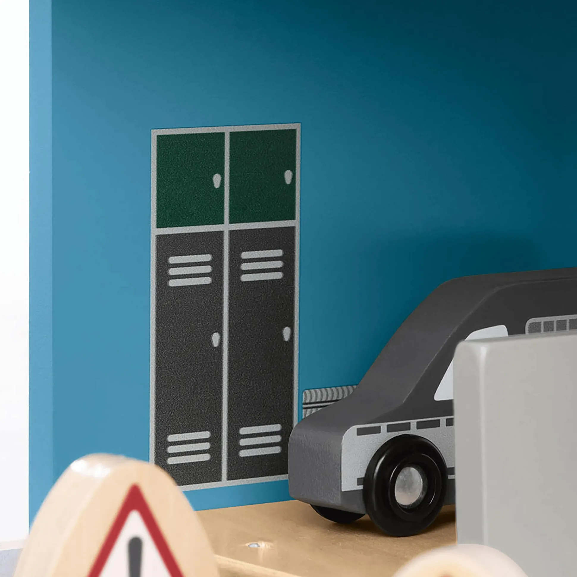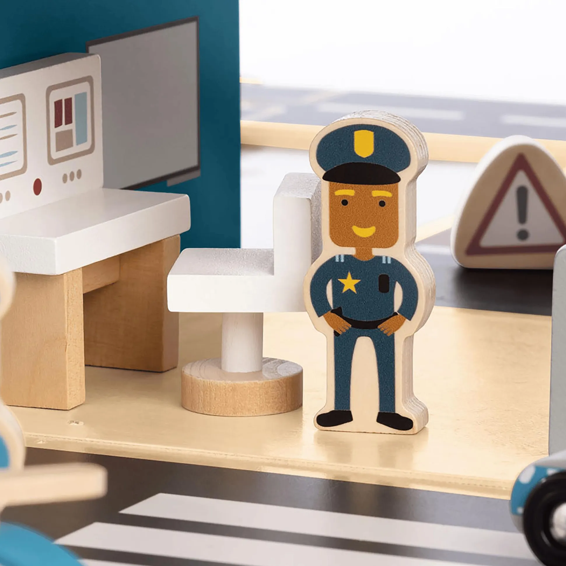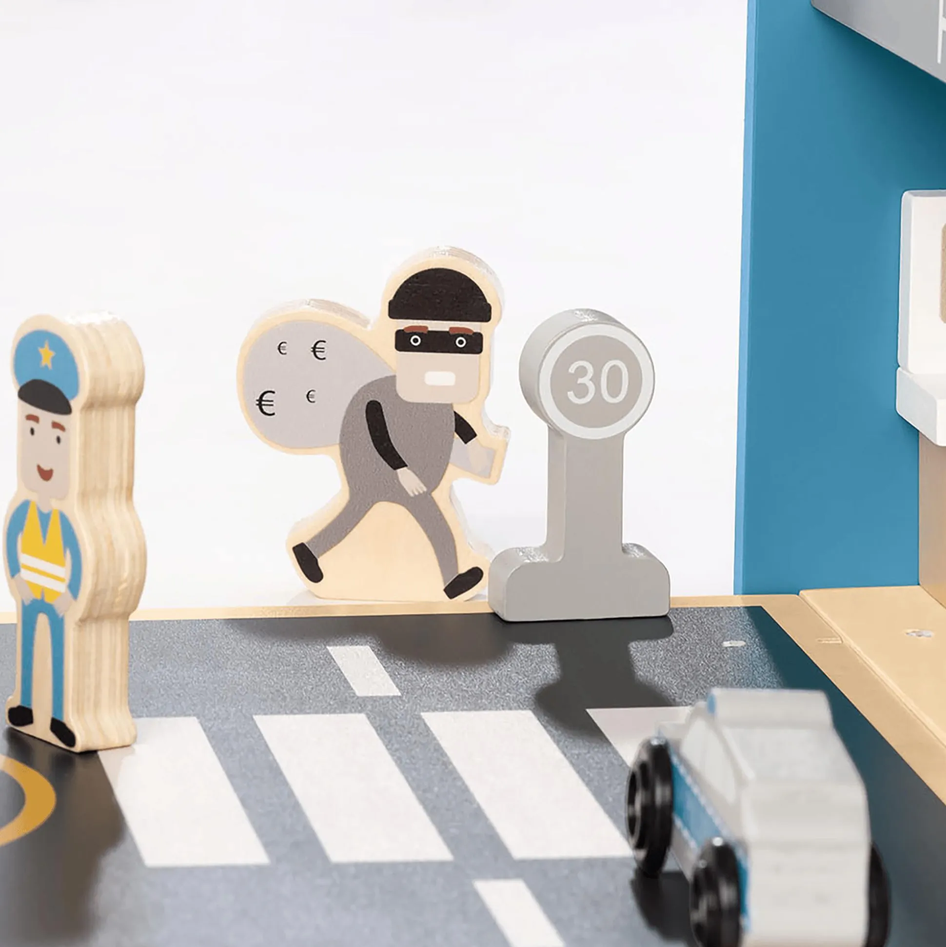 Die vielfältigen Aufbaumöglichkeiten dieser Spielwelt inspirieren zu fantasievollen Rollenspielen und garantieren deinem Kind aufregende Nachmittage, sei es bei der Streifenfahrt durch die Stadt oder bei der Aufklärung kniffliger Fälle.Die zweiseitig aufklappbare Spielkiste ist komfortabel am Griff transportierbar, sodass du die Spielwelt überall mit hinnehmen kannst. Ob im Kinderzimmer, im Garten oder bei Freunden – der Spielspaß ist immer dabei!Mit der klappbaren Gefängnistür, den fahrbaren Autos und dem Helikopterlandeplatz können spannende Verfolgungsjagden und aufregende Rettungsaktionen nachgespielt werden.