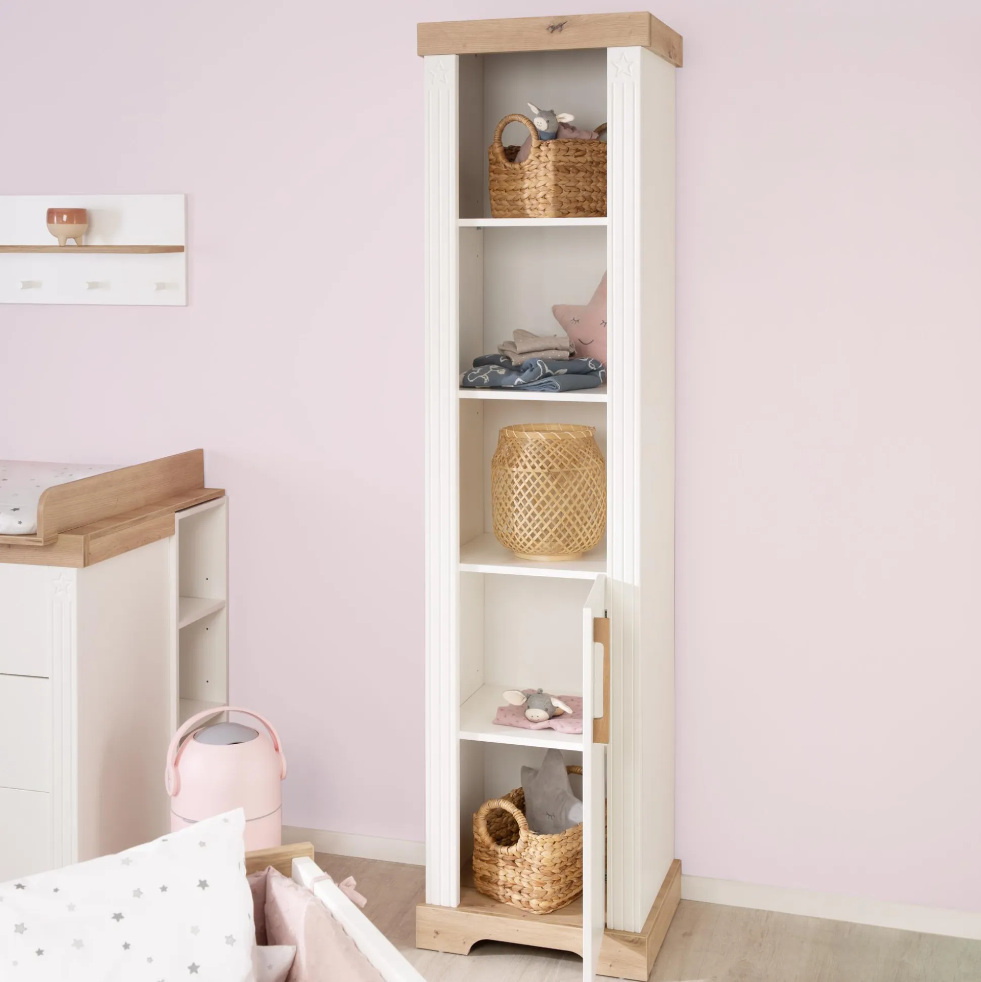 Das Standregal Milan von roba ist die perfekte Ergänzung für das Kinderzimmer Milan. Das schrankhohe Regal verfügt über zwei geschlossene Fächer und drei offene Fächer die dir eine tolle Ordnung und Übersichtlichkeit im Zimmer ermöglichen. Die hochwertigen Griffe aus Massivholz verleihen dem Standregal einen edlen Look. Weitere Möbel aus dem Kinderzimmer Milan sind separat erhältlich.