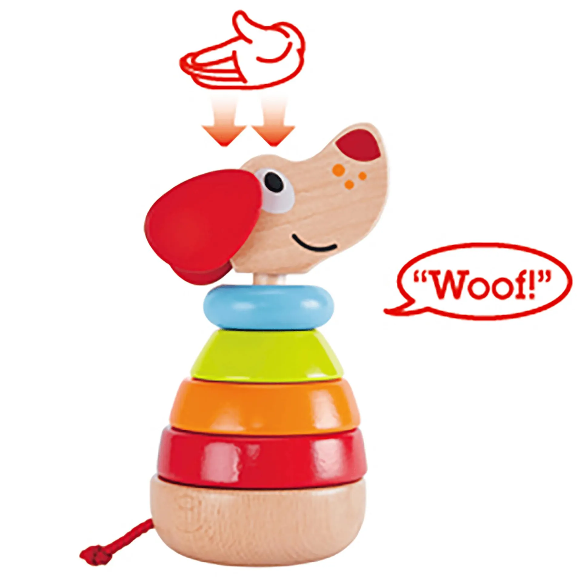 Das niedliche Hündchen bringt zusätzlichen Spaß, indem es freudig bellt, wenn der Kopf liebevoll getätschelt wird. Mit insgesamt sechs Teilen unterstützt Pepe nicht nur die individuelle Entwicklung, sondern fördert auch das gemeinschaftliche Spiel – ein perfekter Begleiter für kleine Abenteurer ab ca. einem Jahr.