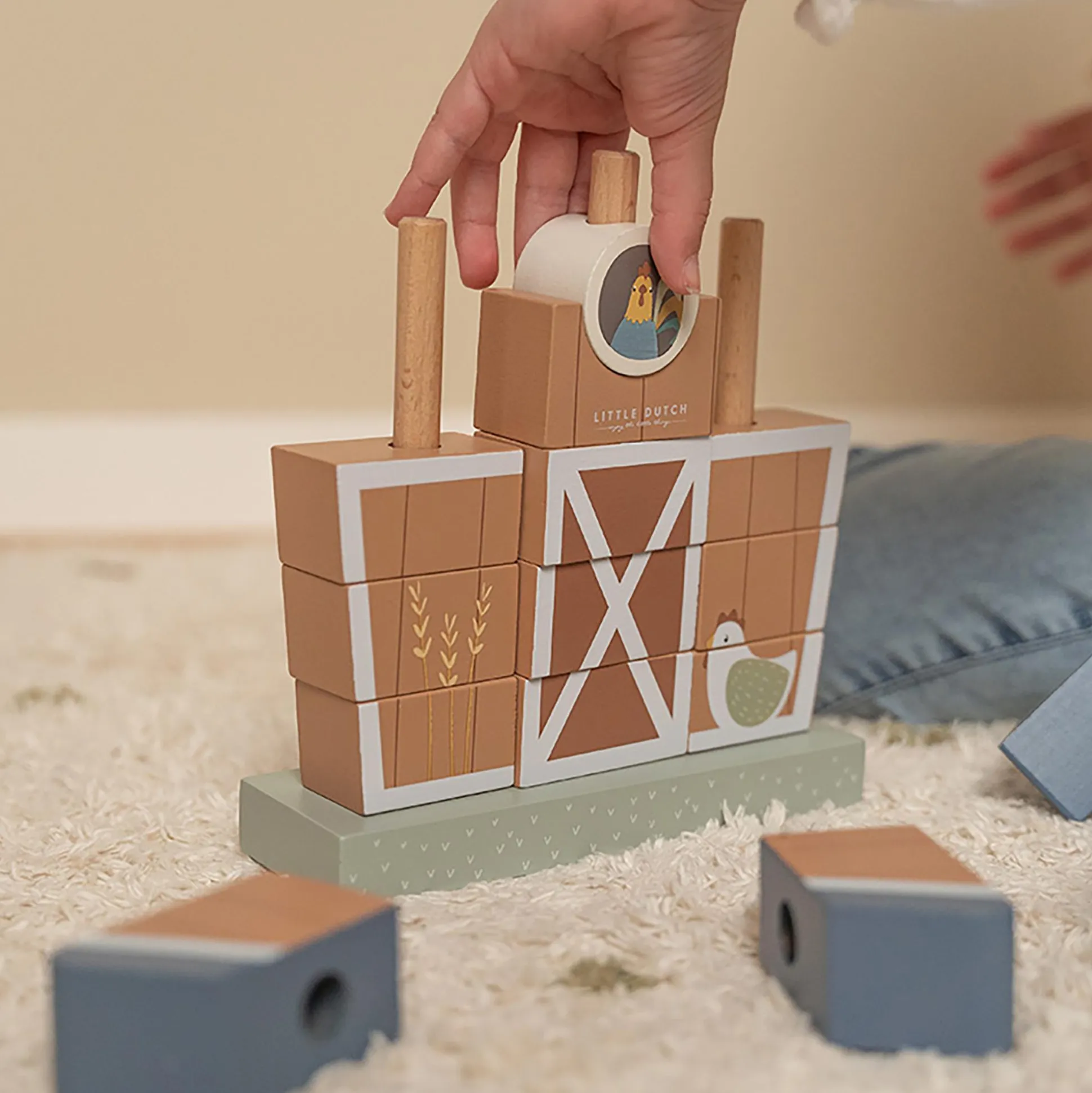 Mit dem Stapelspiel Little Farm von Little Dutch zieht das Landleben ins Kinderzimmer ein! Die liebevoll gestalteten Holzelemente laden dazu ein, verschiedenste Formen aufeinander zu stapeln und dabei immer wieder neue Kombinationen auszuprobieren. Ob Türmchen bauen oder Reihen legen – der Fantasie sind keine Grenzen gesetzt. So wird jede Spielrunde zu einem neuen Abenteuer auf dem Bauernhof.