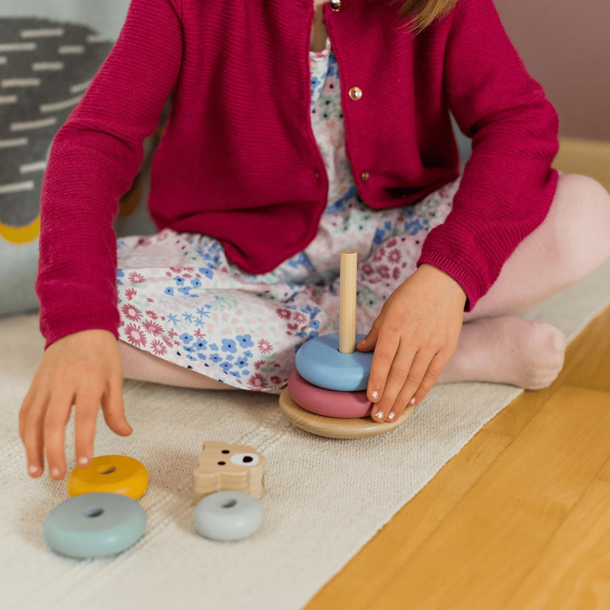 Der Stapelturm Bär von Kindsgut bietet tierischen Spielspaß für dein Kind. Ein Stapelturm gehört zu den absoluten Klassikern, die in jedes Kinderzimmer gehören. Das pädagogische Lernspielzeug fördert die Feinmotorik und lässt sich vielseitig nutzen.Die kindgerecht gestalteten Holzringe in dezenten Farben lassen sich leicht greifen und stapeln, sortieren oder kreativ in andere Spielsituationen integrieren. Das natürliche, leichte Holz fühlt sich dabei schön in den Händen deines Kindes an.