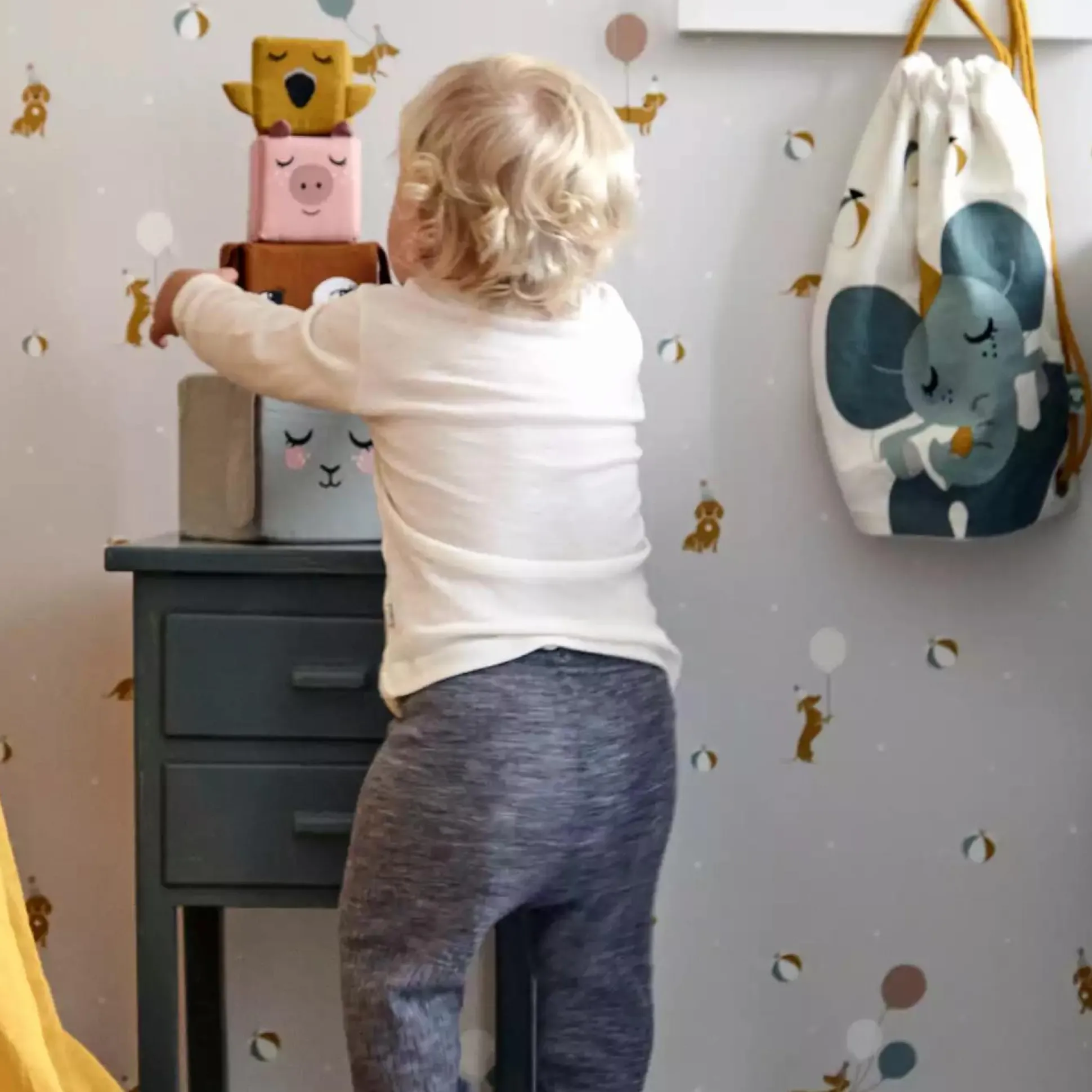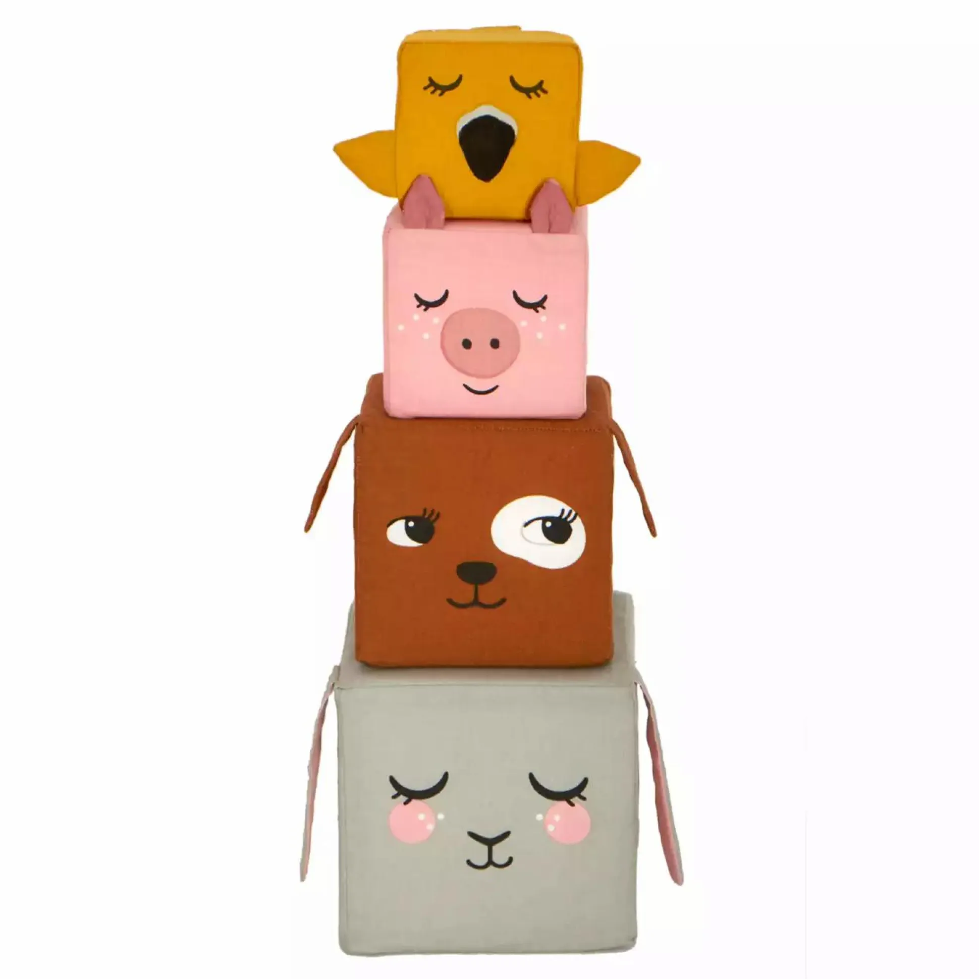Der Roommate Stapelwürfel besteht aus vier unterschiedlichen großen Würfeln aus Bio-Baumwolle. Der Elefant, die Giraffe, ein Koala und ein Vogel können nach Herzenslust bespielt und gestapelt werden. Dank des kuschelweichen Materials kannst du mit den Stapelwürfeln Country Life ausgiebig knuddeln.