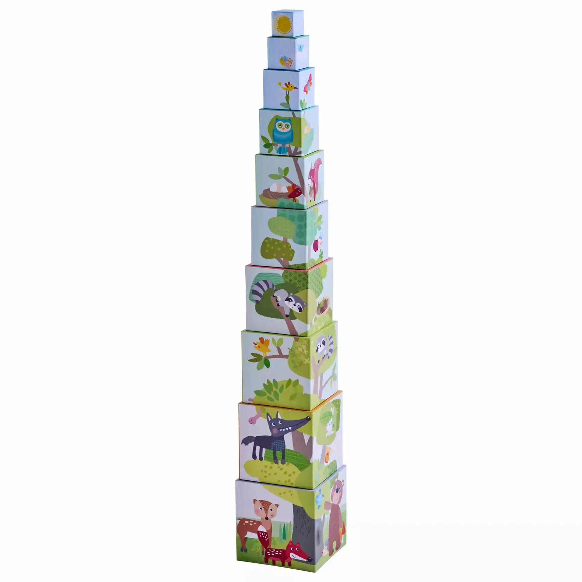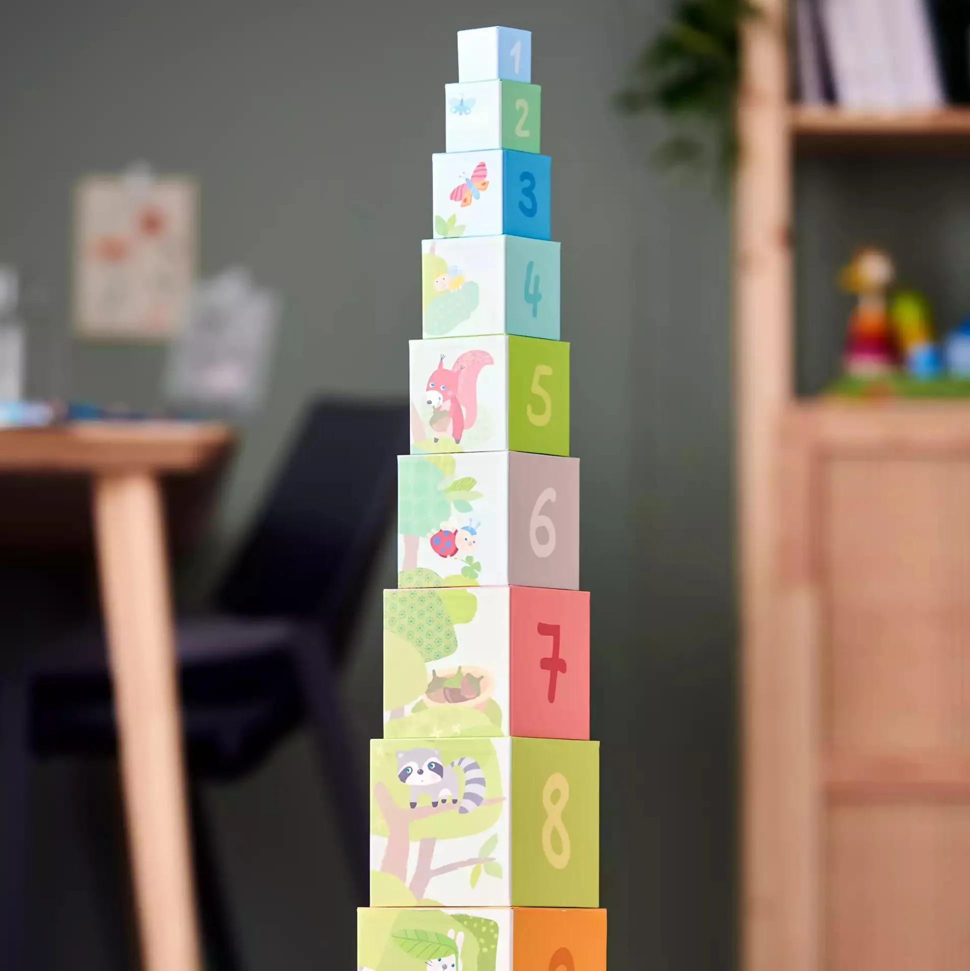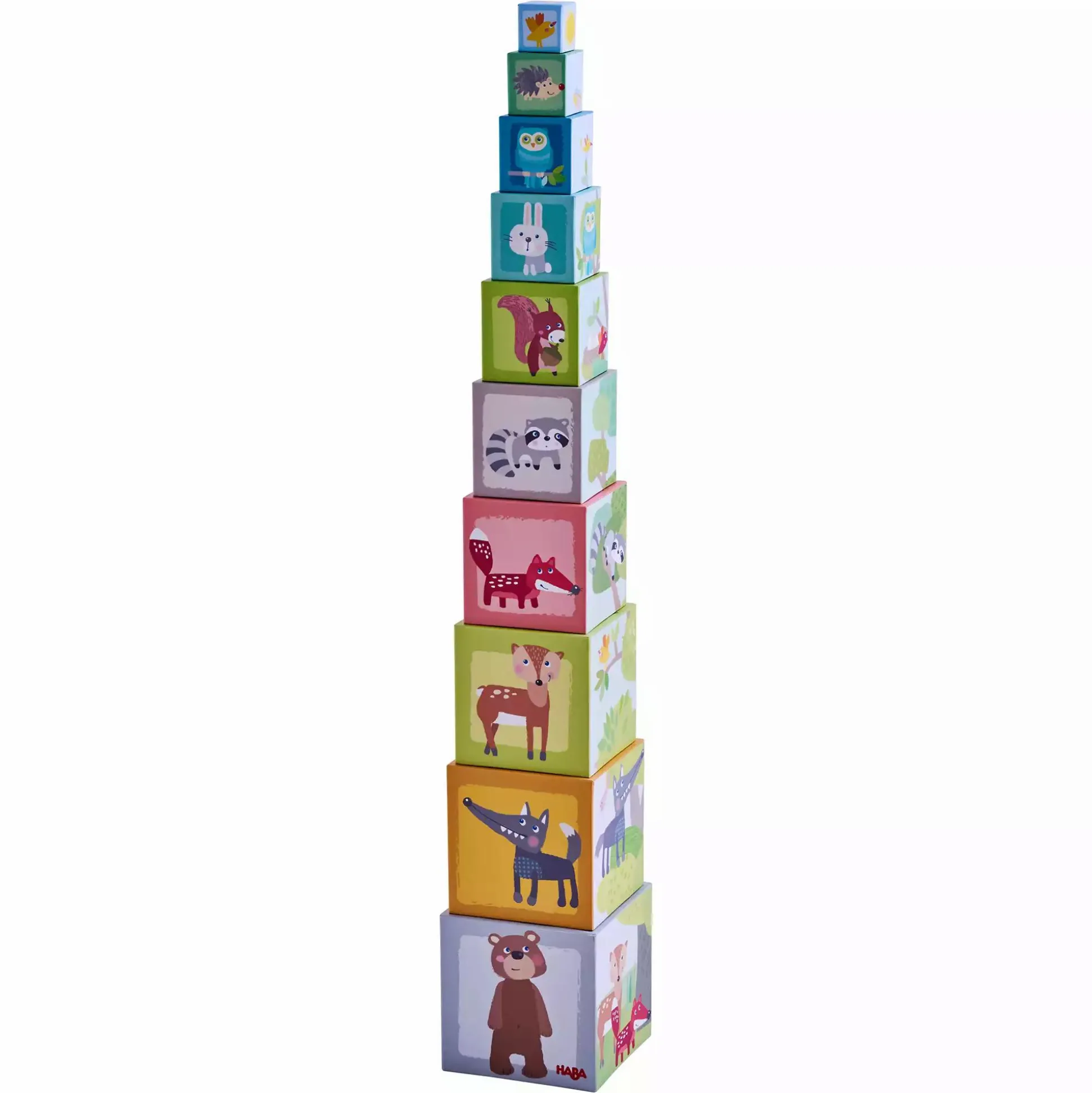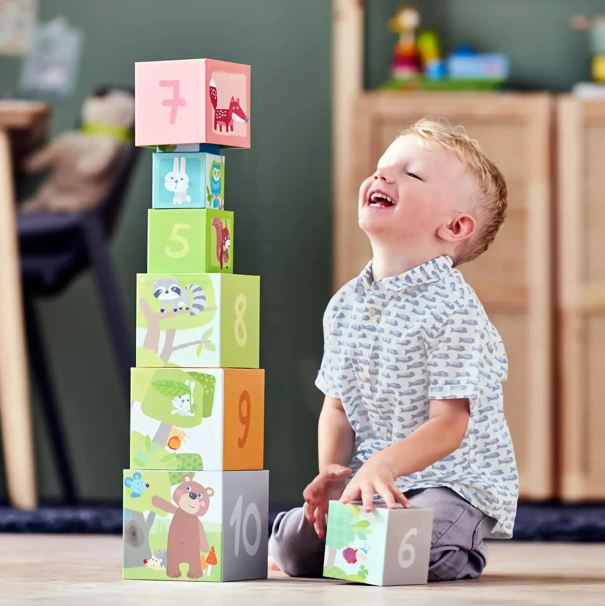 Mit den abwechslungsreichen Stapelwürfeln Waldfreunde von HABA übt dein Kind das Ordnen nach Größe und lernt die Zahlen von 1 bis 10 kennen. Jeder der Stapelwürfel aus Pappe zeigt ein anderes niedliches Tier, eine andere Farbe und eine Zahl. Beim Bauen wächst an einer Seite des Stapelturms ein prächtiger Baum in die Höhe. Dort gibt es noch mehr Wald-Tiere zu entdecken.