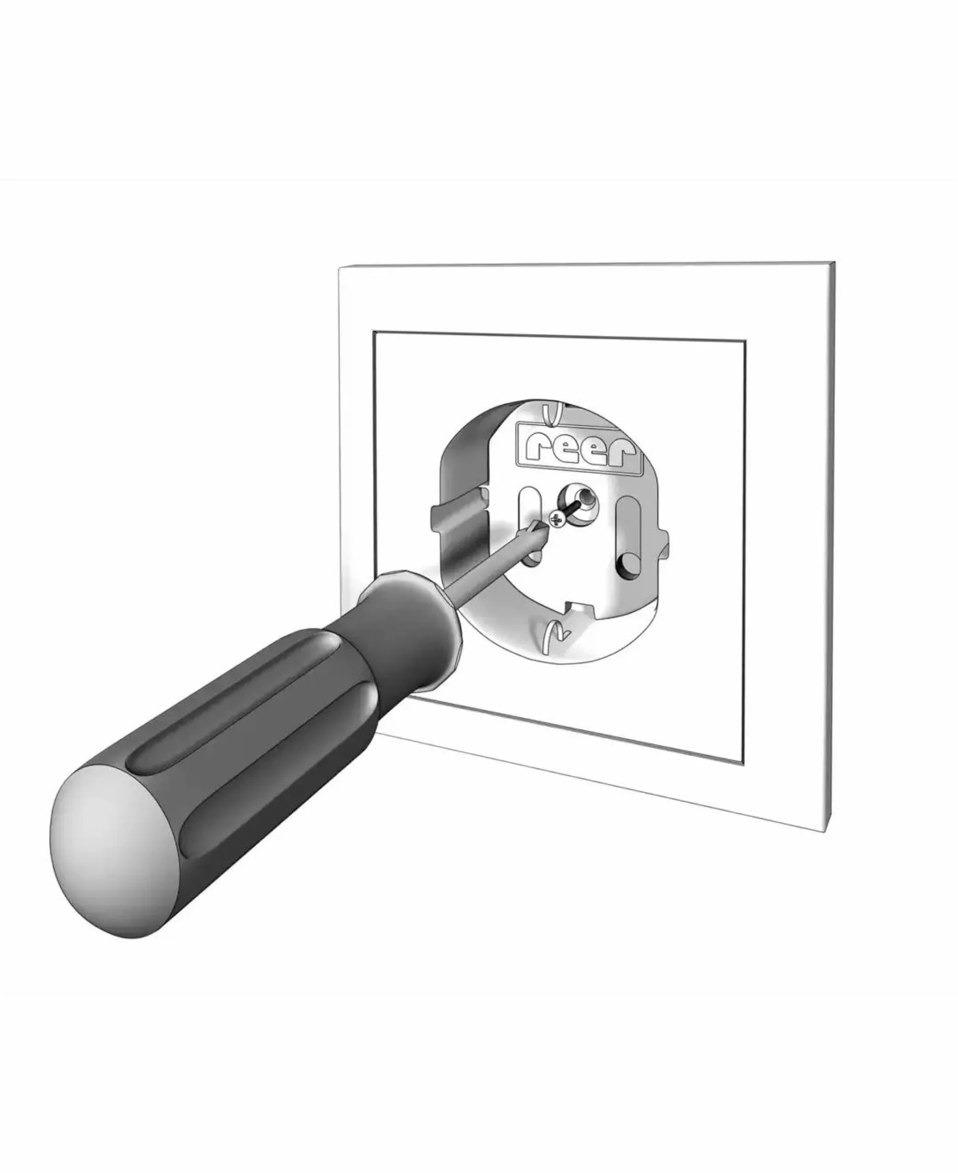 - fester Halt – wird mit der Schraube der Steckdose befestigt