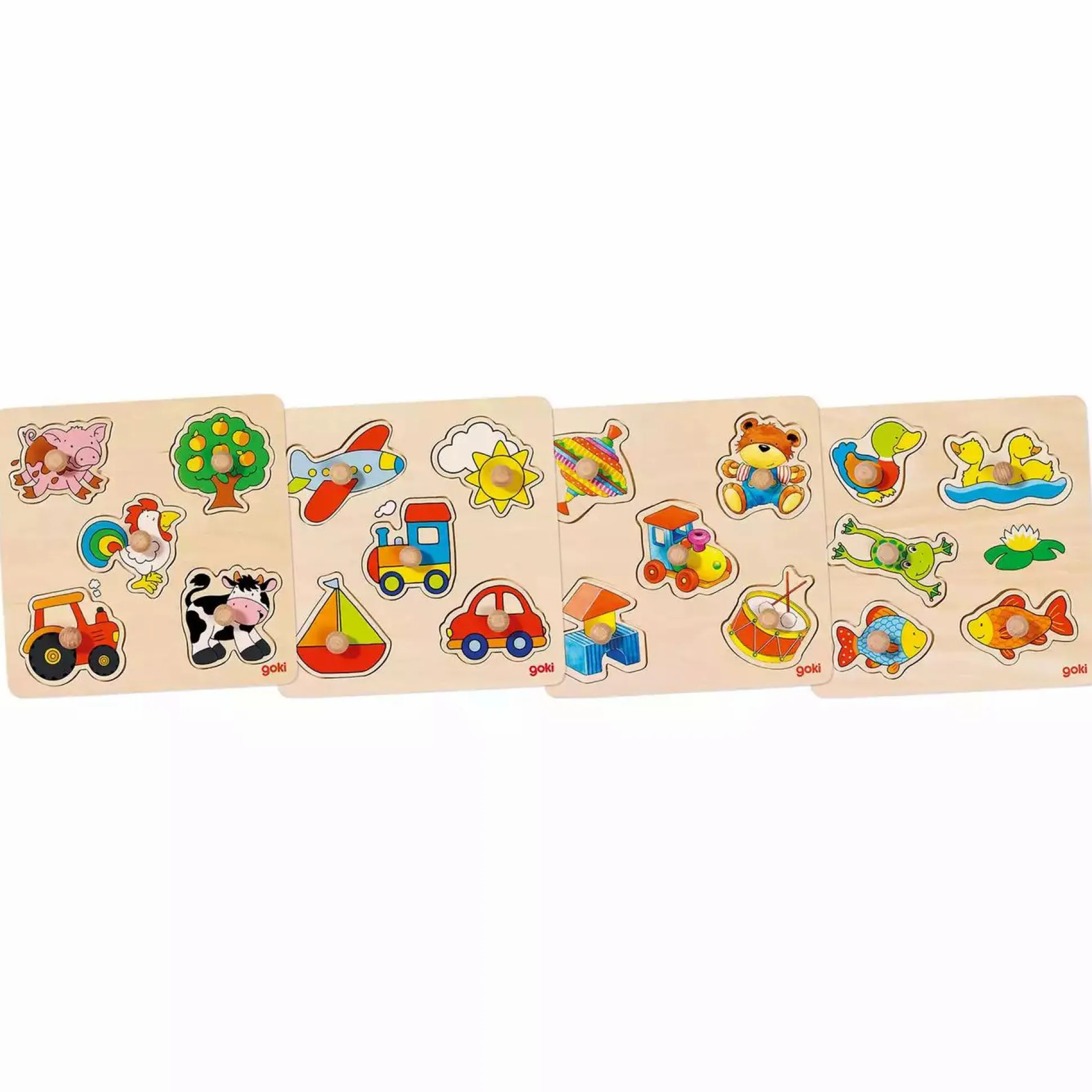 Das Steckpuzzle ist der Ideale Zeitvertreib für Zuhause oder Unterwegs. Dein Kind fördert hier spielerisch und ganz alleine seine motorischen Fähigkeiten. Die Holzgriffe sind ideal für kleine Puzzler.