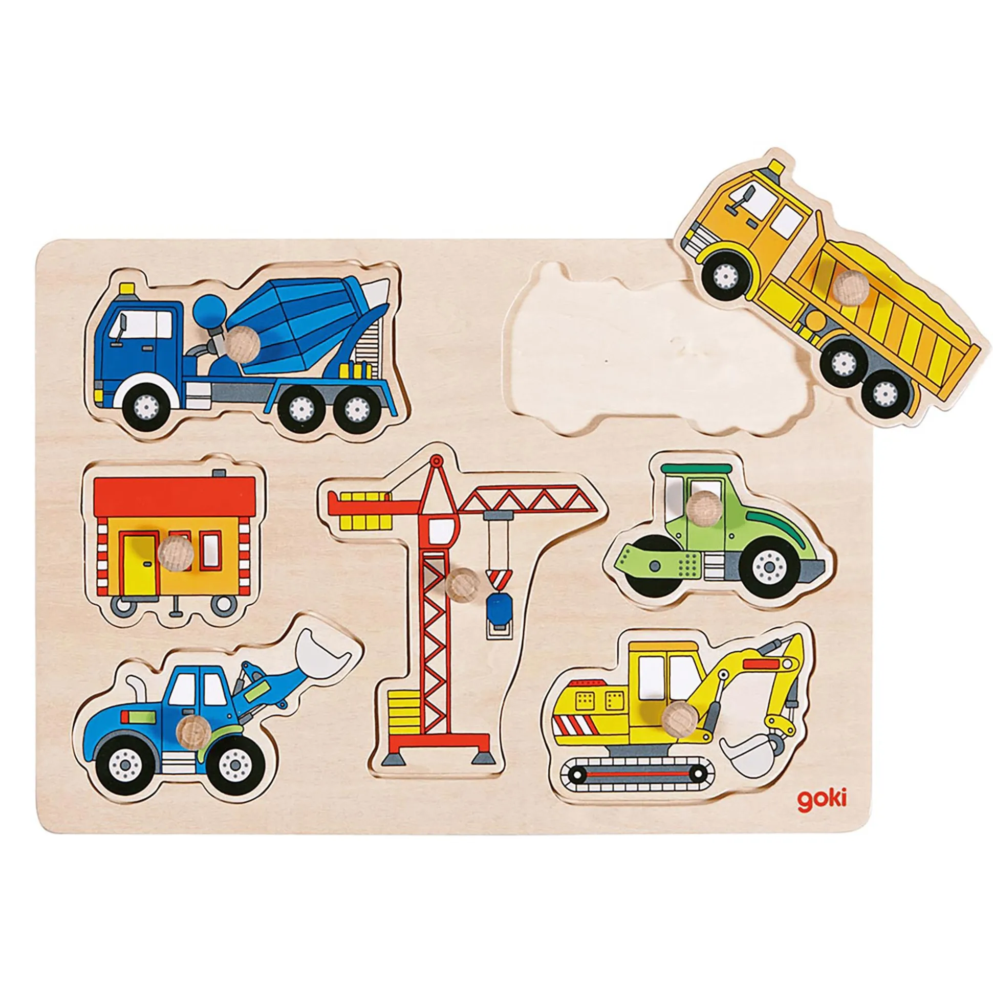 Das Steckpuzzle Baufahrzeuge von goki bringt die Baustelle direkt ins Kinderzimmer! Mit liebevoll gestalteten Motiven aus der Welt der Baufahrzeuge sorgt dieses Holzpuzzle für leuchtende Augen und ersten Puzzlespaß. Die robusten Teile sind perfekt für kleine Kinderhände geeignet und fördern spielerisch das Erkennen und Zuordnen von Formen.