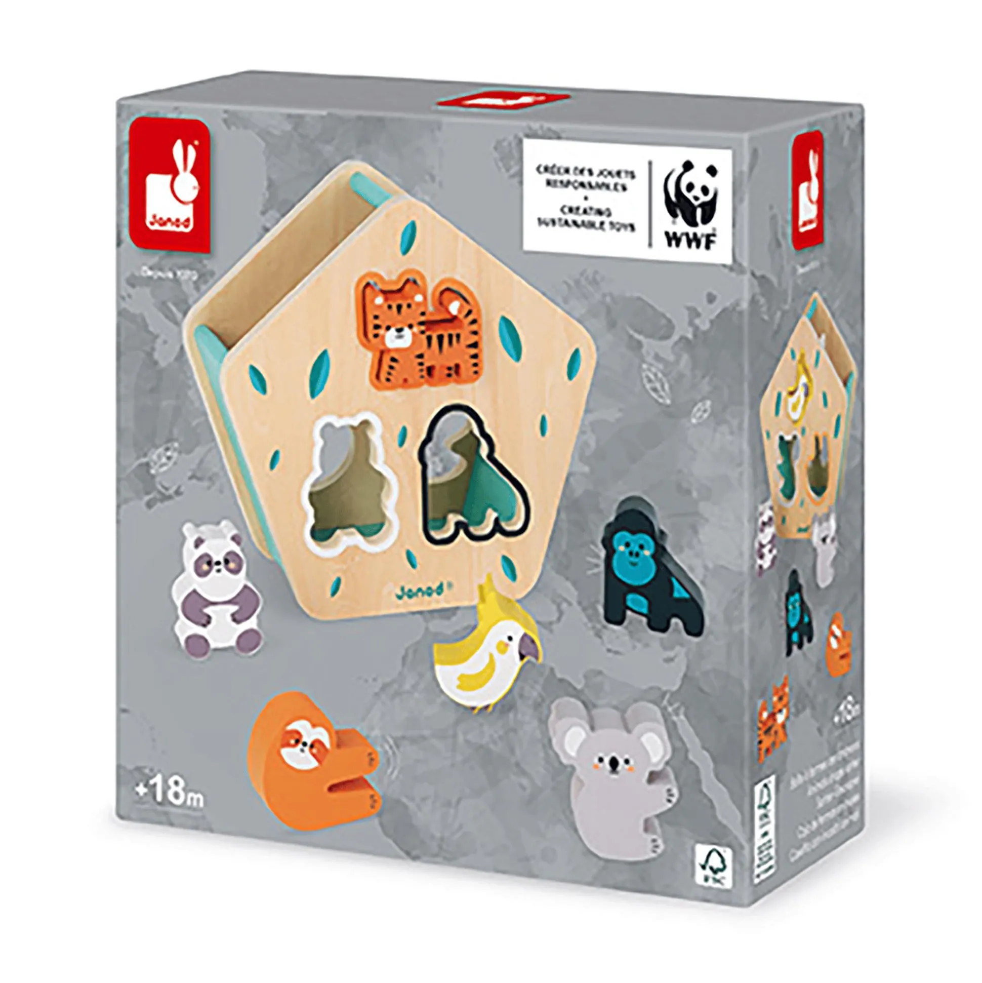 Das hübsche Sortier- und Steckspiel von Janod mit niedlichen Tieren ist eine tolle Beschäftigung für deinen Nachwuchs ab ca. 18 Monaten. Die Löcher des beidseitigen Formensortierers sind farbig umrandet, so helfen sie deinem Kind, die richtigen Tiere zu finden und einzusortieren. Das Spiel kommt mit sechs Tierfiguren und besteht aus FSC-zertifiziertem Massivholz.