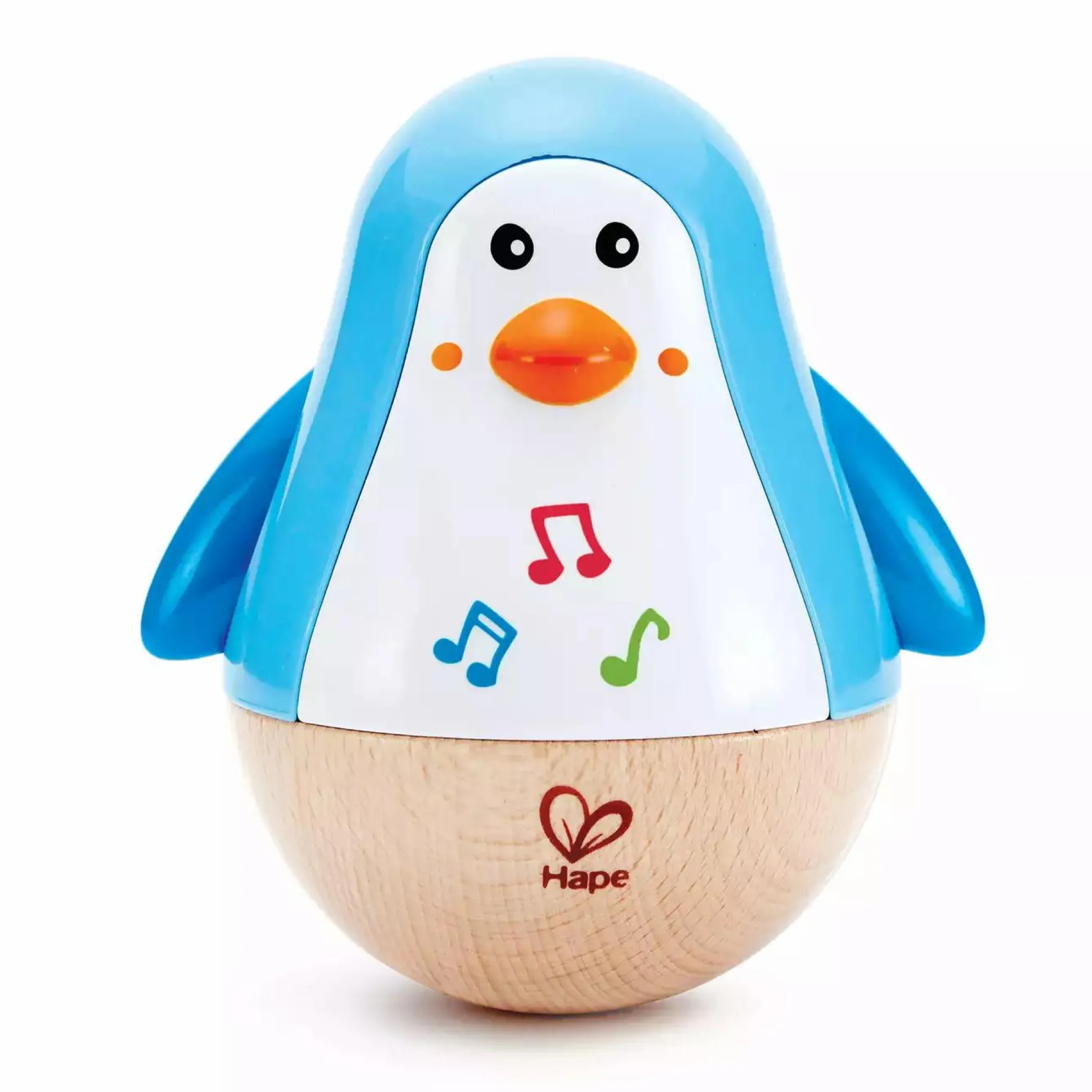 Mit dem musikalischen Stehauf-Pinguin von Hape können Kinder ab 6 Monaten sich an den beruhigenden Klängen sowie den harmonischen Bewegungen erfreuen.