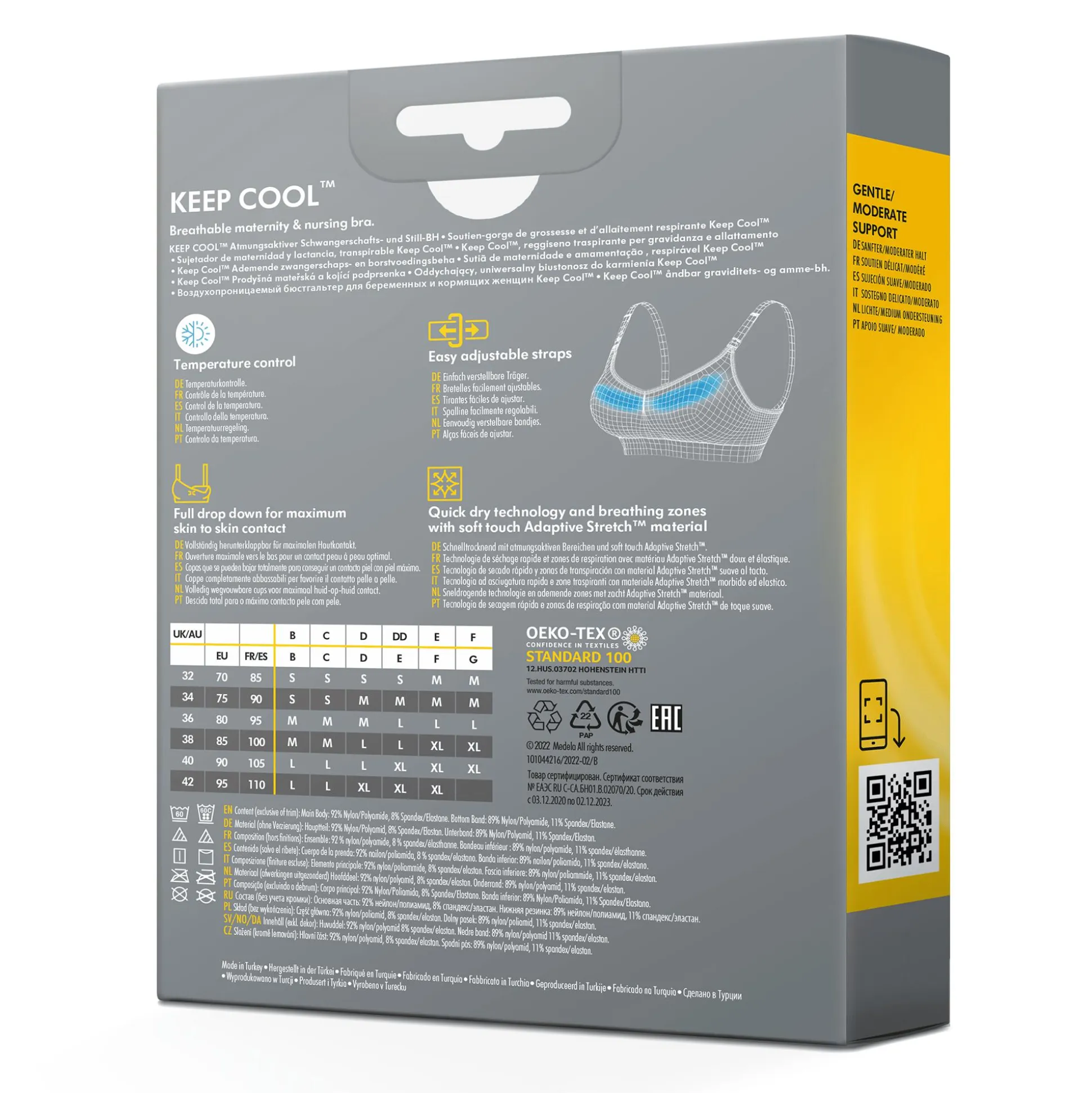 Die 4-way Adaptive Stretch™-Technologie sorgt dafür, dass dein BH mit dir wächst und von der Schwangerschaft bis zur Stillzeit getragen werden kann, für ein kühles und frisches Gefühl, trotz deiner schwankenden Körpertemperatur.