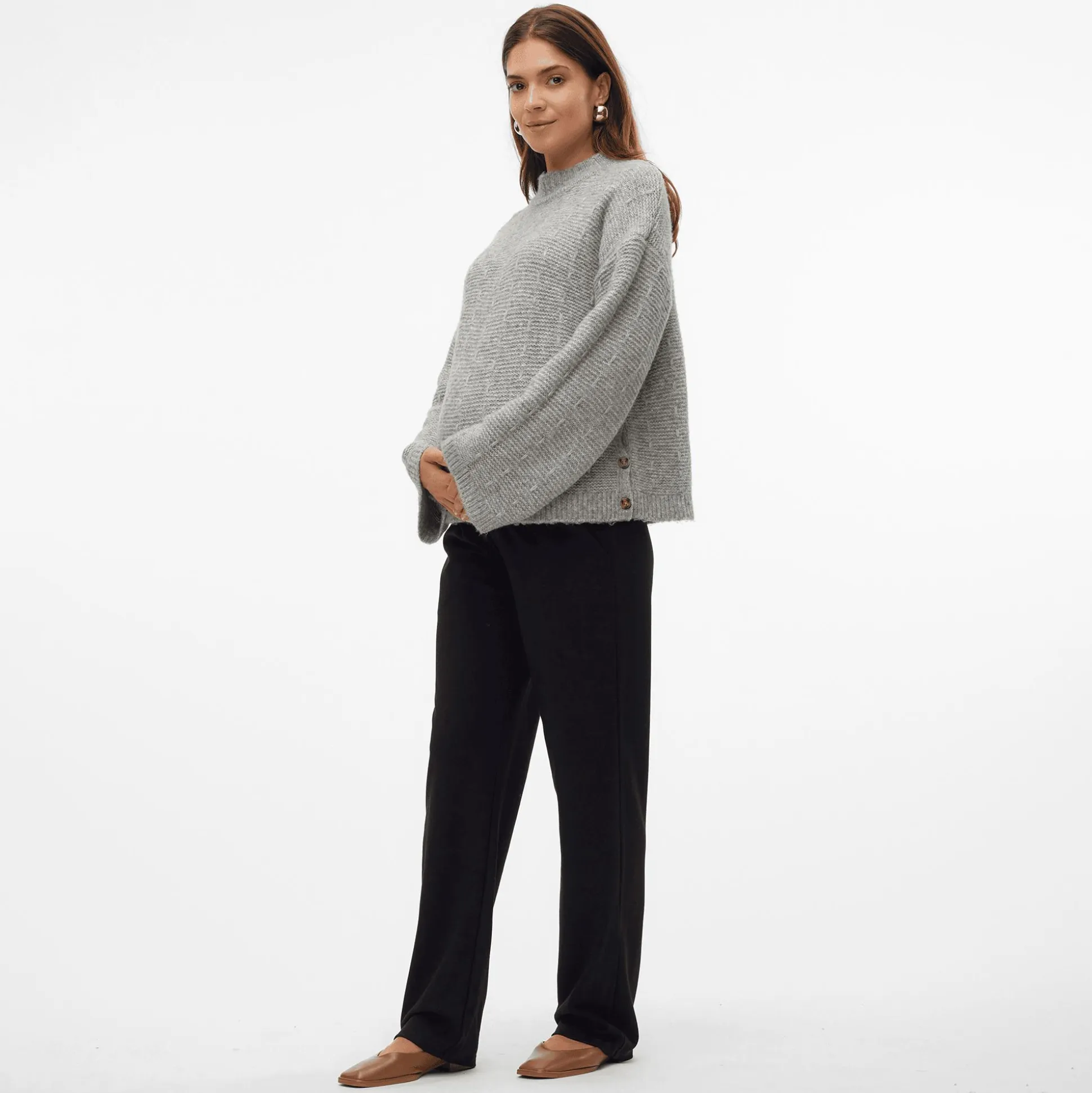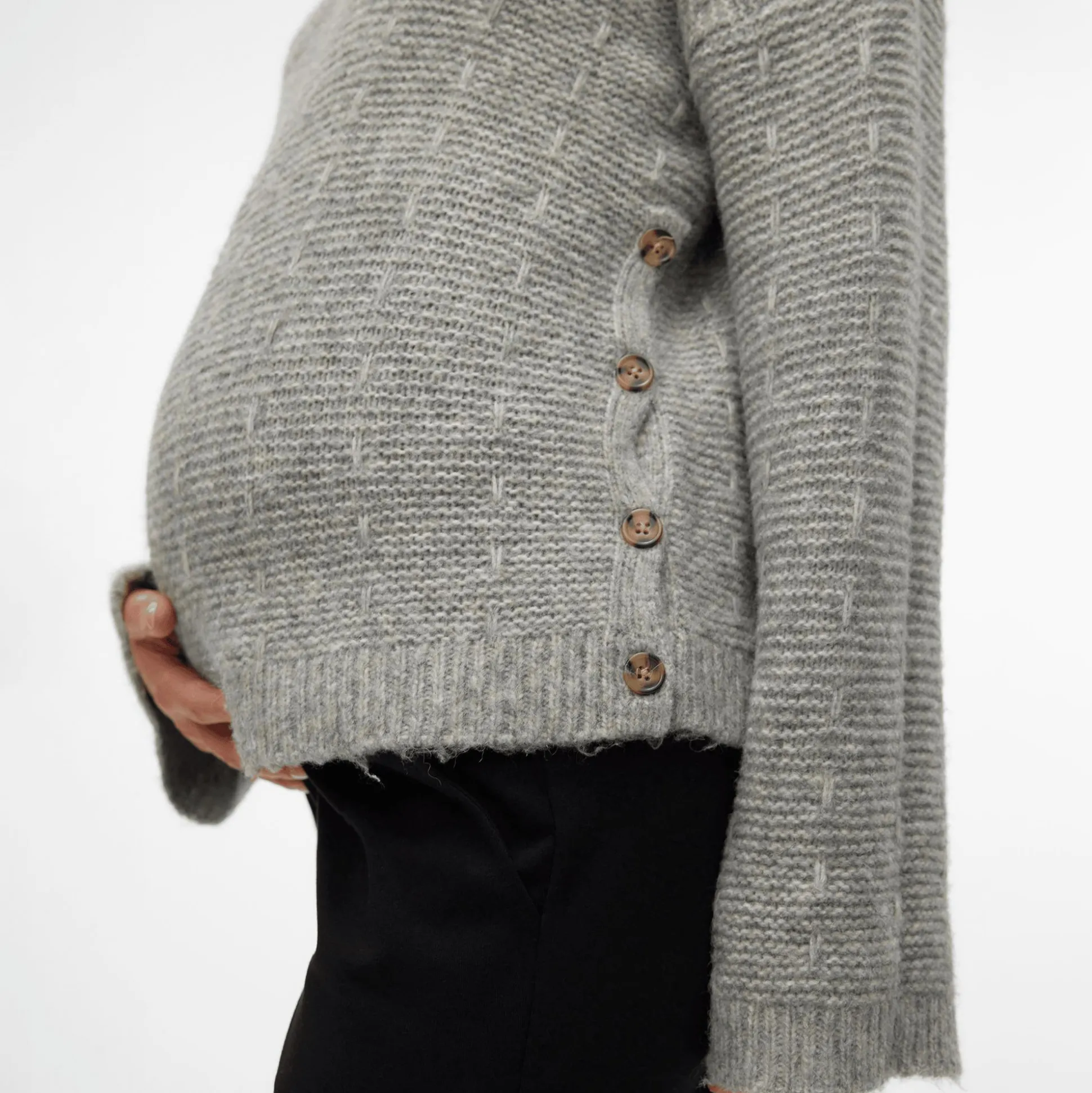 Dieser bequeme Mamalicious Strickpullover Medium Grey Melange mit Stillfunktion in der Seitennaht hält dich während deiner Schwangerschaft sowie Stillzeit warm. Die Knopf-Details sowie dieweite Ärmel machen den Pulli zu einem modischen Hingucker in der kühlen Jahreszeit.