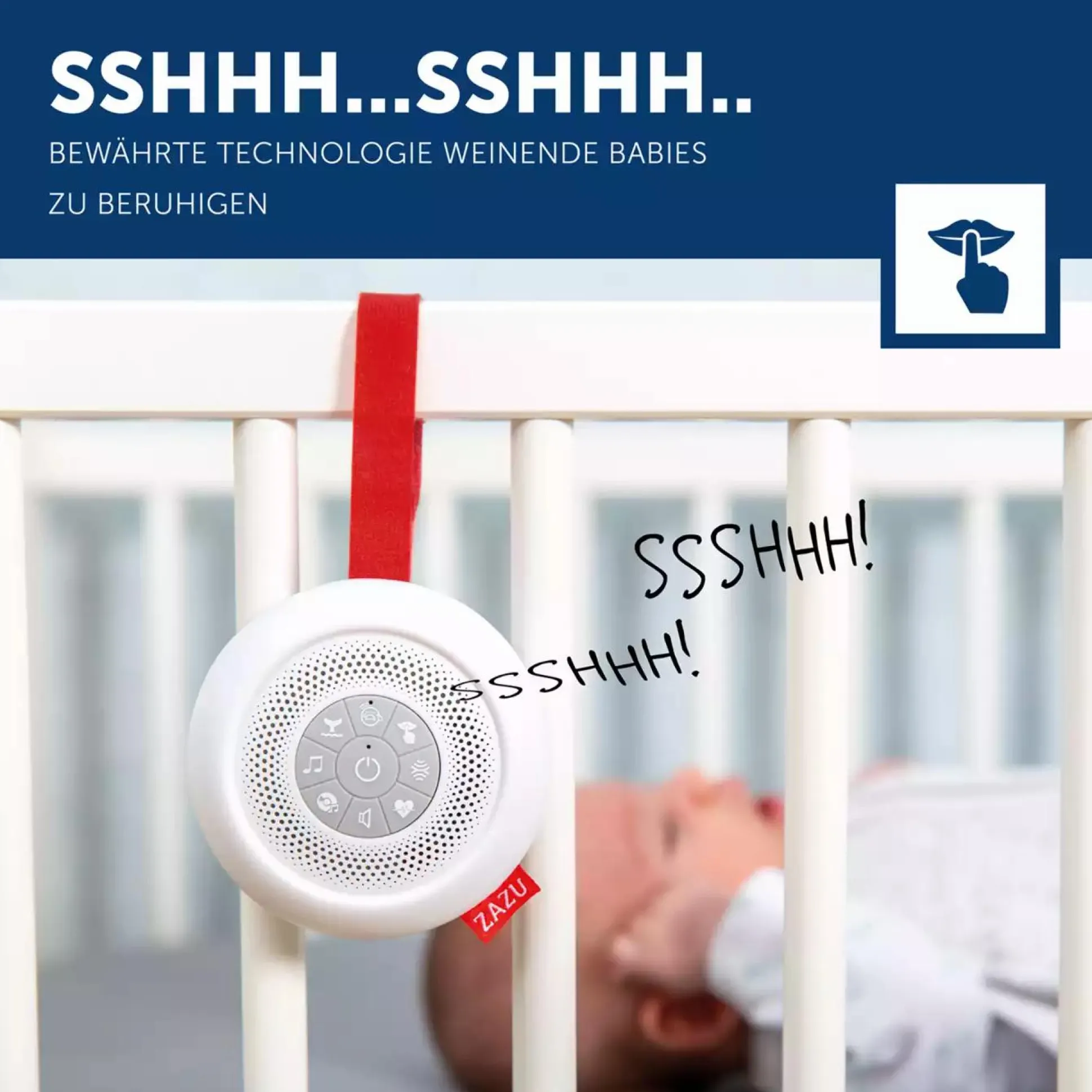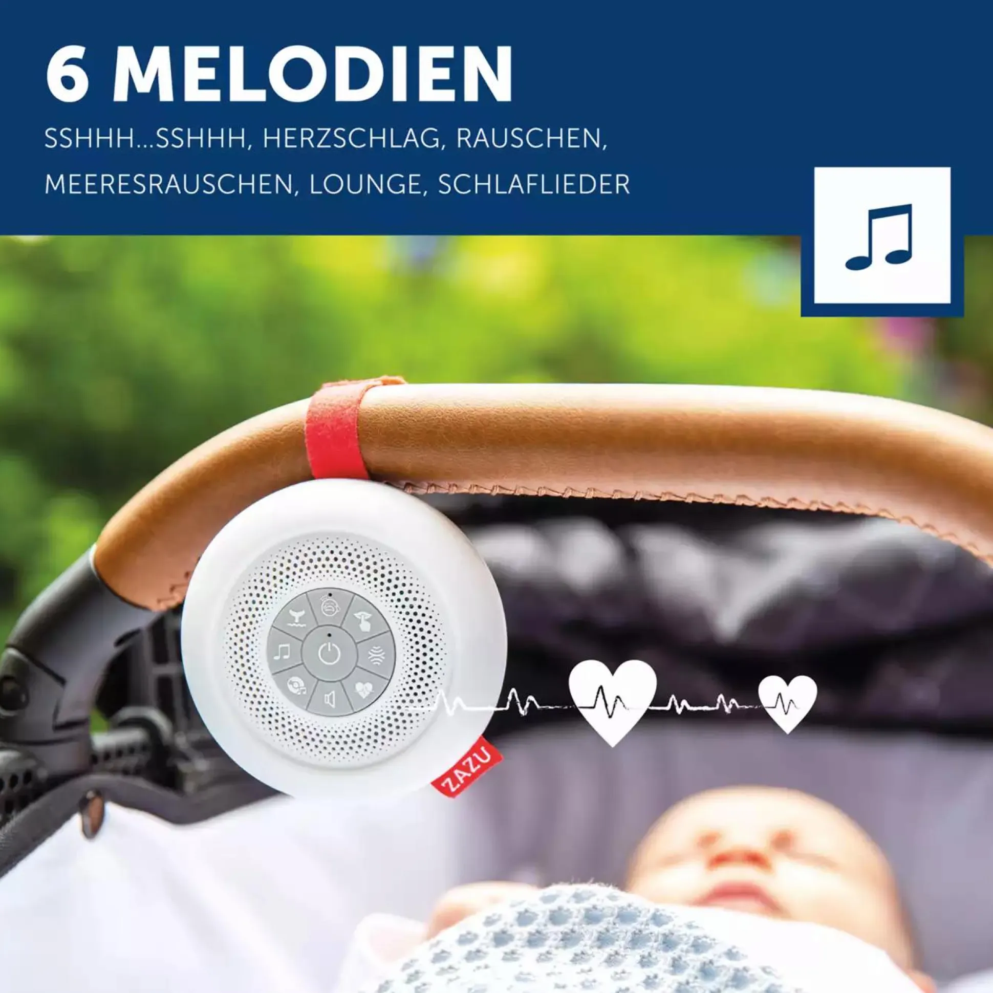 Mit der bewährten Technik, Babys beim Weinen zu beruhigen, hilft Suzy deinem Baby mit einer der 6 voreingestellten Melodien leichter einzuschlafen – SSSHHH SSSHHH, Herzschlag-Geräusche oder Rauschen. Diese Geräusche imitieren die Umgebung im Mutterleib und beruhigen so dein Baby auf die altbewährte Technik, damit es aufhört zu weinen.