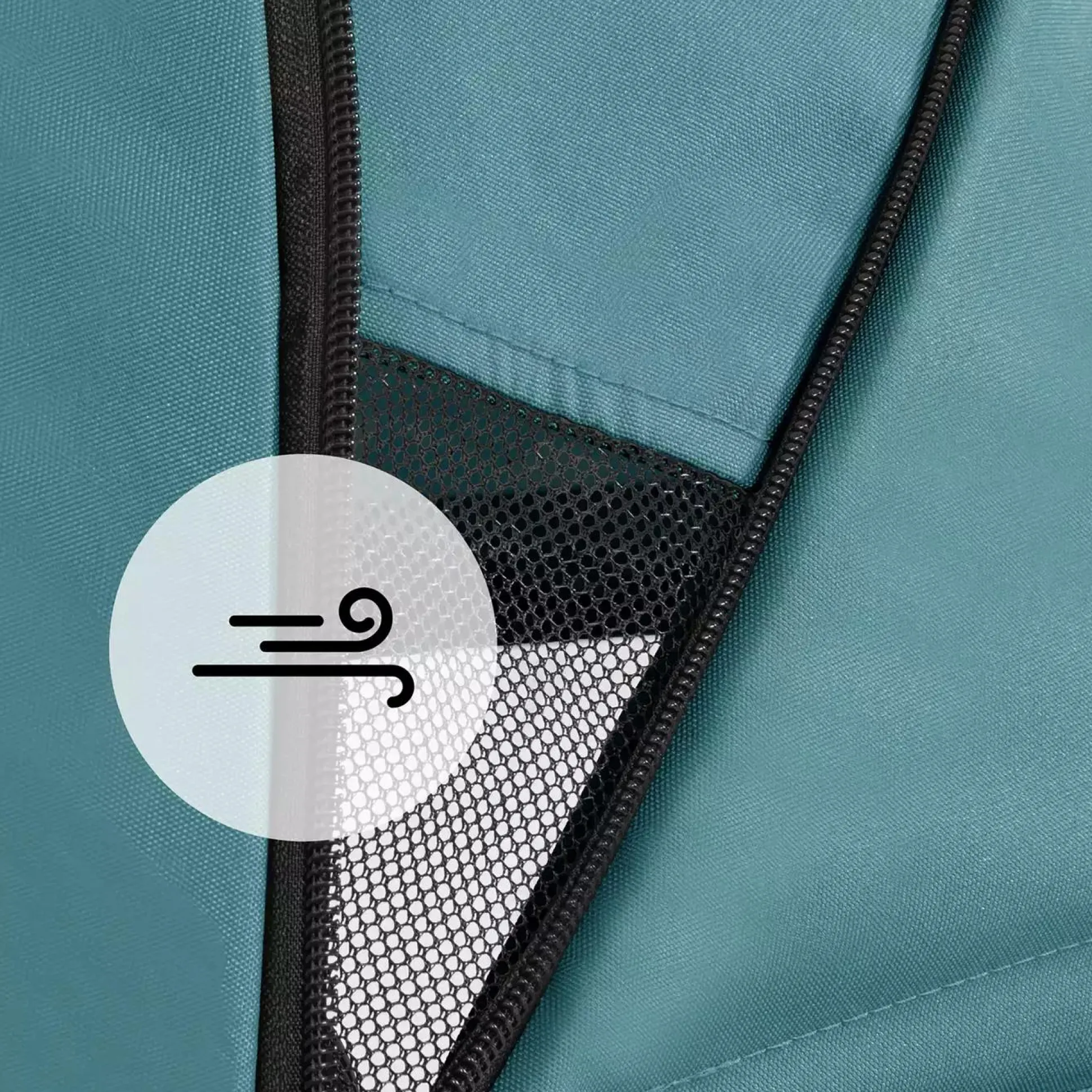 - 2 seitliche Belüftungszonen in Netzstoff – optimale Luftzirkulation und Sichtfenster