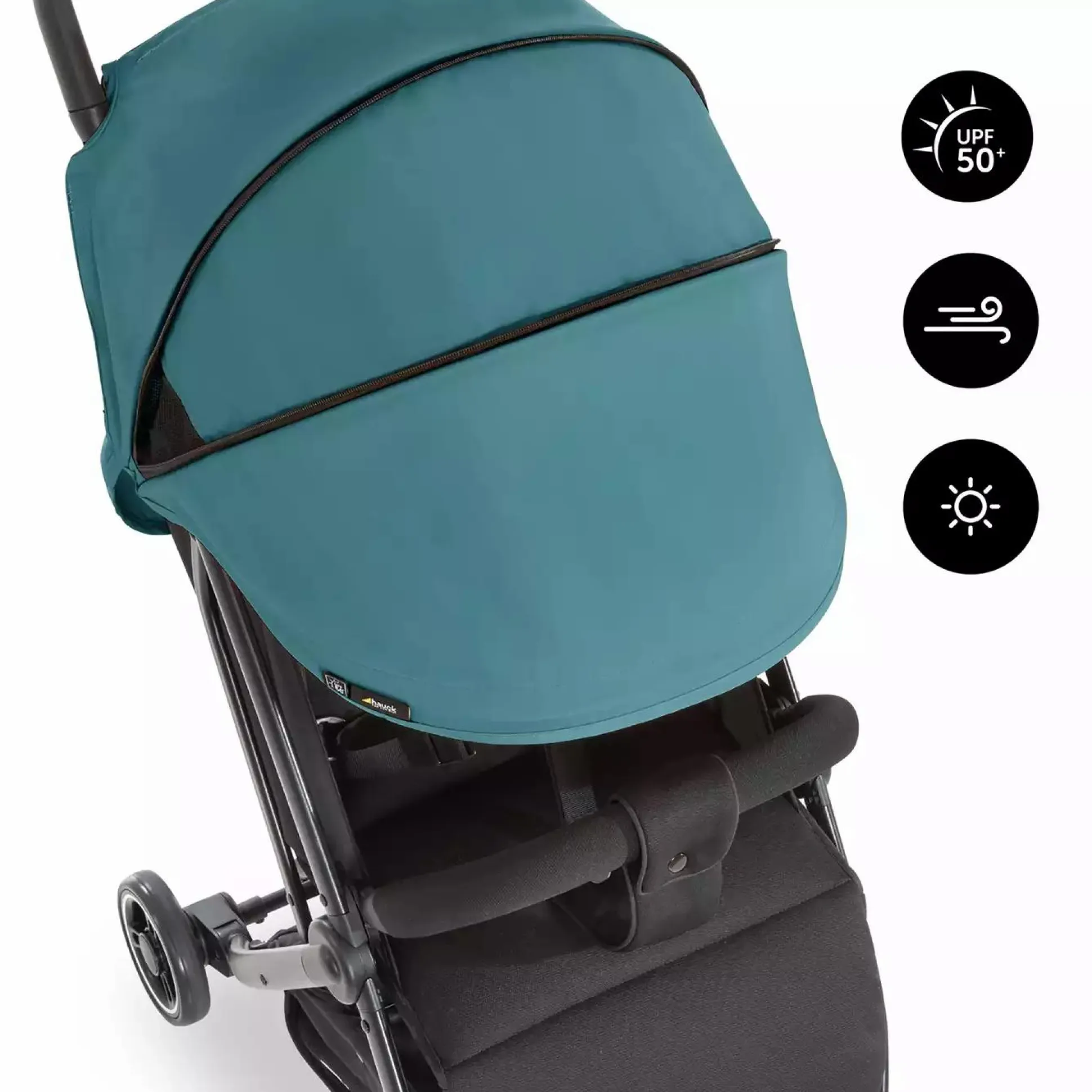 Mit diesem hauck Sonnenverdeck Petrol kannst du deinen Swift X Buggy (separat erhältlich – Artikel-Nr. 57982590) neu stylen.