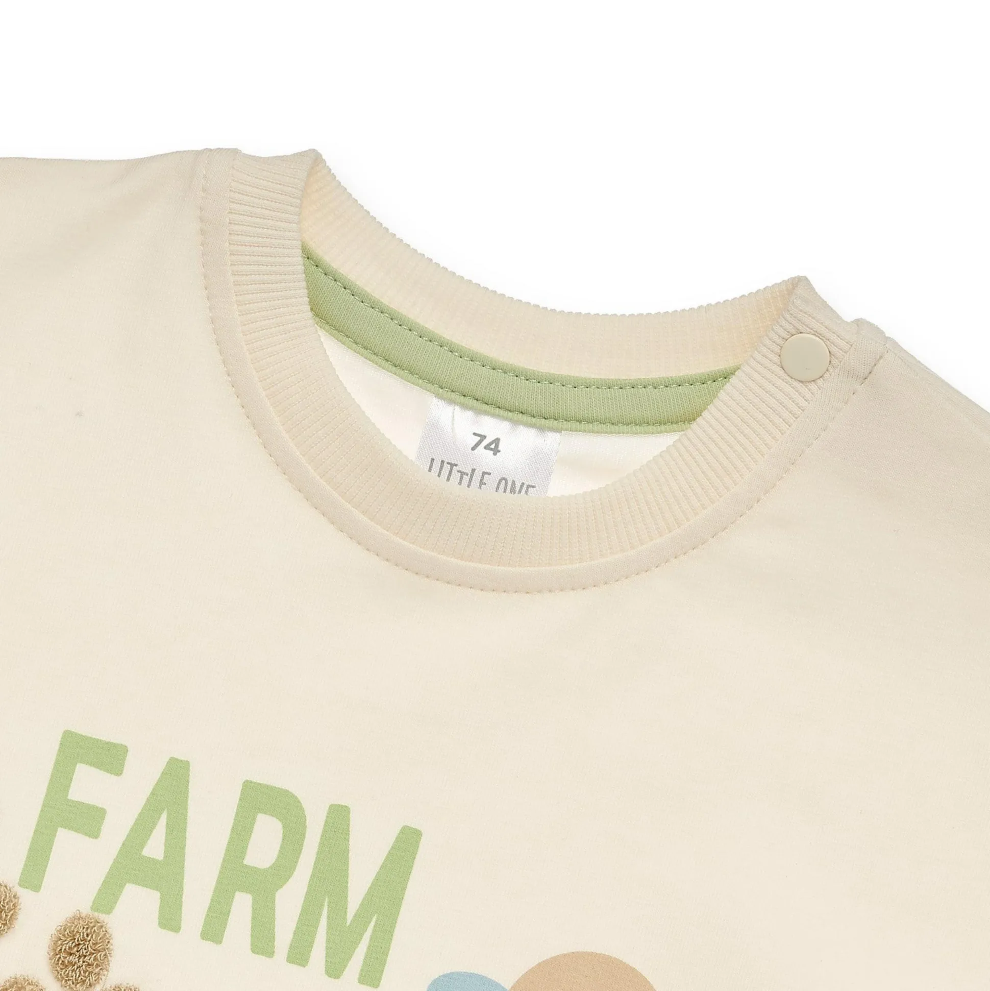 Das T-Shirt Farm Life von LITTLE ONE ist perfekt für die wärmeren Tage und überzeugt durch seine hochwertige Materialkombination aus 95% Bio-Baumwolle und 5% Elasthan. Das weiche, nachhaltige Material sorgt für ein angenehmes Tragegefühl, während die praktischen Druckknöpfe auf der Schulter das An- und Ausziehen deines kleinen Schatzes besonders einfach machen.