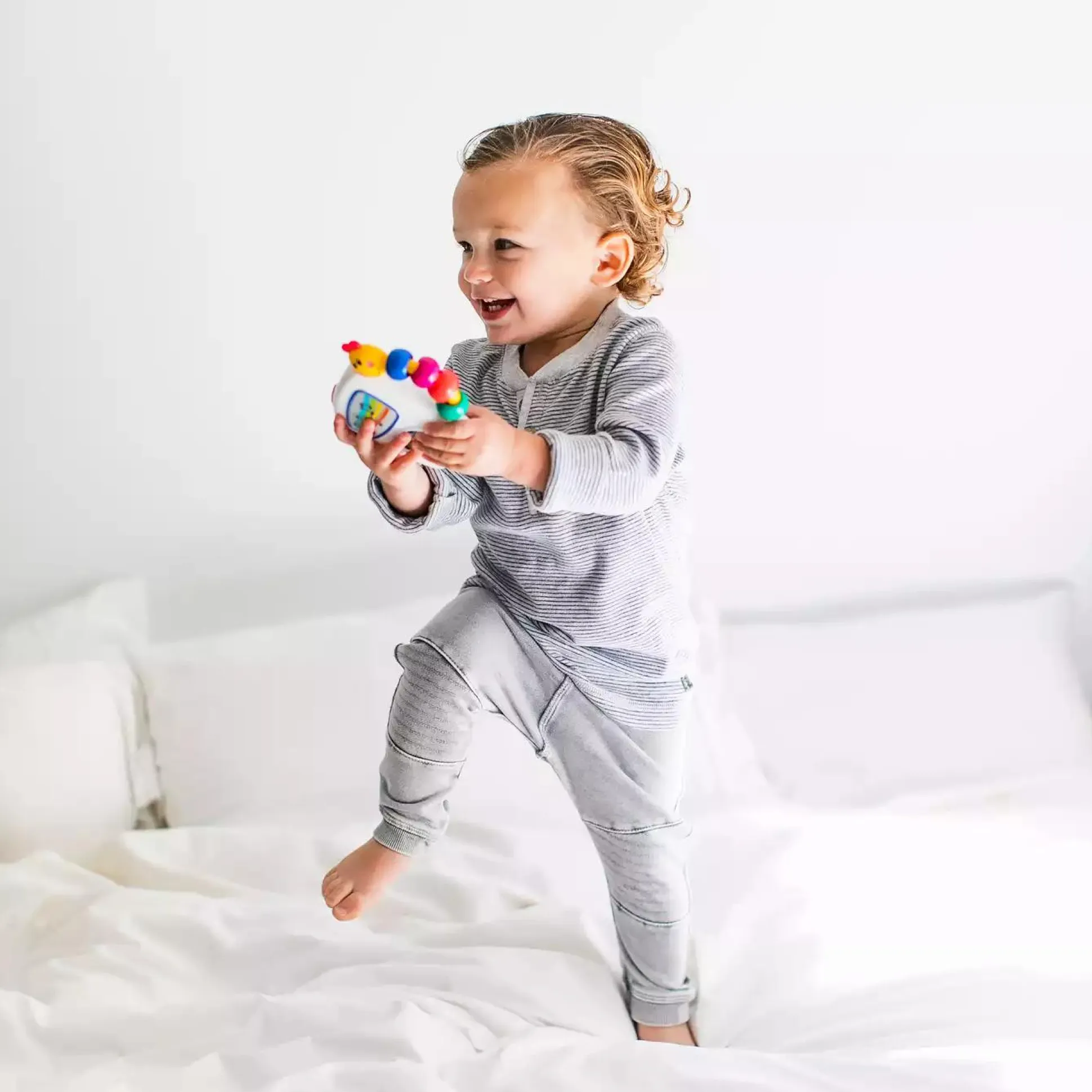 Das meistverkaufte Baby Einstein Take Along Tunes Musikspielzeug macht deinen kleinen Musiker zum Star. Es ist wichtig dem Baby Musikspielzeug zu geben, damit die Musikalität bereits in frühen Jahren gefördert wird. Durch Betätigung des großen Knopfes können Babys bei Take Along Tunes aus überarbeiteten klassischen Meisterwerken von Chopin bis Mozart und mehr wählen. Mit diesem kleinen und leichten Modell haben Babys ihre Lieblingsmelodien immer dabei. Bunte Lichter tanzen zum Rhythmus jeder Melodie über den Bildschirm und fesseln die Aufmerksamkeit deines Babys, während sie gleichzeitig die akustische und visuelle Wahrnehmung fördern. Dieses Musikinstrument ist für kleine Maestros gemacht, da der Griff in Raupenform einfach zu fassen ist.