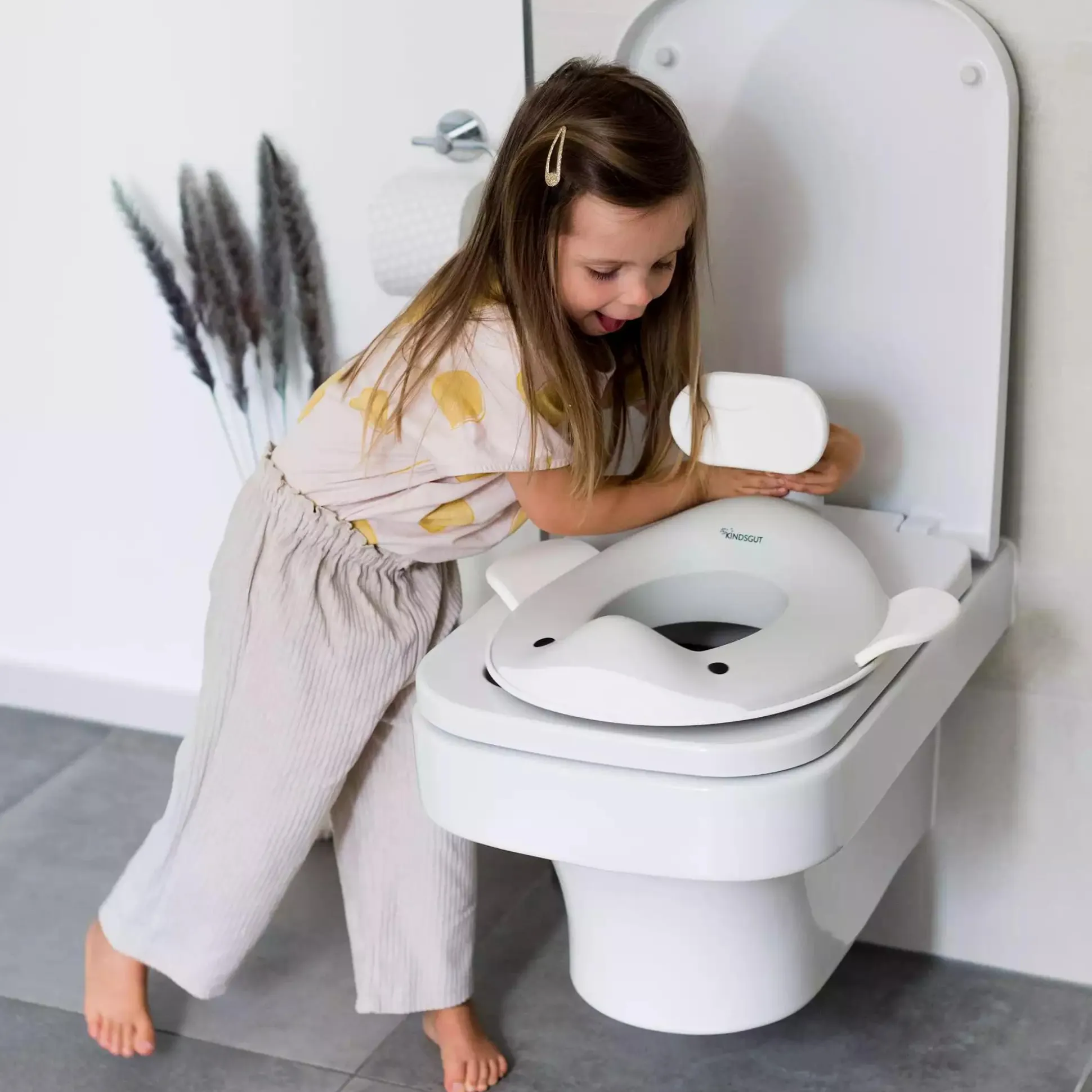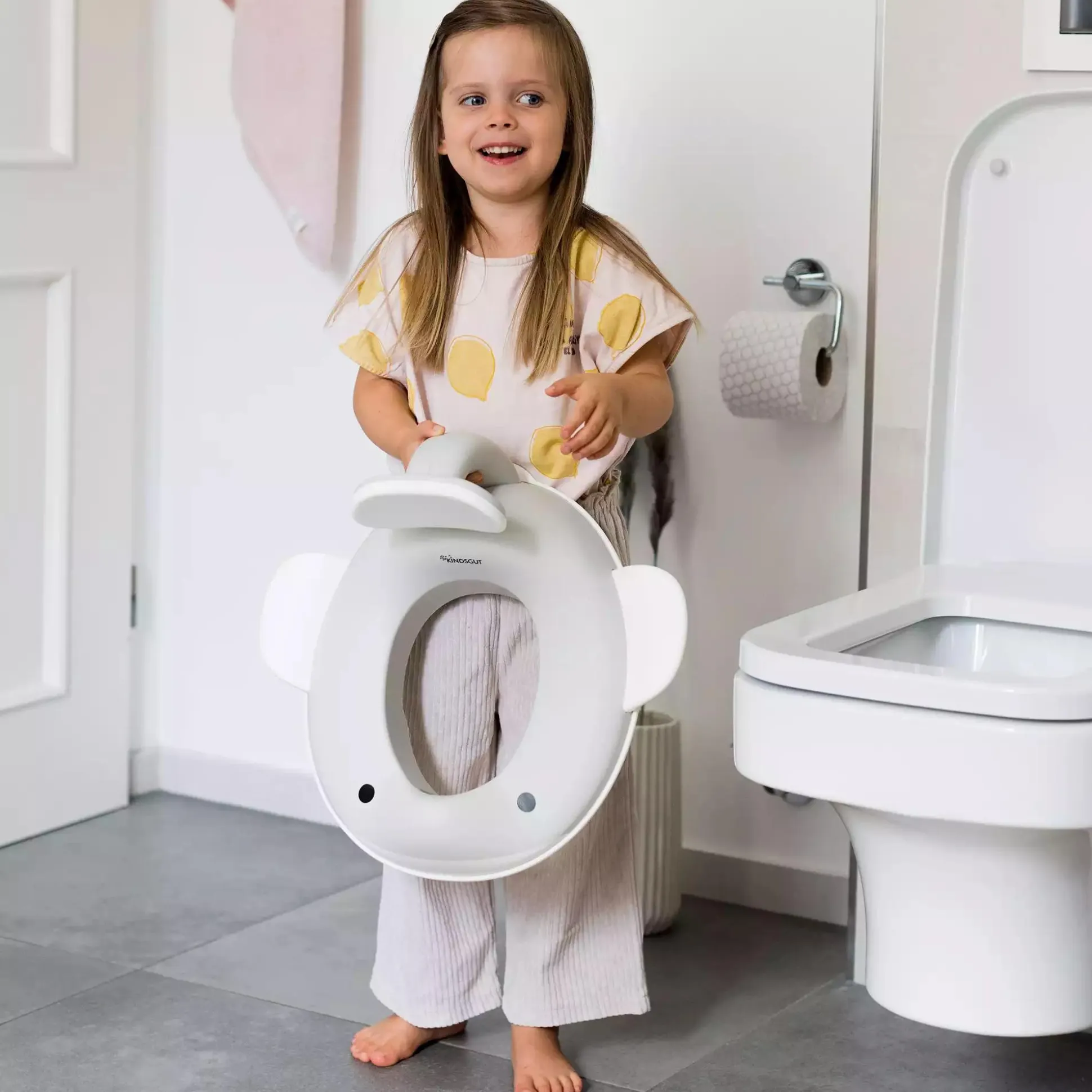 Endlich gibt es ein neues Familienmitglied in der Wal-Familie von Kindsgut! Nach dem der „Potty“, das Wal Töpfchen, zum beliebten Bestseller geworden ist, gibt es nun in ganz ähnlichem Look auch diesen Aufsatz für das WC. Dieser kann als Folgeprodukt, als Alternative oder parallel zu dem separat erhältlichen Potty verwendet werden – und sorgt garantiert für tierisch viel Spaß beim Toiletten-Training.