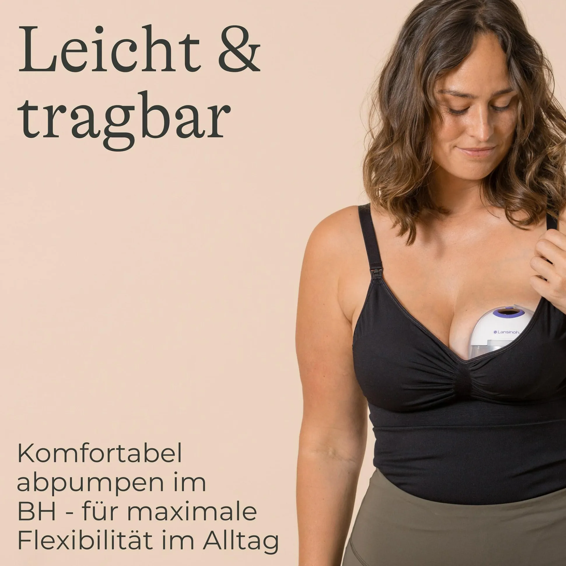 - direkt im BH tragbar, ermöglicht diskretes Abpumpen im Alltag