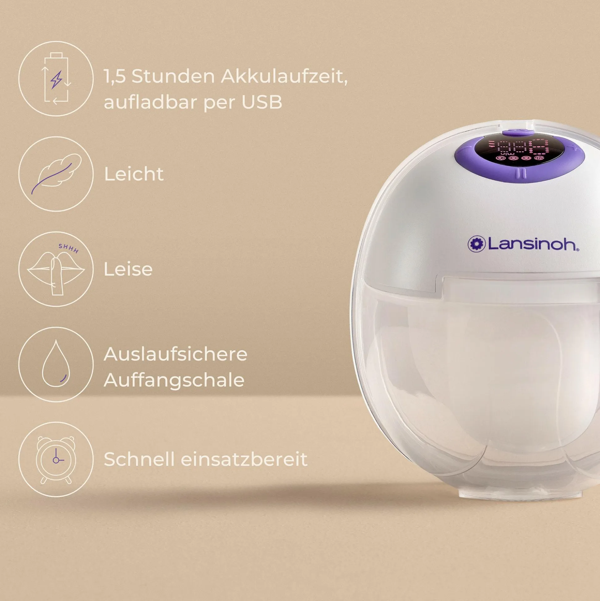 Stillen ist etwas wunderschönes, doch manchmal brauchst du einfach zwei freie Hände – und genau da kommt die tragbare Milchpumpe von Lansinoh® ins Spiel. Sie ist leise, kabellos und völlig unabhängig von Steckdosen oder Schläuchen. Einfach in den BH gesteckt, begleitet sie dich diskret durch den Tag – ob beim Kaffee, beim Spaziergang oder natürlich auch einfach zu Hause.
