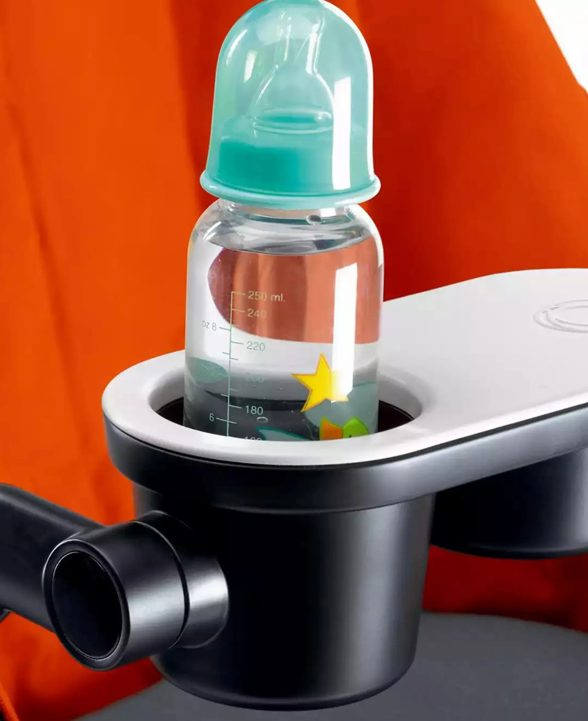 Das Tray ist optimal zum Aufbewahren und Transportieren von Snacks, Getränken und Spielzeug geeignet. Für das leichte ein- und aussteigen aus dem Kinderwagen, ist das Tray dreh- und schwenkbar.