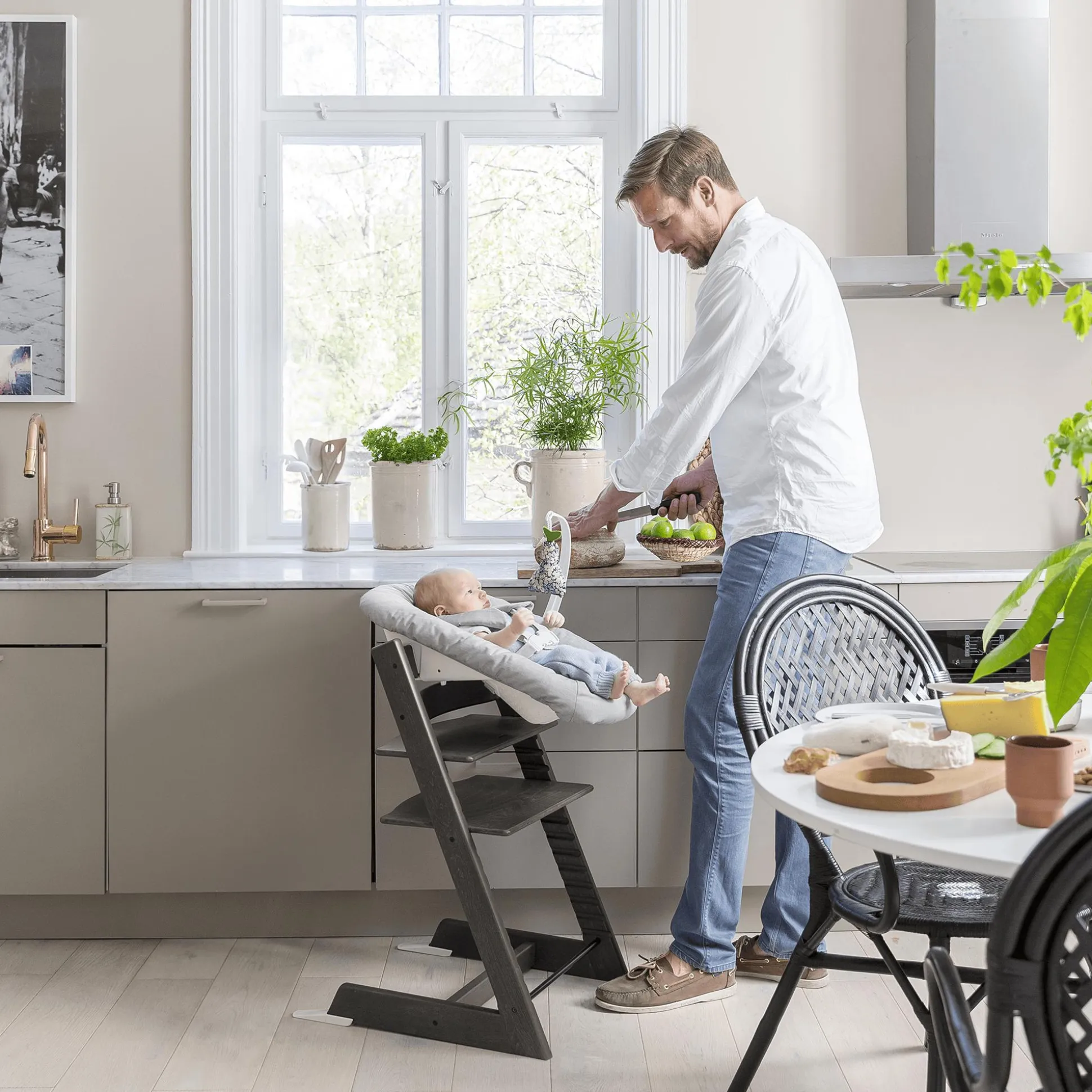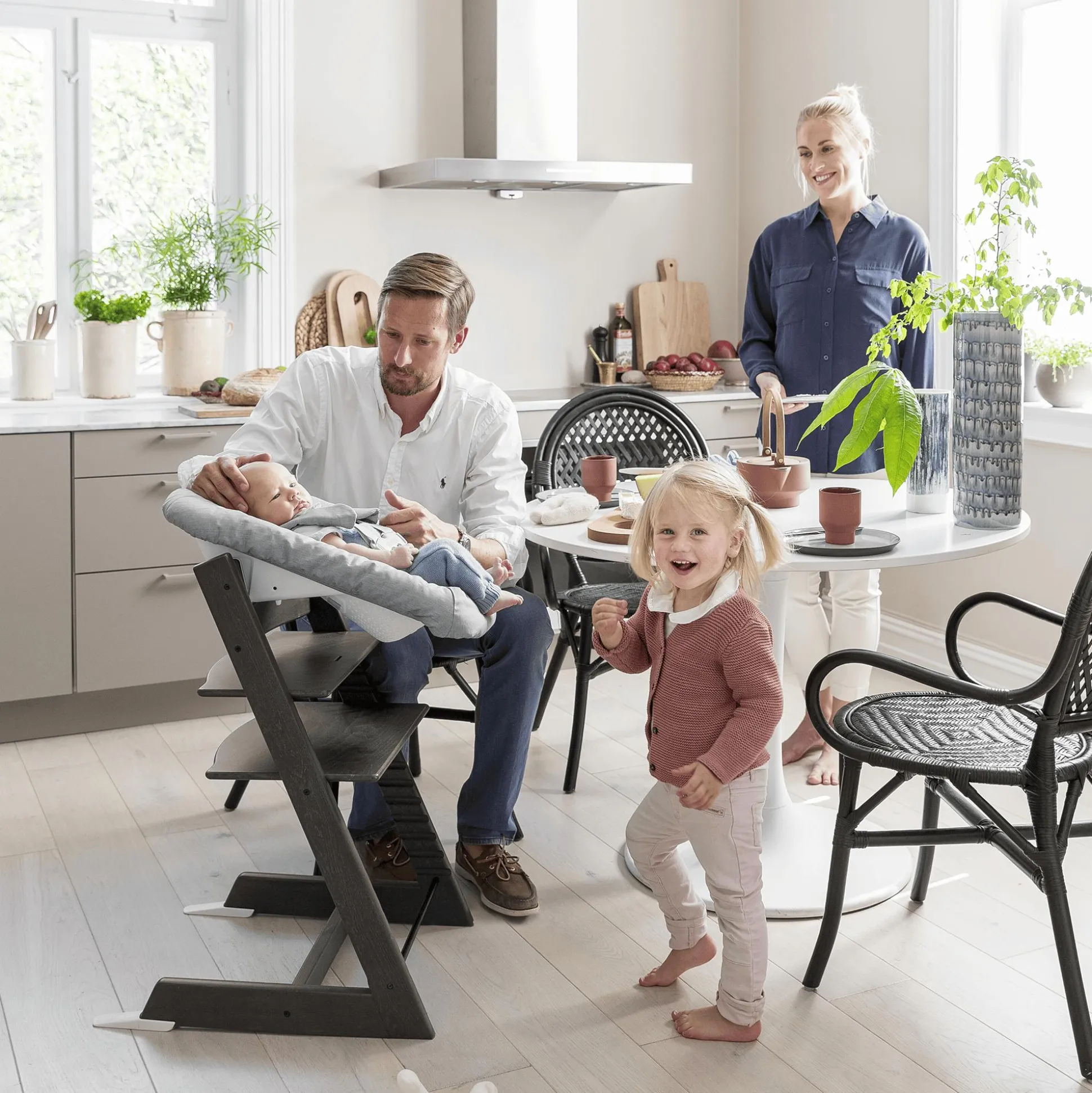 Bringe mit dem Tripp Trapp® Newborn Set von Stokke dein Neugeborenes an den Tisch und in die Mitte deiner Familie.