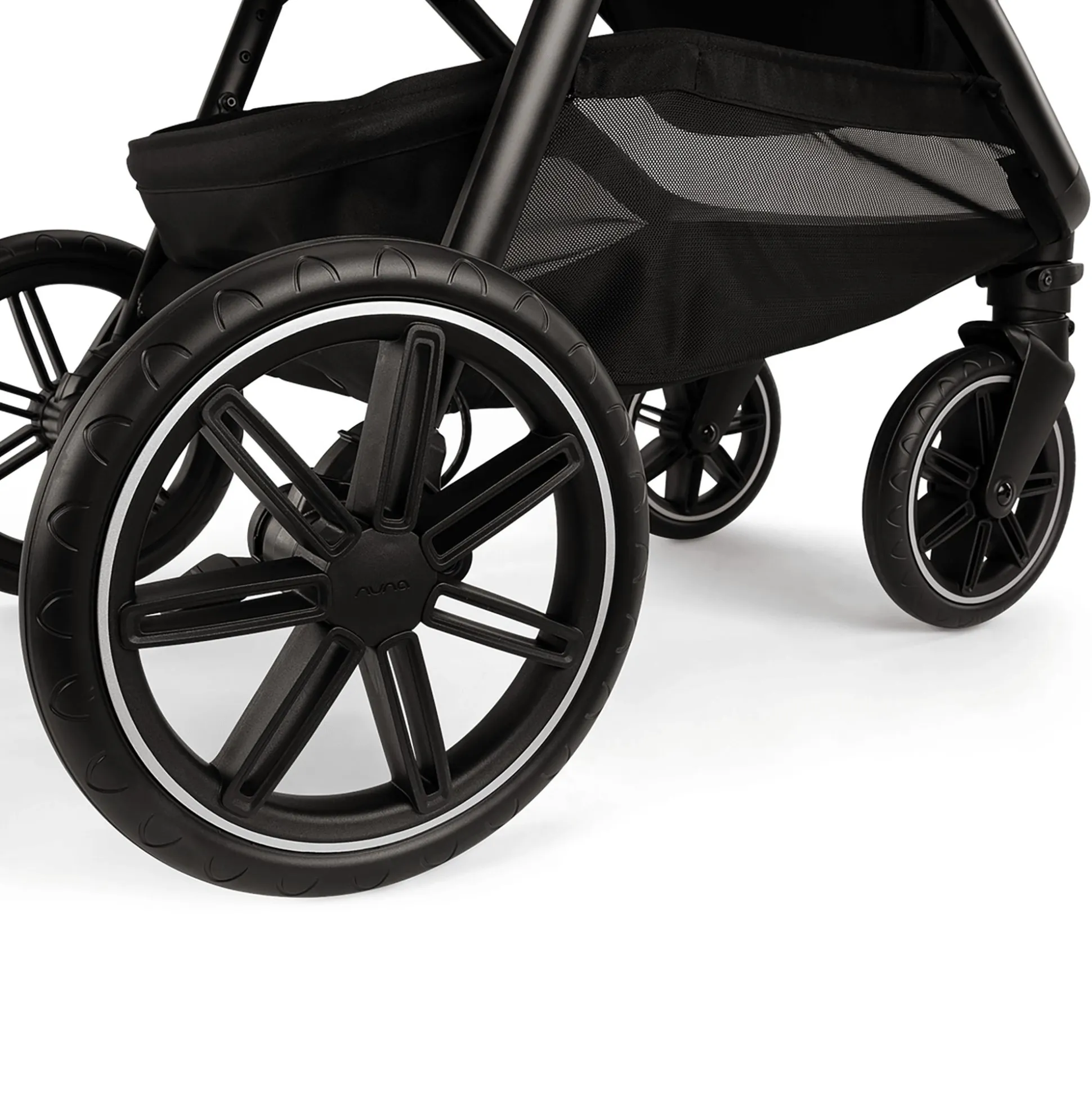 Für einen besonders geschmeidigen Fahrkomfort sorgen die Räder des Nuna-Kinderwagens: Die schwenk- und feststellbaren Vorderräder eignen sich perfekt auf unebenen Wegen. Sie haben eine Allradfederung, wobei die extra großen Hinterräder und eine innovative Sitzfederung eine sanfte Fahrt garantieren. Und falls du mit dem Kinderwagen mal zügig unterwegs bist und du plötzlich bremsen musst, sorgt die One-Tip-Bremse für ein schnelles Anhalten.